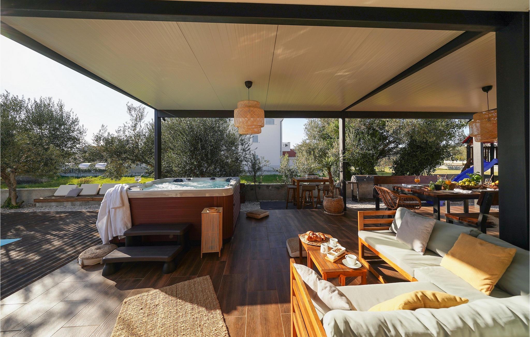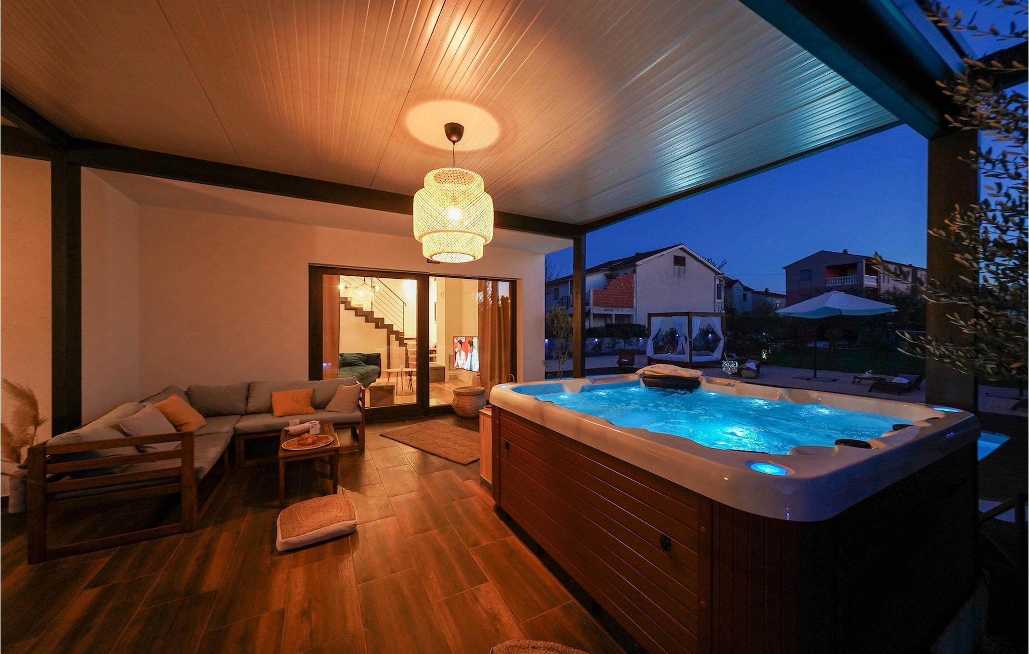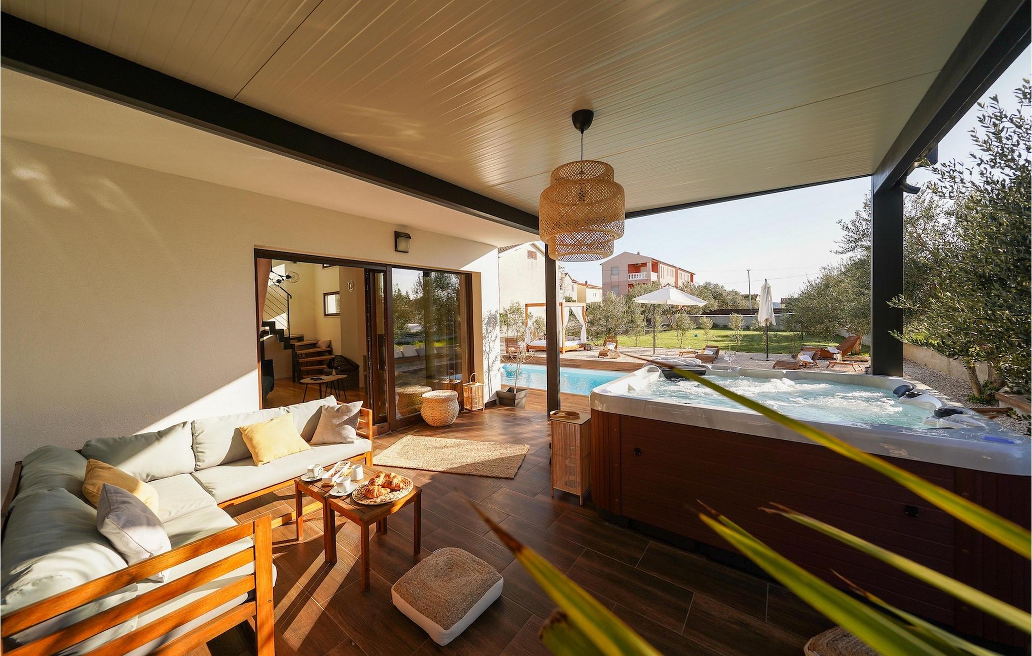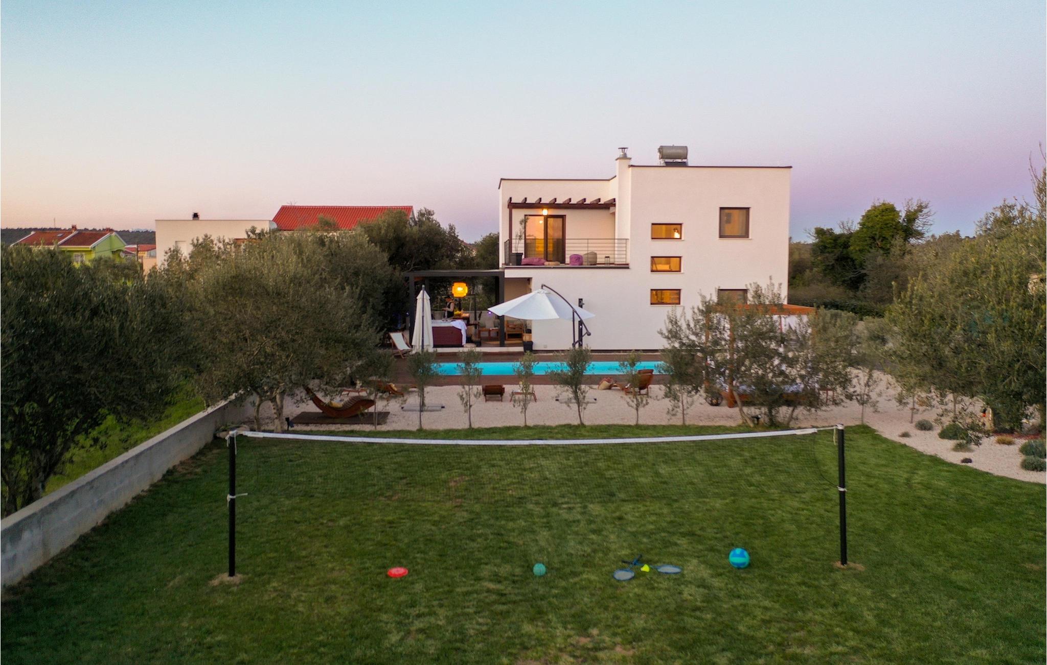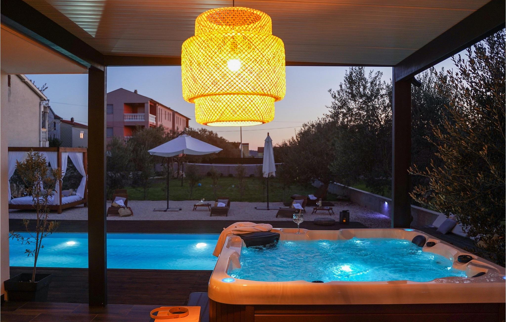 Denne villa ligger på en mere end 900 m2 stor grund i Sukosan, et malerisk lille kyststed nær Zadar. Kun en kort gåtur fra denne smukke villa skiller dig fra den nærmeste strand. En dejlig privat pool står til din rådighed, ligesom en udendørs jacuzzi. Poolområdet er helt sikkert stedet, hvor du vil tilbringe det meste af din tid, da der er hyggelige liggestole til afslapning ved poolen og en udendørs spiseplads med en kulgrill, ideel til at tilberede og nyde måltider udendørs. Villaen har 4 soveværelser og 3 badeværelser og er kærligt indrettet, i en enkel stil, men alligevel med masser af sans for detaljer. Stueetagen består af en rummelig opholds- og spisestue med et fuldt udstyret køkken. Det farverige børneværelse med to opdelte enkeltsenge ligger også i stueetagen, sammen med et badeværelse og et separat toilet. De resterende 2 badeværelser og 3 soveværelser, hver med dobbeltseng, tv og aircondition er sat ovenpå. Her kan du også nyde at se solnedgange på terrassen med havudsigt. Villaen er fuldstændig lukket, tilbyder to private parkeringspladser og masser af muligheder for at slappe af og tilbringe en fantastisk ferie i nærheden af Zadar. Denne villa er beliggende i en lille landsby ved navn Sukosan, kun en kort køretur væk fra den antikke by Zadar med historiske og kulturarv virkelig et besøg værd. Den store Alfred Hitchcock sagde, at Zadar har den smukkeste solnedgang i verden - sørg for ikke at gå glip af den! Den gamle bydel byder på monumenter fra oldtiden, middelalderen og renæssancen: Romerpladsen (1. århundrede), kirken St. Donat (9. århundrede), kirken St. Marija (11. århundrede, genopbygget i det 16. århundrede), katedralen af St. Stošija (12.-13. århundrede), delene af forsvarsmure... I dag er det berømt for symfonien om Havorgelet og lysinstallationen "Pozdrav Suncu" (hilsen til solen). Regionen bugner af smukke strande, gode restauranter, der tilbyder middelhavskøkken, nationalparker og naturparker (Krka-vandfaldene, Kornati-øerne, Plitvice-søerne, Telašcica, Paklenica...). Og hvis du leder efter mere sjov fra solnedgang til daggry, er der i Zadar masser af strandklubber og kaffebarer, og efter midnat kan du nyde den behagelige atmosfære i natbarer og klubber. Under dit ophold i Zadar glem ikke at smage den søde Maraschino kirsebærlikør!