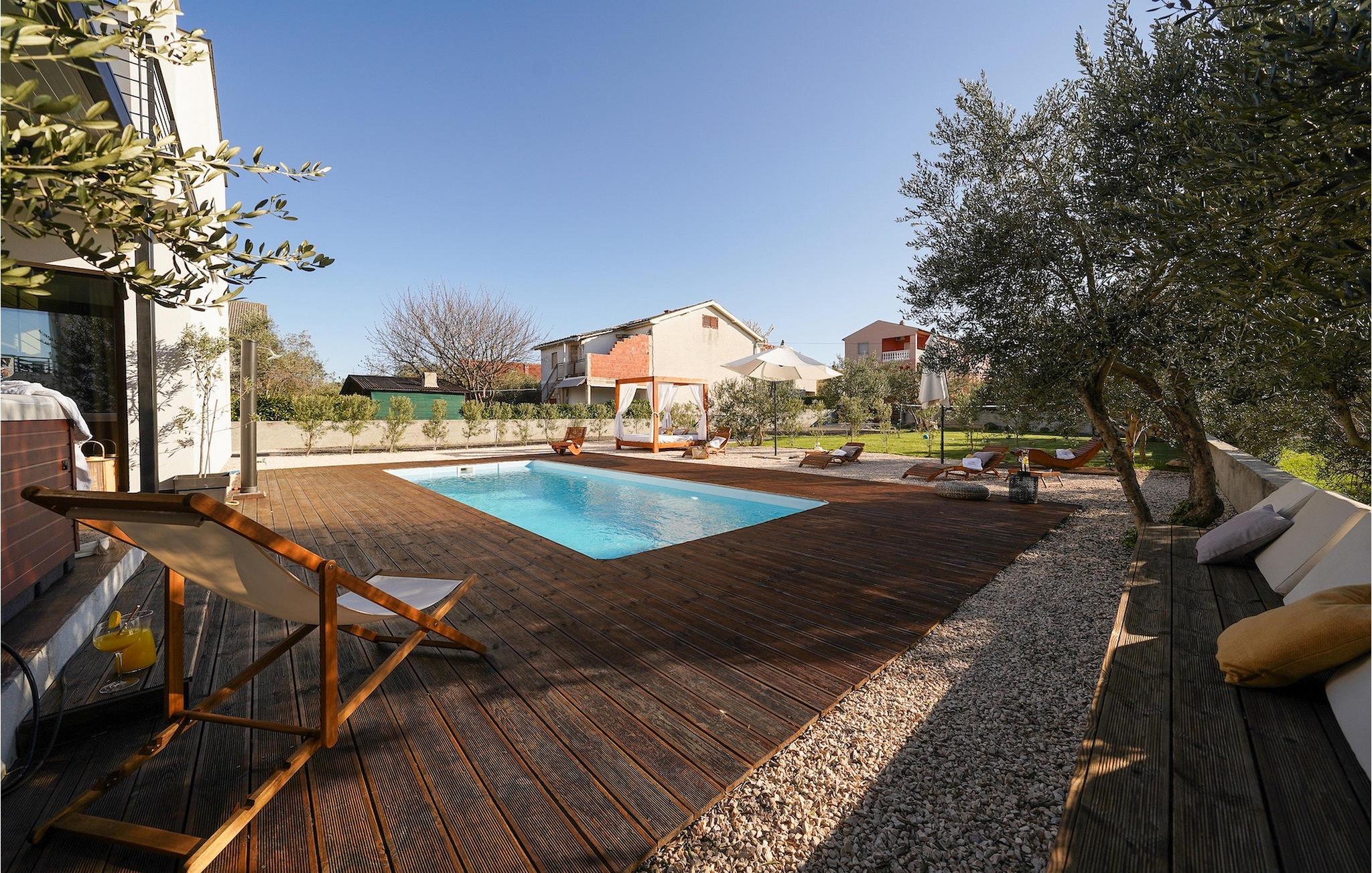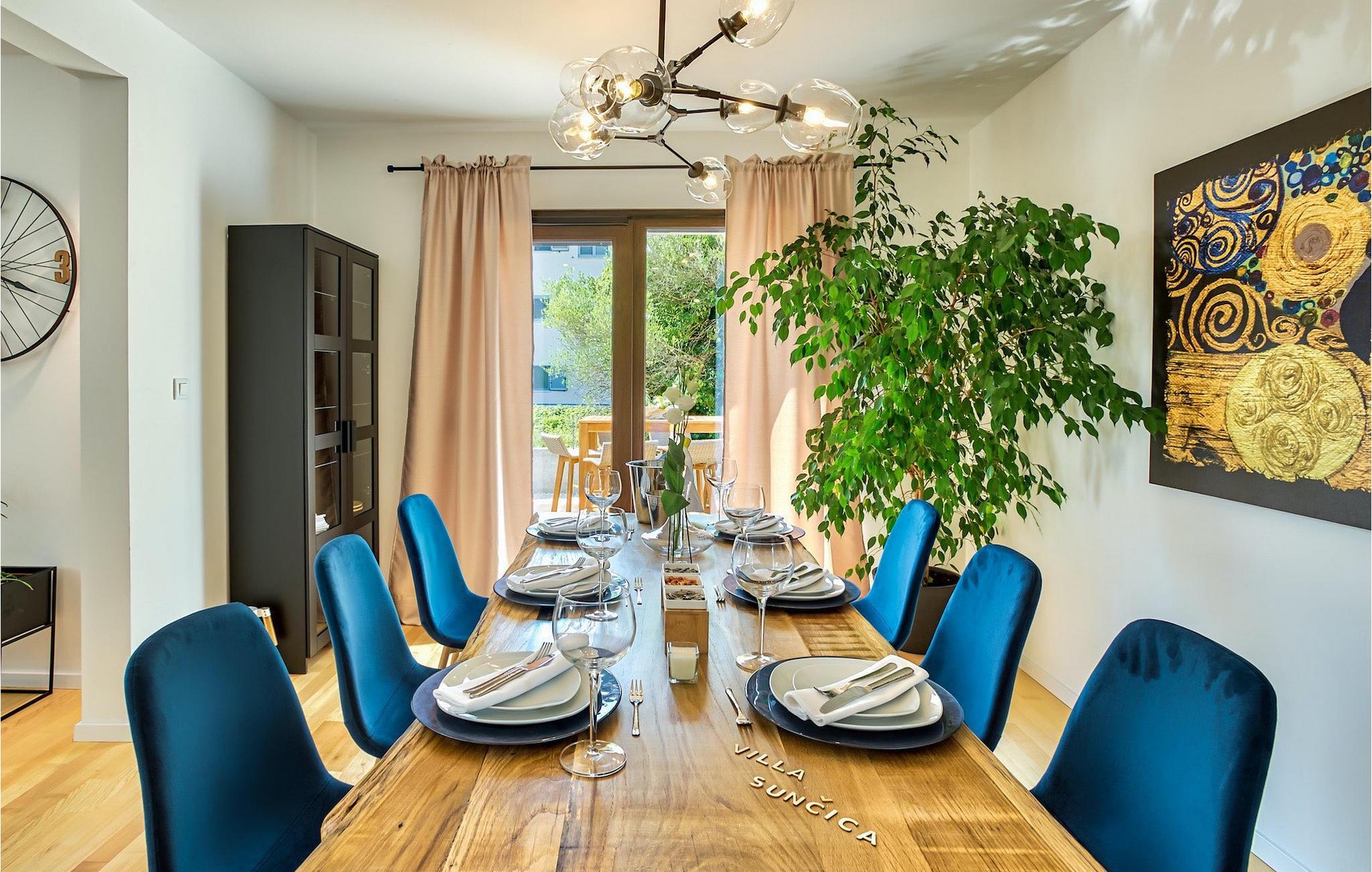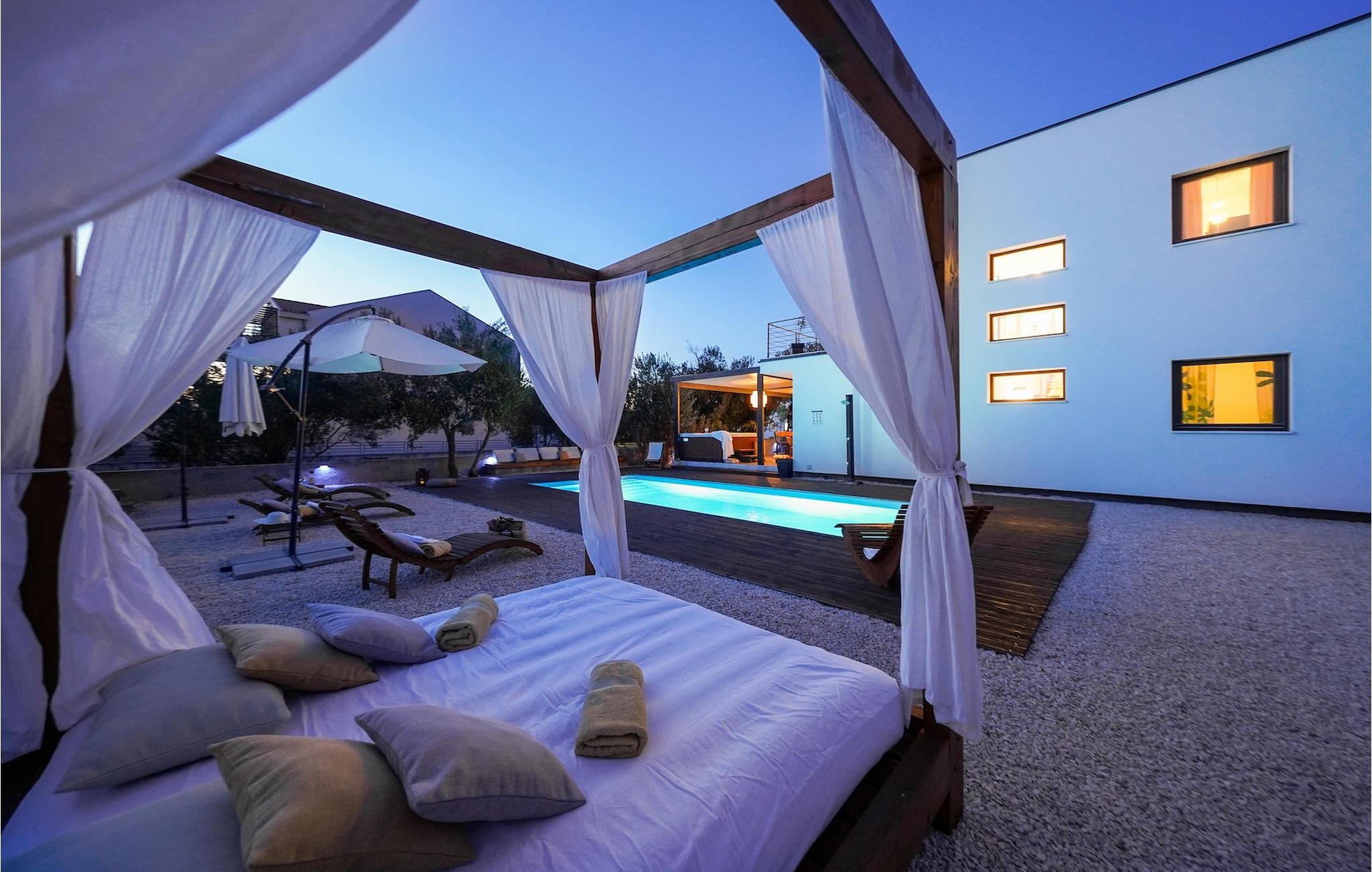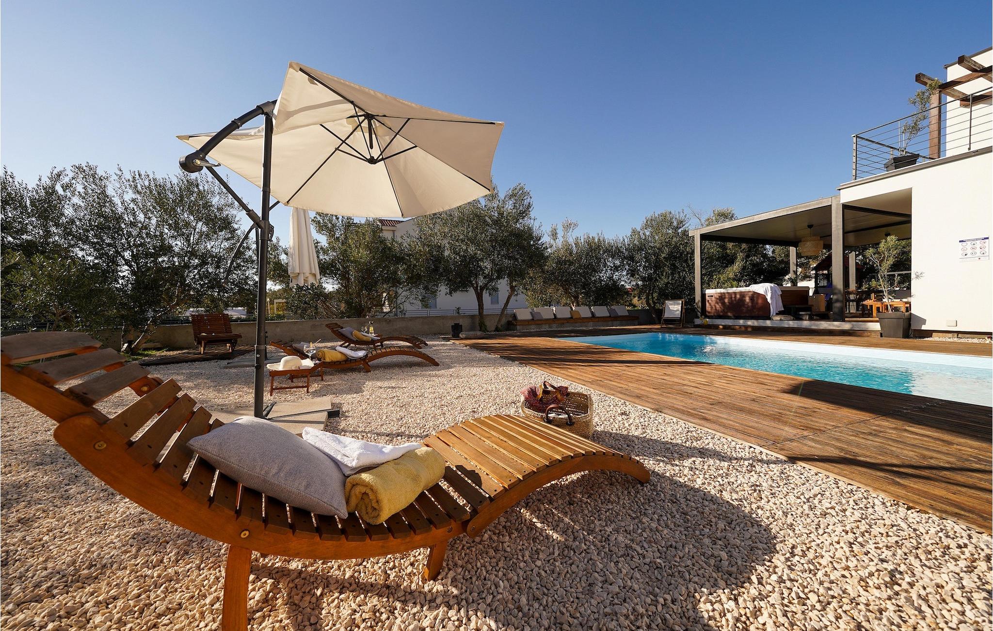 Denne villa ligger på en mere end 900 m2 stor grund i Sukosan, et malerisk lille kyststed nær Zadar. Kun en kort gåtur fra denne smukke villa skiller dig fra den nærmeste strand. En dejlig privat pool står til din rådighed, ligesom en udendørs jacuzzi. Poolområdet er helt sikkert stedet, hvor du vil tilbringe det meste af din tid, da der er hyggelige liggestole til afslapning ved poolen og en udendørs spiseplads med en kulgrill, ideel til at tilberede og nyde måltider udendørs. Villaen har 4 soveværelser og 3 badeværelser og er kærligt indrettet, i en enkel stil, men alligevel med masser af sans for detaljer. Stueetagen består af en rummelig opholds- og spisestue med et fuldt udstyret køkken. Det farverige børneværelse med to opdelte enkeltsenge ligger også i stueetagen, sammen med et badeværelse og et separat toilet. De resterende 2 badeværelser og 3 soveværelser, hver med dobbeltseng, tv og aircondition er sat ovenpå. Her kan du også nyde at se solnedgange på terrassen med havudsigt. Villaen er fuldstændig lukket, tilbyder to private parkeringspladser og masser af muligheder for at slappe af og tilbringe en fantastisk ferie i nærheden af Zadar. Denne villa er beliggende i en lille landsby ved navn Sukosan, kun en kort køretur væk fra den antikke by Zadar med historiske og kulturarv virkelig et besøg værd. Den store Alfred Hitchcock sagde, at Zadar har den smukkeste solnedgang i verden - sørg for ikke at gå glip af den! Den gamle bydel byder på monumenter fra oldtiden, middelalderen og renæssancen: Romerpladsen (1. århundrede), kirken St. Donat (9. århundrede), kirken St. Marija (11. århundrede, genopbygget i det 16. århundrede), katedralen af St. Stošija (12.-13. århundrede), delene af forsvarsmure... I dag er det berømt for symfonien om Havorgelet og lysinstallationen "Pozdrav Suncu" (hilsen til solen). Regionen bugner af smukke strande, gode restauranter, der tilbyder middelhavskøkken, nationalparker og naturparker (Krka-vandfaldene, Kornati-øerne, Plitvice-søerne, Telašcica, Paklenica...). Og hvis du leder efter mere sjov fra solnedgang til daggry, er der i Zadar masser af strandklubber og kaffebarer, og efter midnat kan du nyde den behagelige atmosfære i natbarer og klubber. Under dit ophold i Zadar glem ikke at smage den søde Maraschino kirsebærlikør!