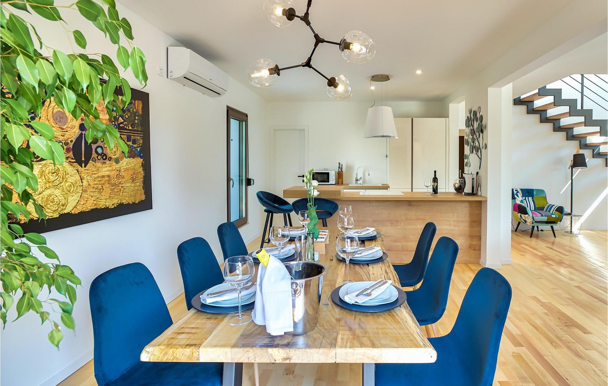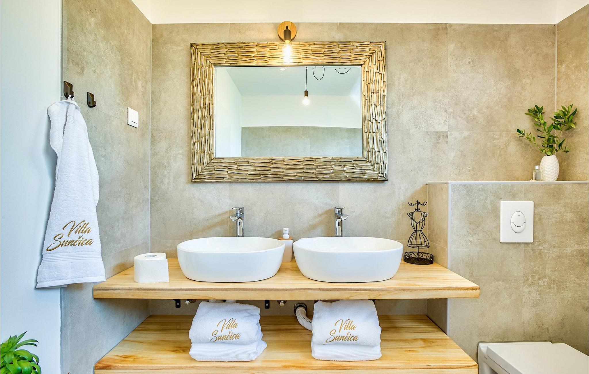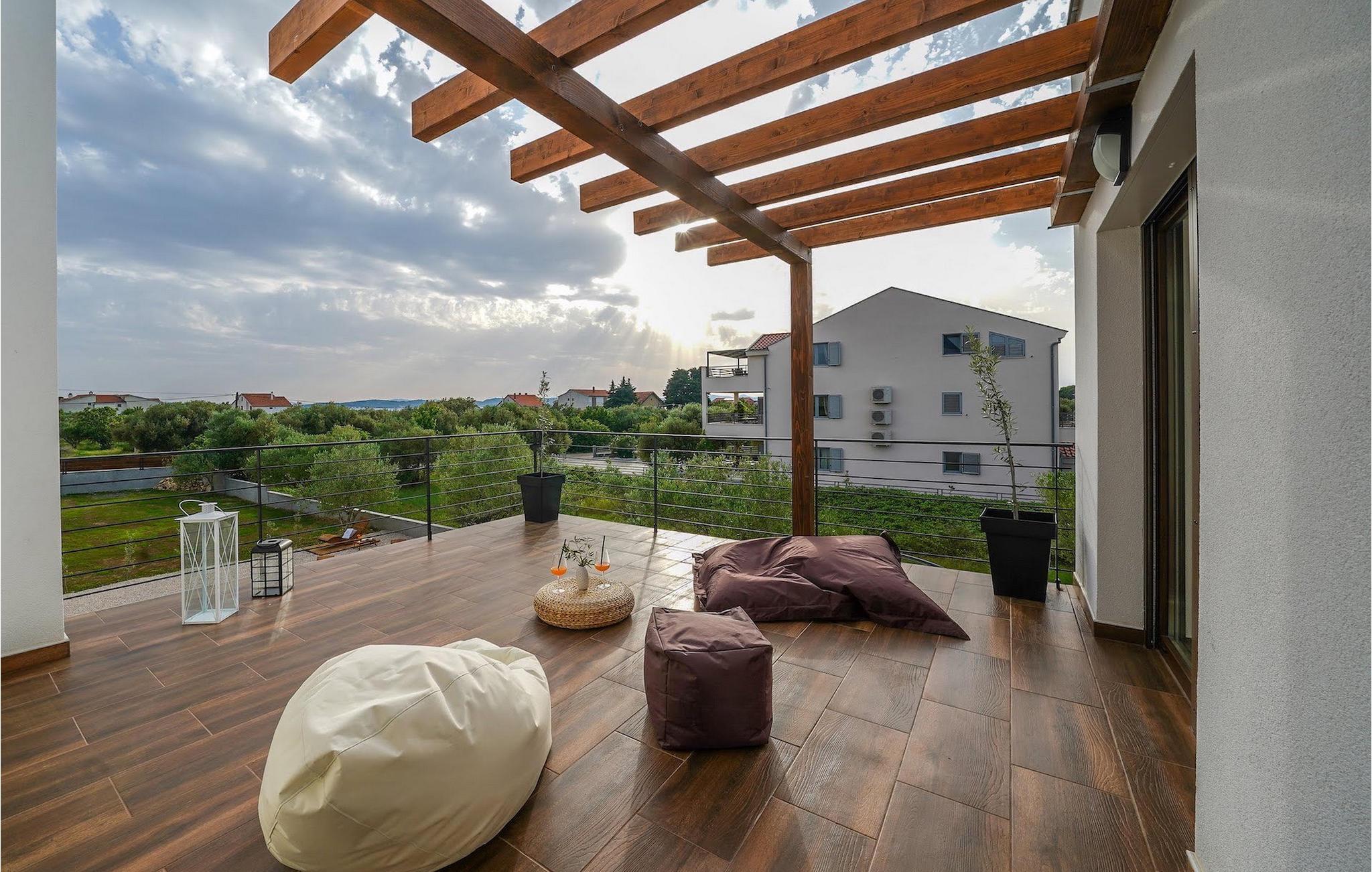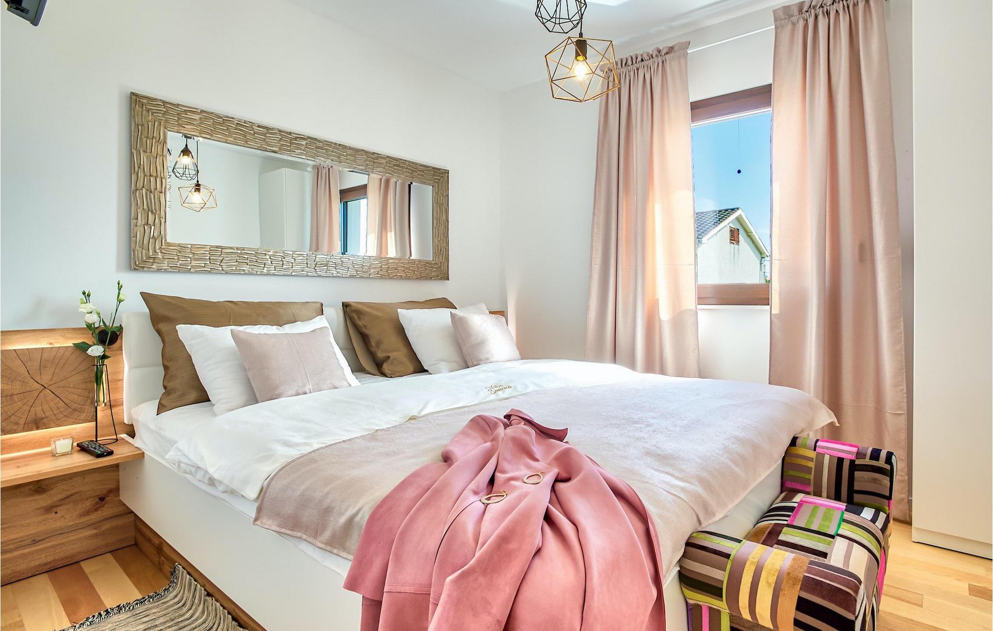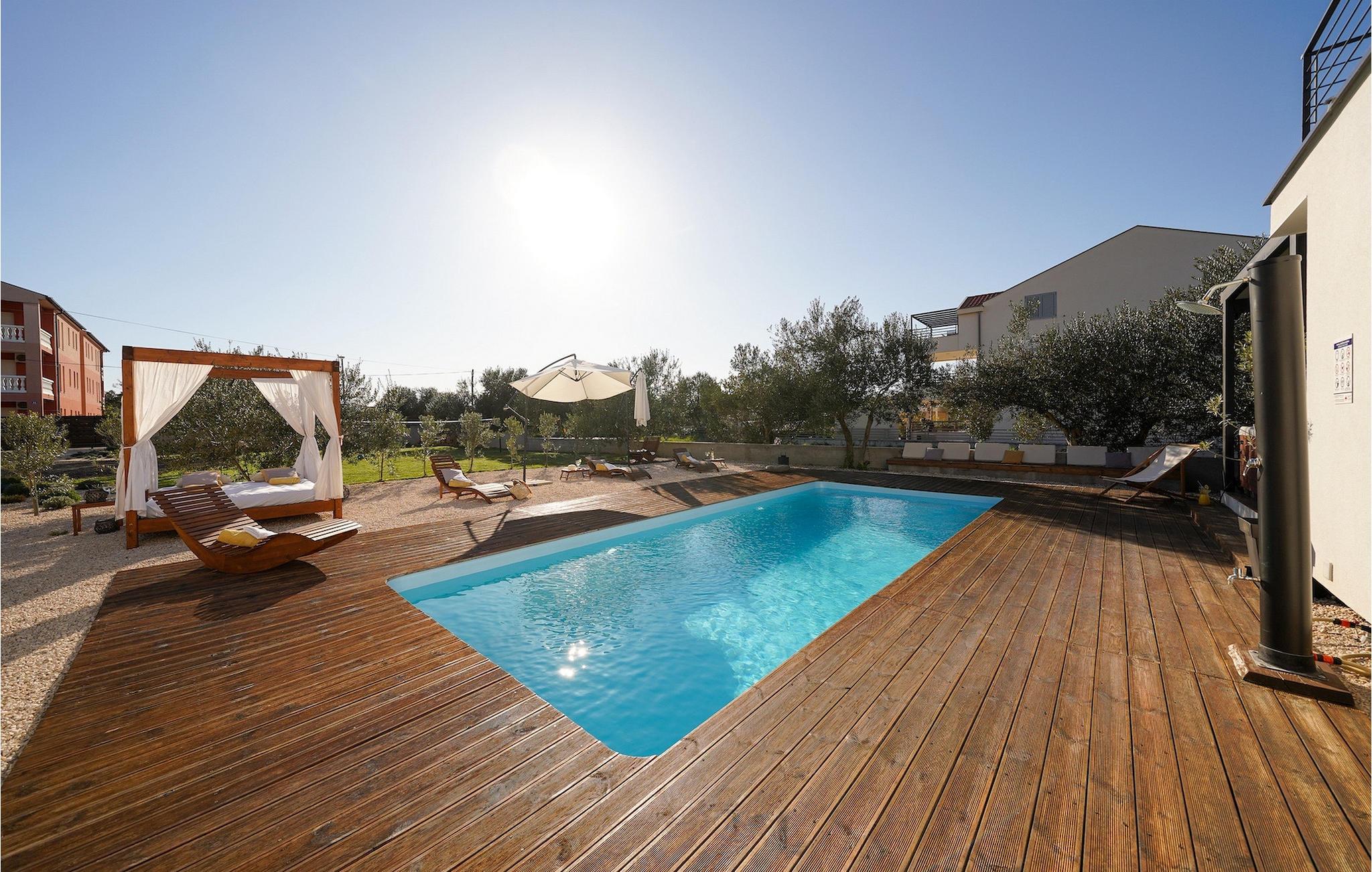 Denne villa ligger på en mere end 900 m2 stor grund i Sukosan, et malerisk lille kyststed nær Zadar. Kun en kort gåtur fra denne smukke villa skiller dig fra den nærmeste strand. En dejlig privat pool står til din rådighed, ligesom en udendørs jacuzzi. Poolområdet er helt sikkert stedet, hvor du vil tilbringe det meste af din tid, da der er hyggelige liggestole til afslapning ved poolen og en udendørs spiseplads med en kulgrill, ideel til at tilberede og nyde måltider udendørs. Villaen har 4 soveværelser og 3 badeværelser og er kærligt indrettet, i en enkel stil, men alligevel med masser af sans for detaljer. Stueetagen består af en rummelig opholds- og spisestue med et fuldt udstyret køkken. Det farverige børneværelse med to opdelte enkeltsenge ligger også i stueetagen, sammen med et badeværelse og et separat toilet. De resterende 2 badeværelser og 3 soveværelser, hver med dobbeltseng, tv og aircondition er sat ovenpå. Her kan du også nyde at se solnedgange på terrassen med havudsigt. Villaen er fuldstændig lukket, tilbyder to private parkeringspladser og masser af muligheder for at slappe af og tilbringe en fantastisk ferie i nærheden af Zadar. Denne villa er beliggende i en lille landsby ved navn Sukosan, kun en kort køretur væk fra den antikke by Zadar med historiske og kulturarv virkelig et besøg værd. Den store Alfred Hitchcock sagde, at Zadar har den smukkeste solnedgang i verden - sørg for ikke at gå glip af den! Den gamle bydel byder på monumenter fra oldtiden, middelalderen og renæssancen: Romerpladsen (1. århundrede), kirken St. Donat (9. århundrede), kirken St. Marija (11. århundrede, genopbygget i det 16. århundrede), katedralen af St. Stošija (12.-13. århundrede), delene af forsvarsmure... I dag er det berømt for symfonien om Havorgelet og lysinstallationen "Pozdrav Suncu" (hilsen til solen). Regionen bugner af smukke strande, gode restauranter, der tilbyder middelhavskøkken, nationalparker og naturparker (Krka-vandfaldene, Kornati-øerne, Plitvice-søerne, Telašcica, Paklenica...). Og hvis du leder efter mere sjov fra solnedgang til daggry, er der i Zadar masser af strandklubber og kaffebarer, og efter midnat kan du nyde den behagelige atmosfære i natbarer og klubber. Under dit ophold i Zadar glem ikke at smage den søde Maraschino kirsebærlikør!