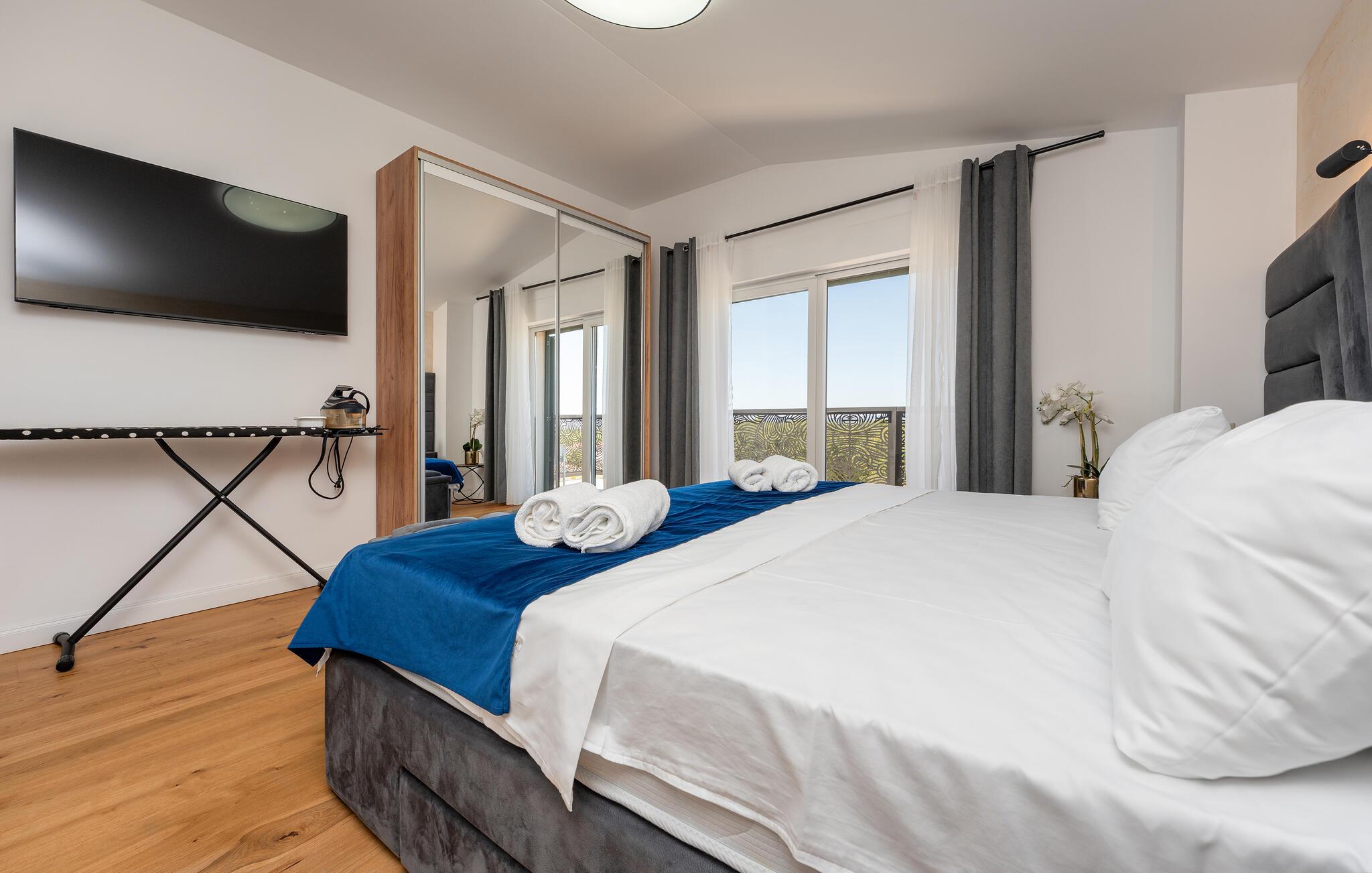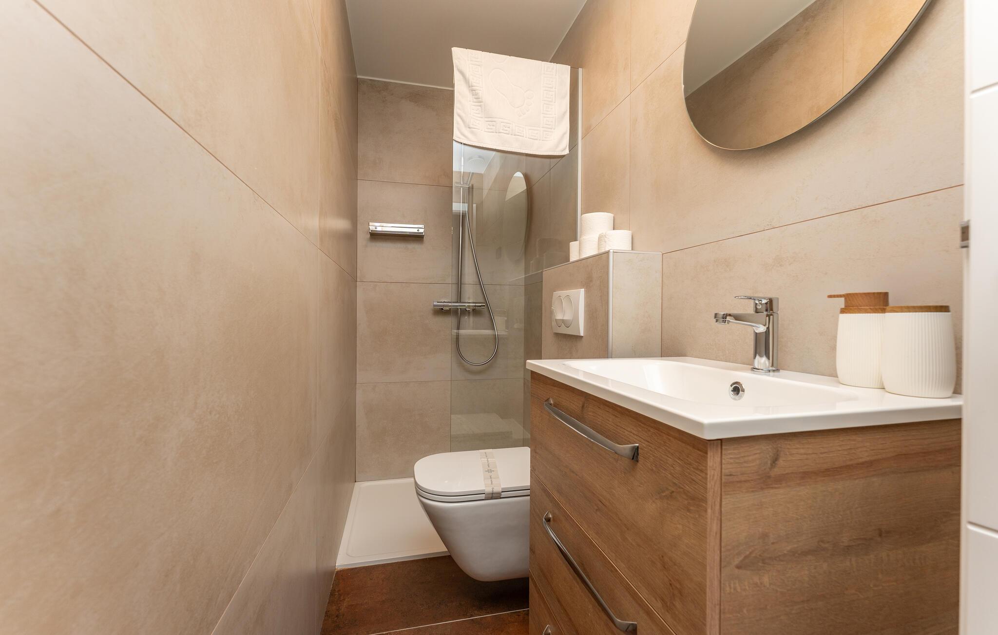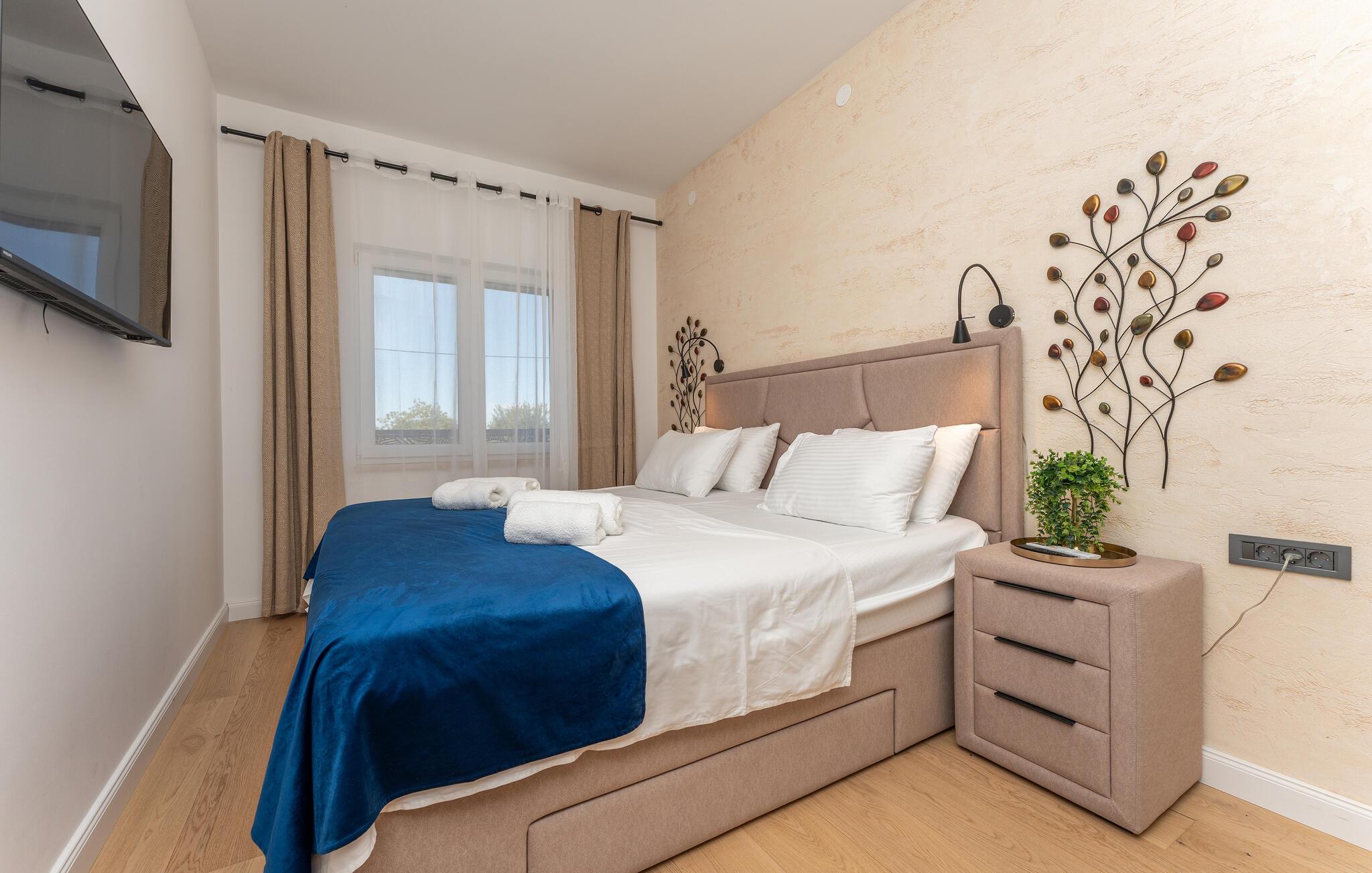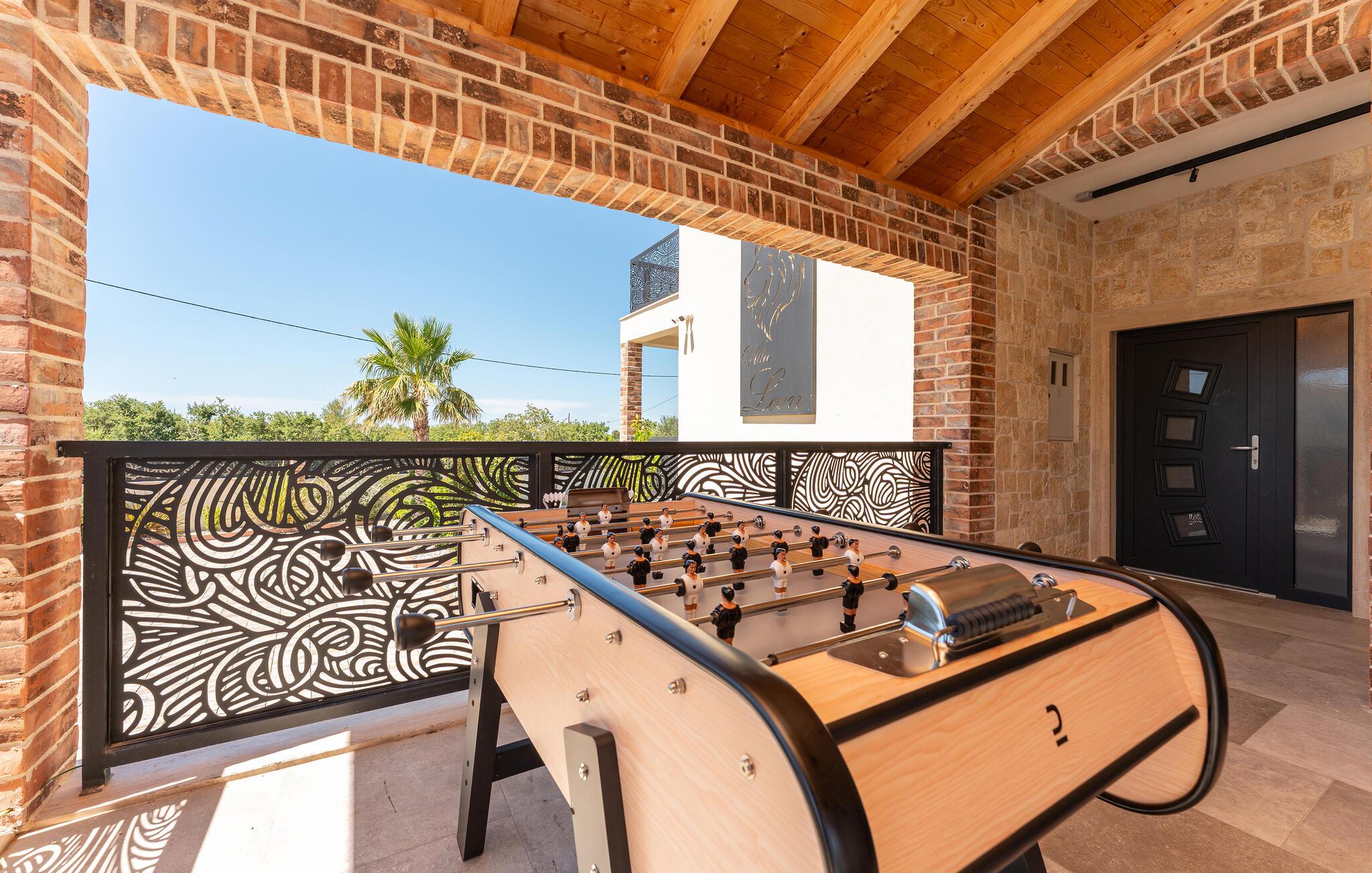 Oplev uforglemmelige ferier i dette stilfulde feriehus med pool nær havet. Dette elegant møblerede hus imponerer med et livligt farveskema, lyse værelser og en smuk træfinish. Hyg jer sammen i den indbydende sofagruppe, nyd afslappende timer med musik, eller tilbring en hyggelig filmaften sammen. Hvis I leder efter motion, kan I opbygge jeres udholdenhed og styrke i fitnessrummet. Start dagen med et par baner i den store pool eller en omgang vandpolo. Lad eftermiddagen passere i fred på en liggestol eller med en god bog, mens jeres børn morer sig på legeplads udenfor. Om aftenen kan I samles under den overdækkede terrasse til et lækkert måltid og nyde et glas fin kroatisk vin. Tag en tur til en af regionens smukke strande, hvor I kan nyde sol, hav og ren afslapning. Oplev de rolige omgivelser i Visocane på gåture eller cykelture gennem det dalmatiske landskab. Udforsk den historiske by Zadar med dens romerske monumenter, det unikke havorgel og den livlige atmosfære i den gamle bydel. Afslut dagen på en afslappet måde med en hyggelig middag og regionale specialiteter.
