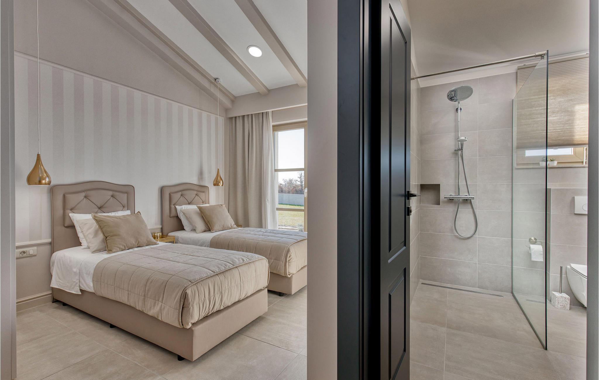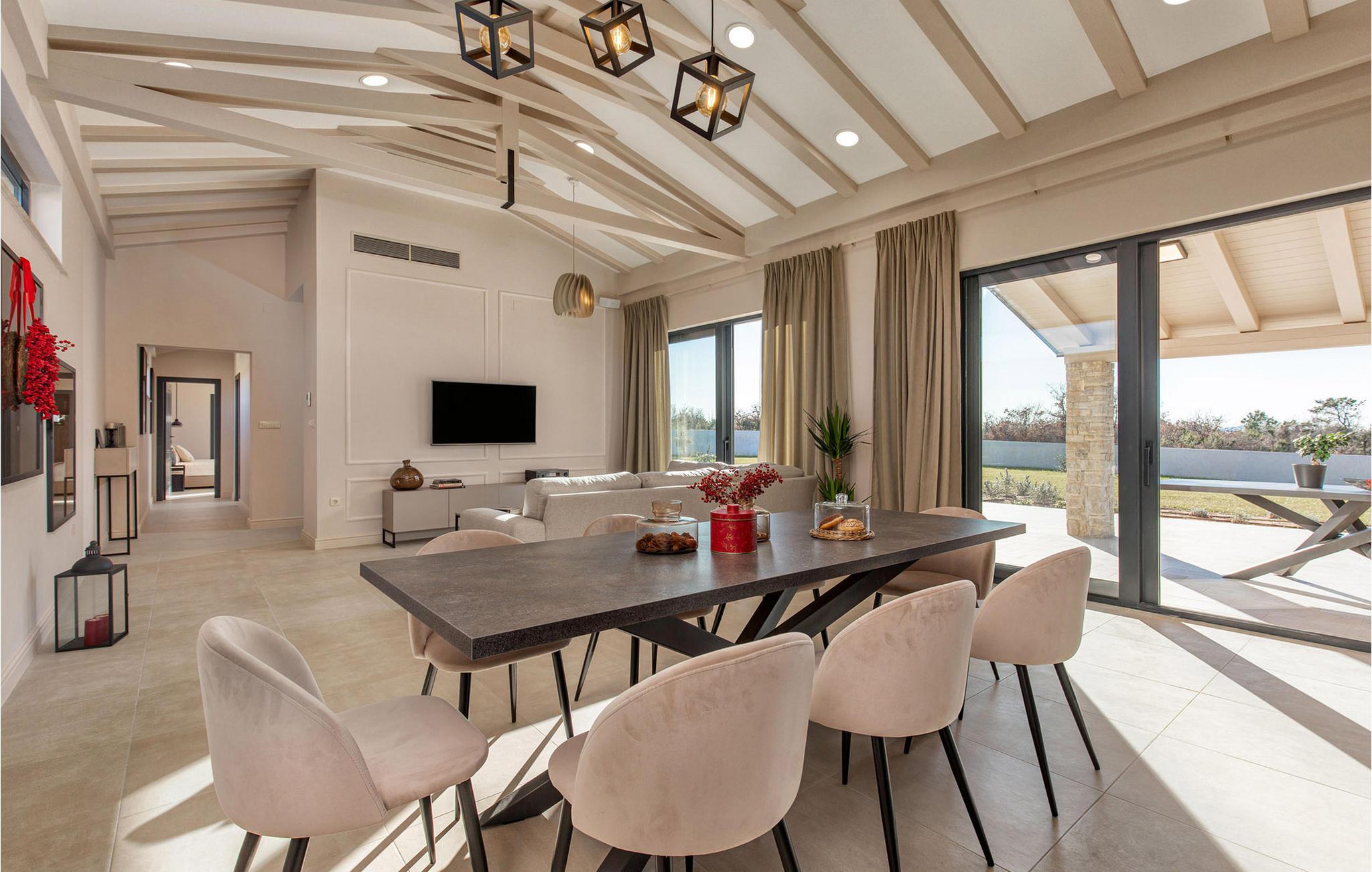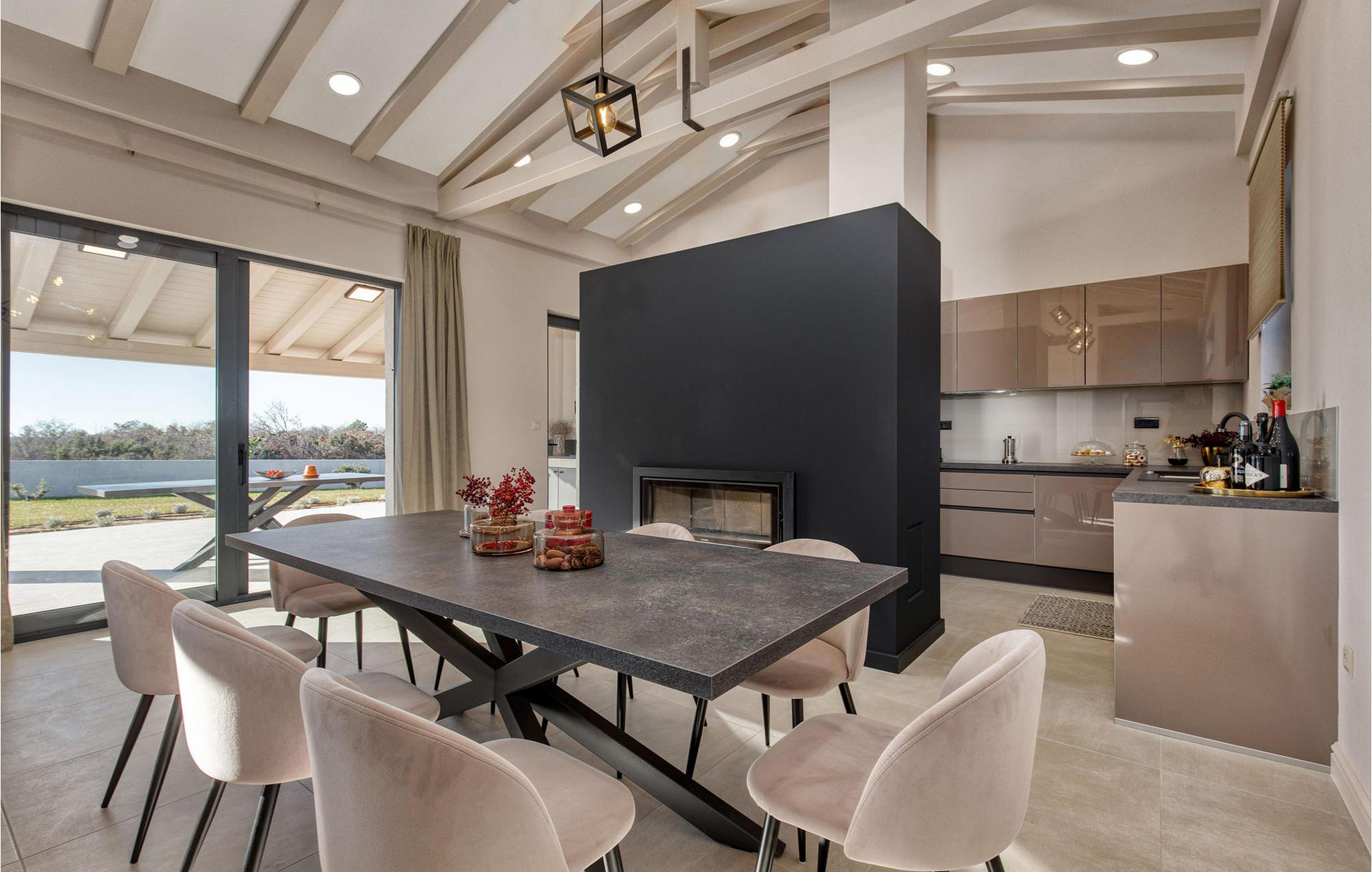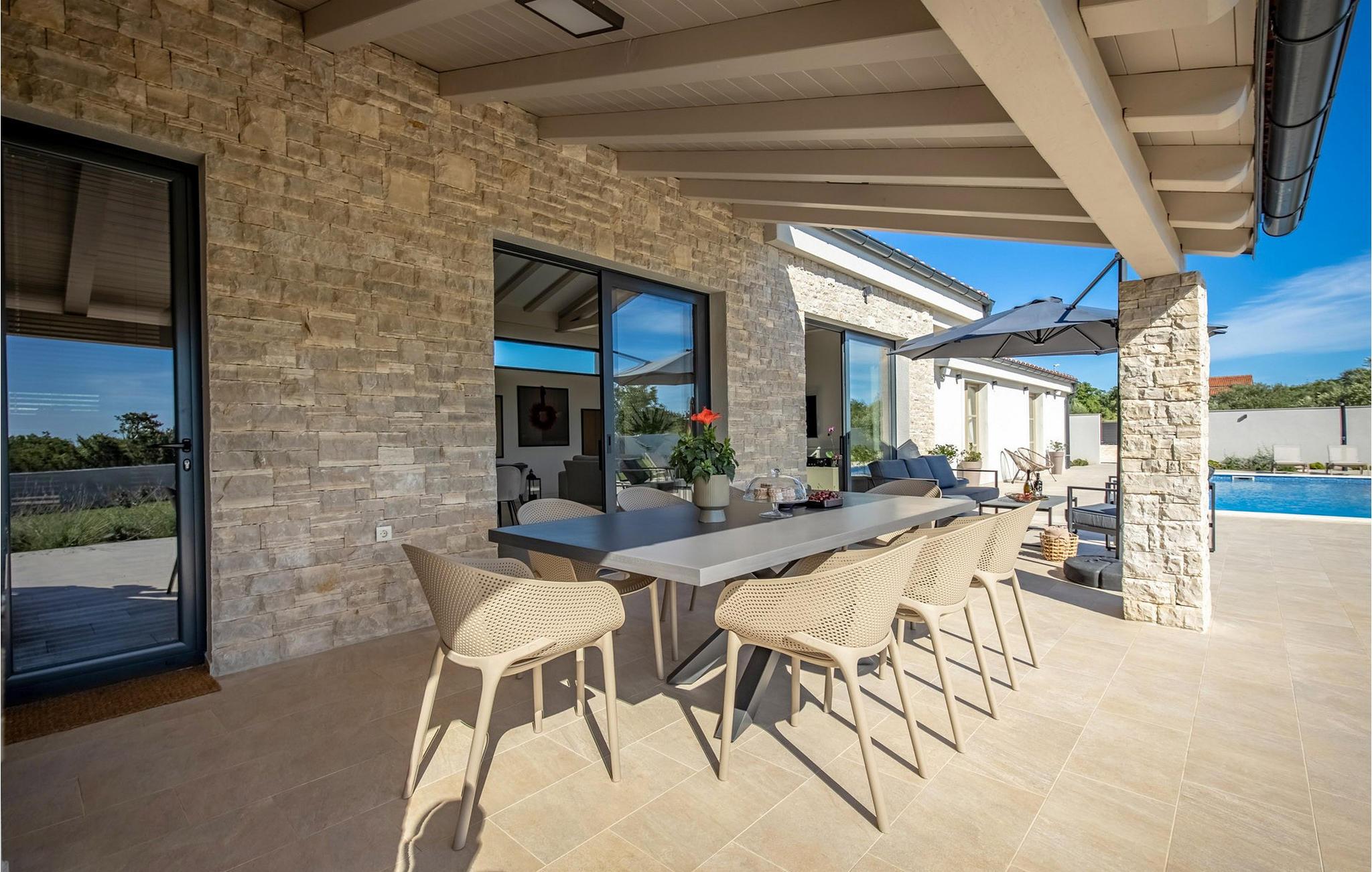 Tilbring en uforglemmelig ferie i dette stilfulde feriehus med pool i rolige omgivelser. Den luksuriøse Villa Nola i ét plan byder jer velkommen til charmerende landlige omgivelser og tilbyder det ideelle tilflugtssted for en solrig ferie med venner eller familie. Lad jer betage af det rummelige interiør, der er møbleret med smagfulde designermøbler. Gulv-til-loft-vinduer skaber en lys og behagelig atmosfære og giver også nem adgang til den smukke have. Den åbne opholdsstue er ideel til at fremtrylle kulinariske lækkerier sammen, nyde harmoniske måltider og slappe af i en behagelig atmosfære efter en lang dag. Træd barfodet ud på jeres terrasse, der er møbleret med elegante havemøbler, om morgenen og tag afslappende baner i den store pool. Nyd den fredelige atmosfære, mens I solbader, brug den stille tid til at meditere eller lad børnene og jeres hund boltre sig på den store græsplæne. Planlæg jeres aktiviteter over en dejlig udendørs morgenmad og fejr jeres tid sammen med stemningsfulde grillaftener med vin og stearinlys. Udforsk den historiske gamle bydel i Zadar med dens romerske ruiner, venetianske byporte og det unikke havorgel. Oplev Kornati-øerne med deres krystalklare bugter på en bådtur og se vandfaldene i Krka Nationalpark. Cykl gennem olivenlunde og vinmarker og solbad på sandstrandene i Nin, inden I forkæler jer selv med regionale specialiteter på en hyggelig taverna om aftenen.