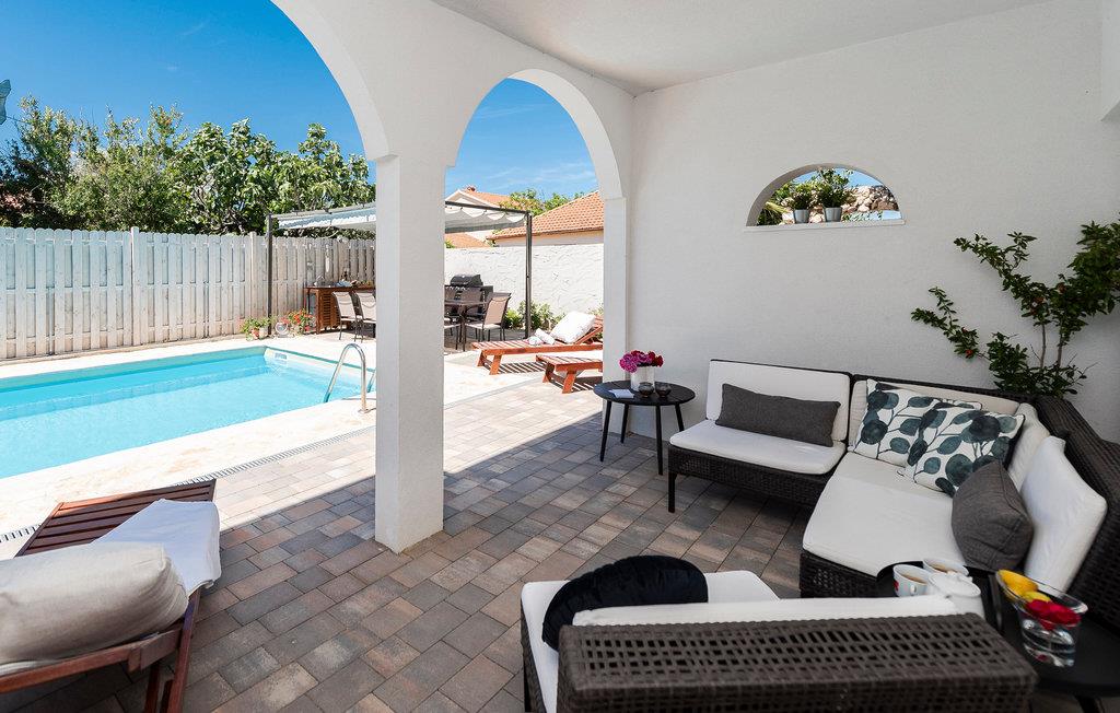 Hold en dejlig komfortabel ferie i dette feriehus med pool. I huset er der to separate lejligheder, der er forbundet med udendørs trapper. Oplev skønne grillaftner og slap af i poolen. Tag på udflugter til Zadar, der oprindeligt var Dalmatiens hovedstad og en af de meste interessante byer ved Adriaterhavet. Zadar ligger i den skønne region Ravni Kotari, med udsigt til Velebitbjerget på den ene side og de norddalmatiske øer på den anden side. I Zadar kan I lytte til tonerne fra Havorgelet og se Hilsen til solen gløde når solen går ned, begge er moderne kunstinstallationer.