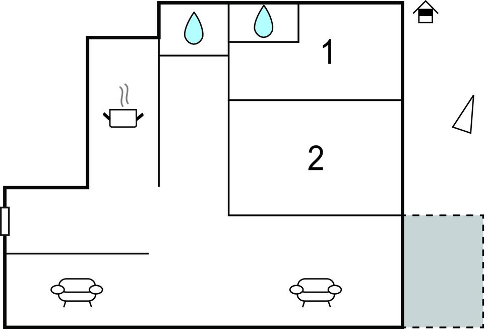 Komb. spisestue/køkken 30m2 - 2 Sovepladser. (Sofa, madras eller lignende).