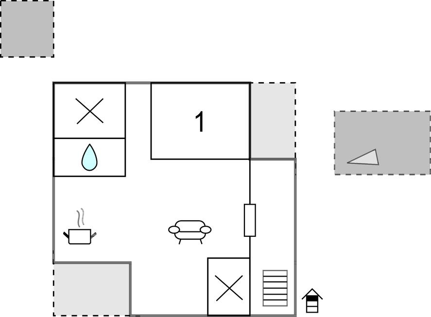 Soveværelse 30m2 (nr. 1) - 1 Soveplads. (Enkeltseng(e)). 2 Sovepladser. (Dobbeltseng(e)).
