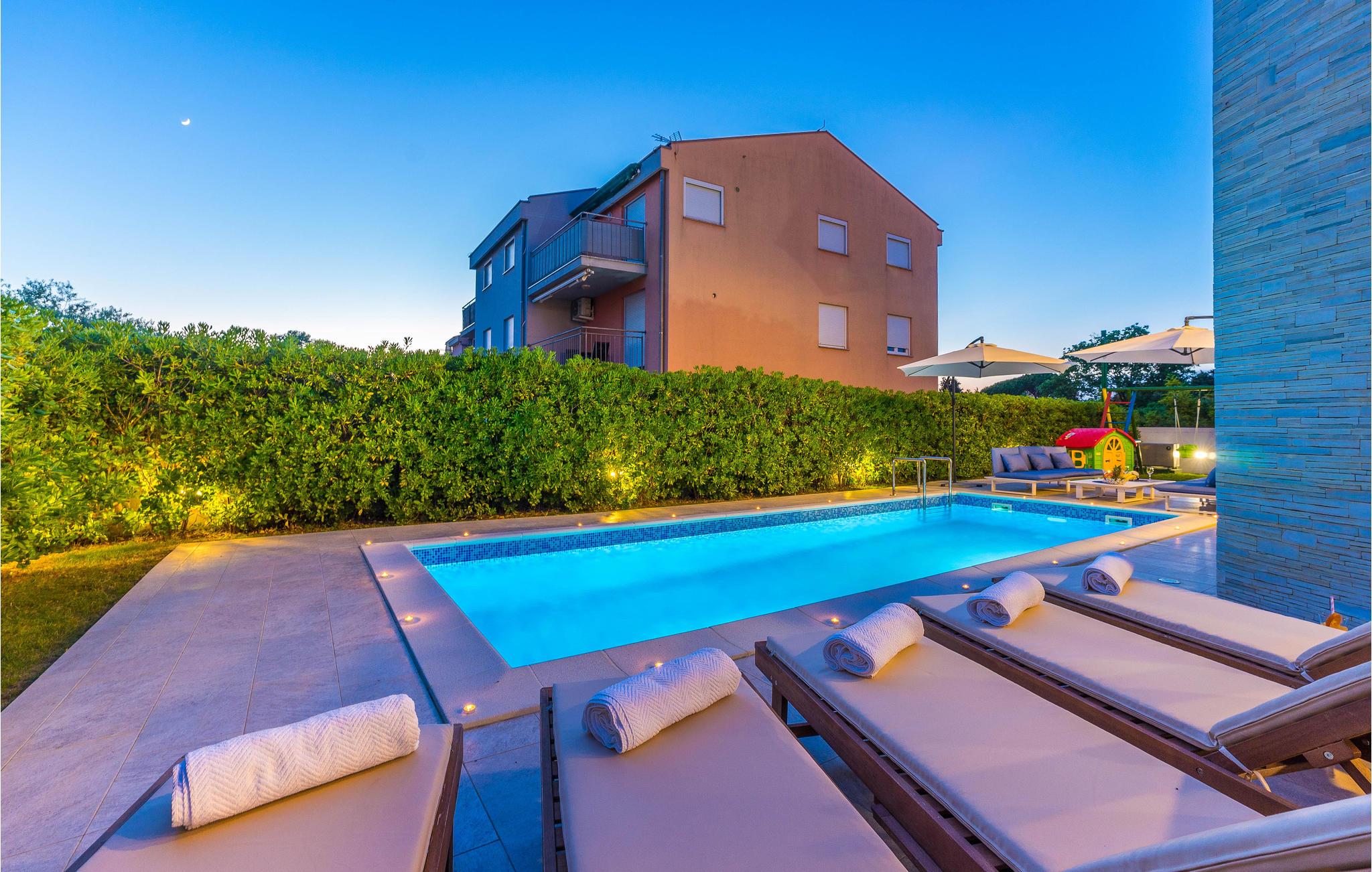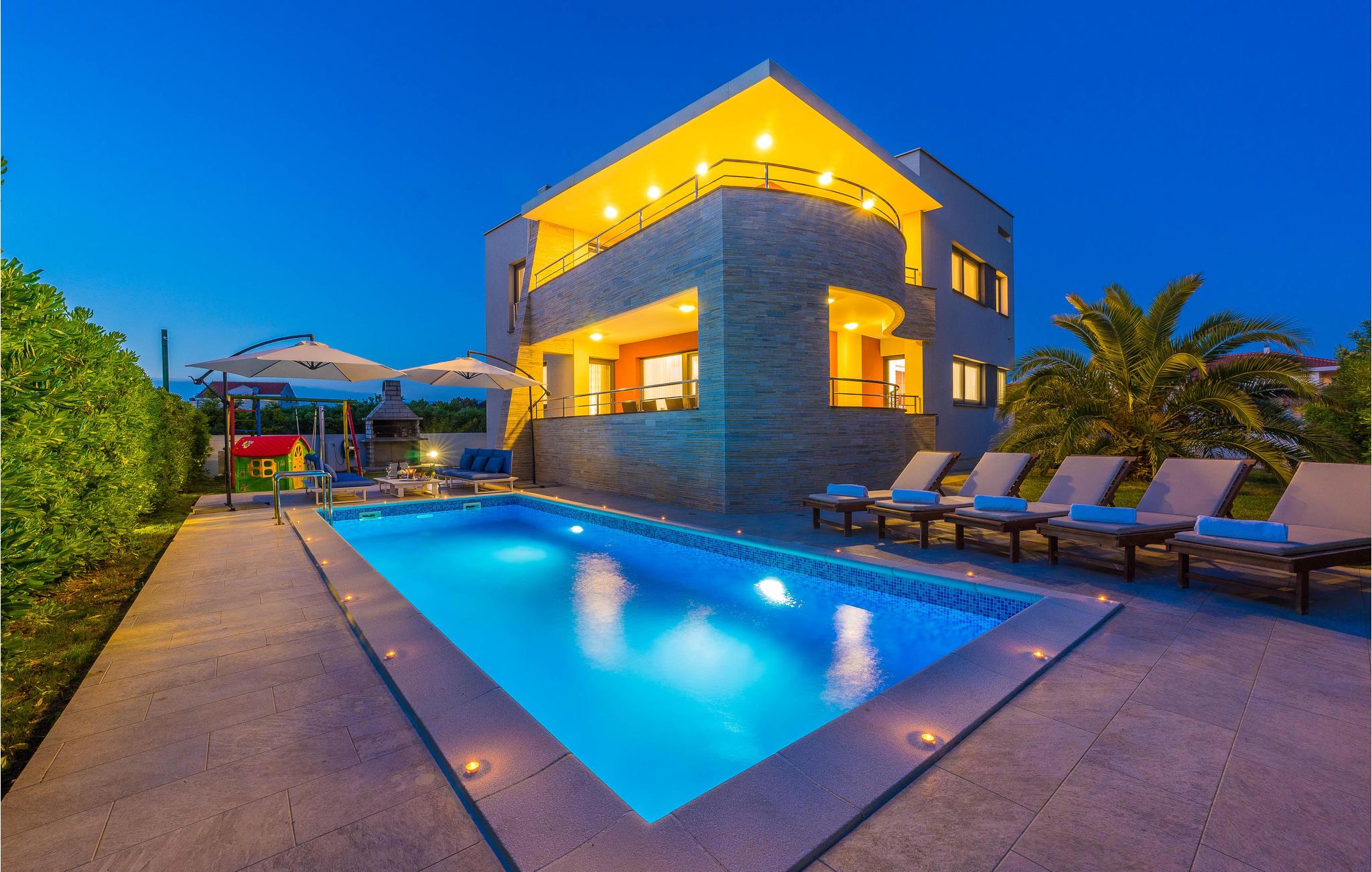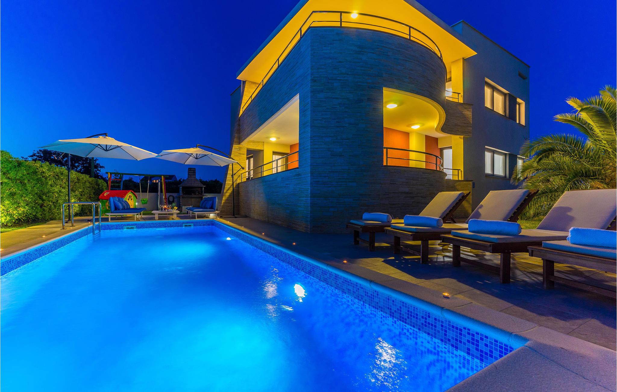 Und dig selv og dine kære en drømmeferie i dette attraktive feriehus med pool. Det ligger i nærheden af et kendt feriecenter og har forskellige faciliteter for børn og voksne. Rummene, der er gennemstrømmede af lys, er indrettet stilfuldt og meget komfortabelt. På første sal er der foruden soveværelserne også et fritidsrum, hvor der findes noget motionsudstyr og nogle selskabsspil. I to badeværelser er der hydro-massage-doucher. Ved siden af den udendørs pool kan I lave lækre fiske-, kød- og grønsagsretter på grillen, mens jeres børn leger uforstyrrede. Den udendørs belysning på terrassen sørger for yderligere behagelig aftenstemning. Den lille by Zaton er ideel til en rolig familieferie og er ligeledes rig på sand- og kiselstrande.