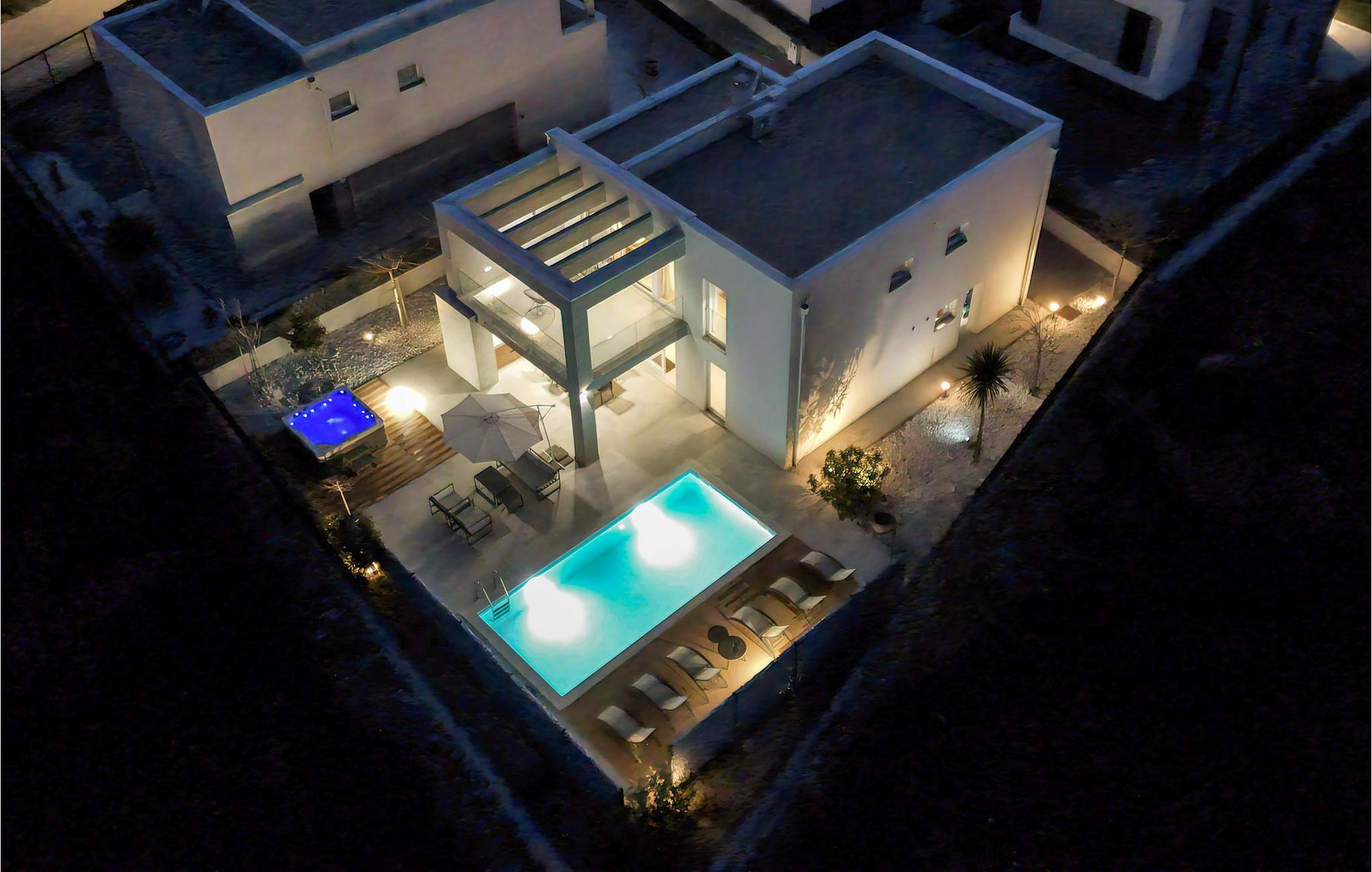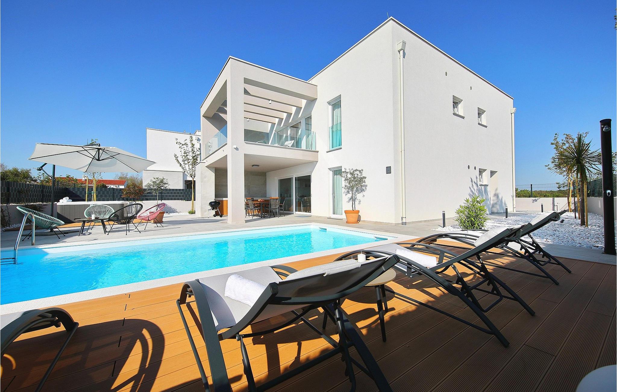 Nyd jeres ophold i denne moderne og smukke villa med spabad og swimmingpool. Den stilfulde Villa North i Zaton tilbyder de perfekte rammer for en afslappende ferie med familie og venner. Den moderne arkitektur og smagfulde møbler skaber en behagelig atmosfære, hvor I straks vil føle jer hjemme. Den åbne stue med et fuldt udstyret køkken og et rummeligt spisebord lægger op til at nyde måltider sammen. Soveværelserne på øverste etage lover en god nats søvn og giver jer mulighed for at starte jeres feriedage på en afslappet måde. Den smukt anlagte have med opvarmet pool og spabad tilbyder ren afslapning. Nyd lune sommeraftener på balkonen eller afslut dagen med en grillfest med familien. Zaton er idyllisk beliggende mellem de historiske byer Nin og Zadar og tilbyder talrige muligheder for aktiviteter og udflugter. De omkringliggende sandstrande er ideelle for familier, mens Nin-lagunen tiltrækker vandsportsentusiaster. Udforsk regionens kulturskatte, herunder Saltmuseet, romerske tempelruiner eller den charmerende gamle bydel i Zadar med dens verdensberømte seværdigheder. Gåture langs kysten eller et besøg på en af de hyggelige restauranter vil afrund jeres ferie.