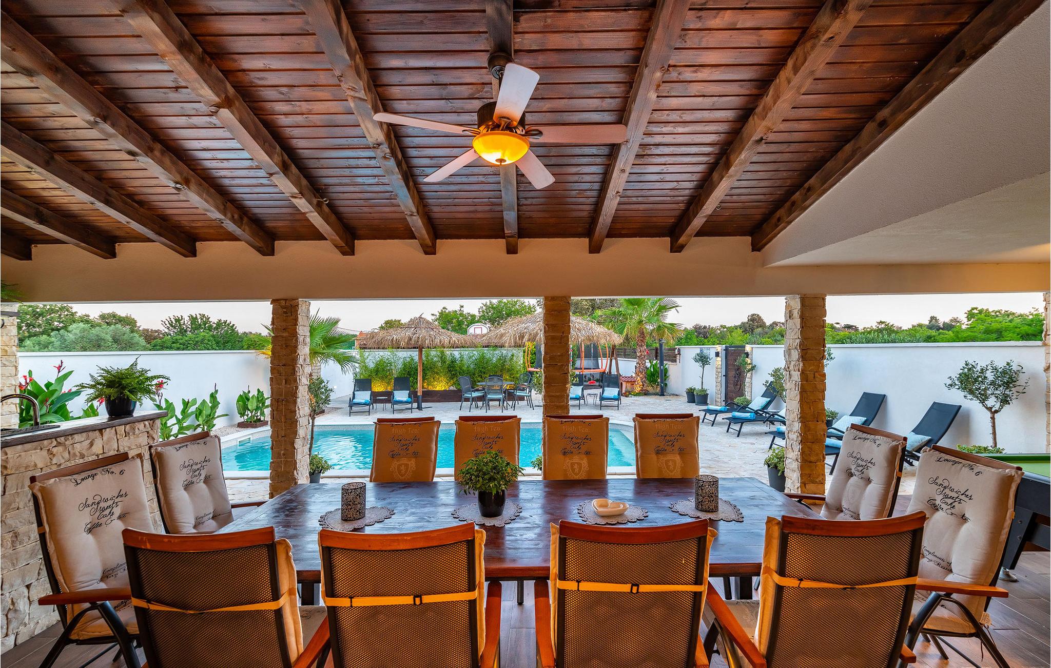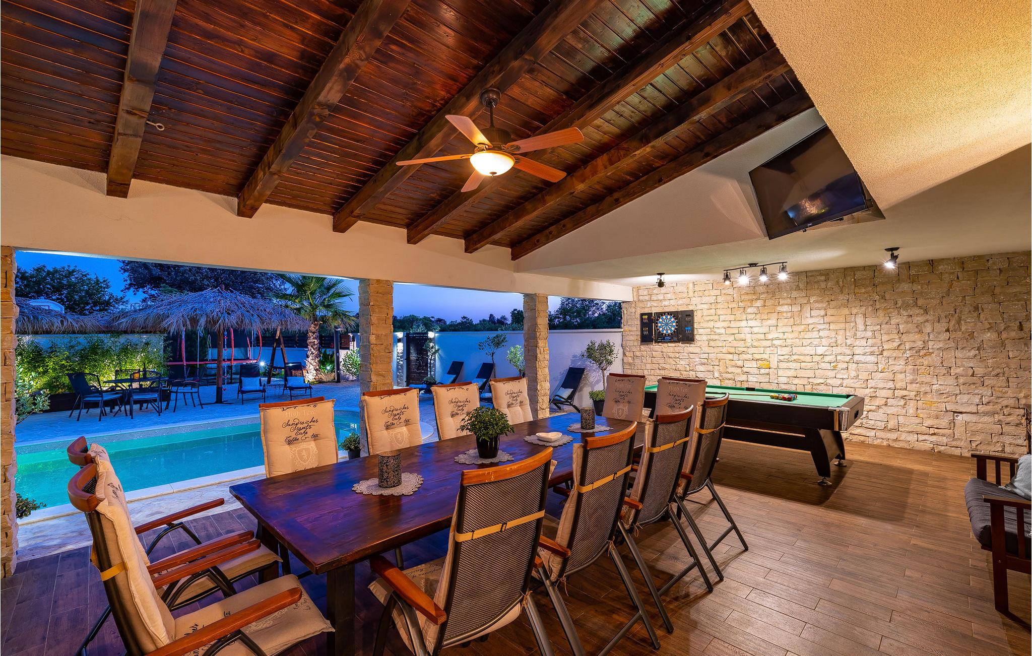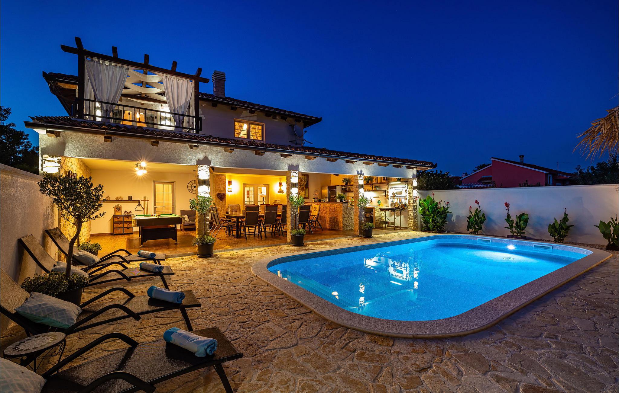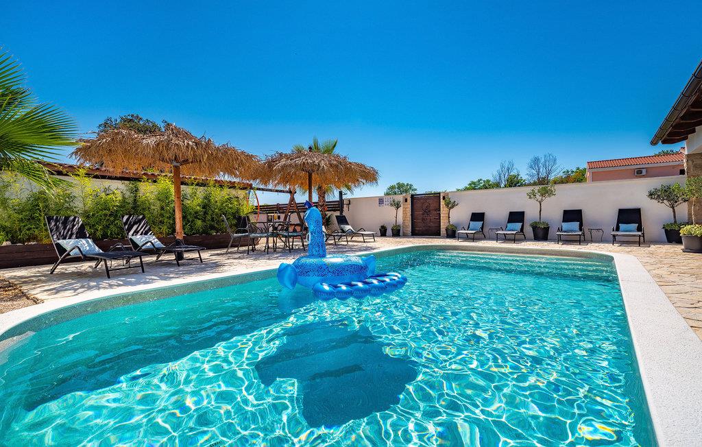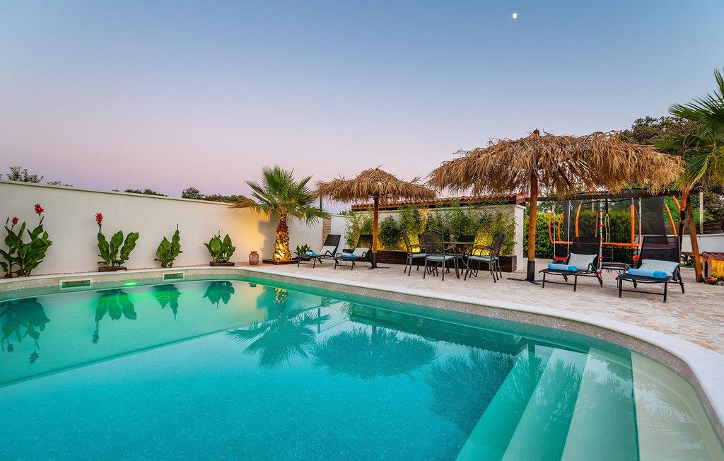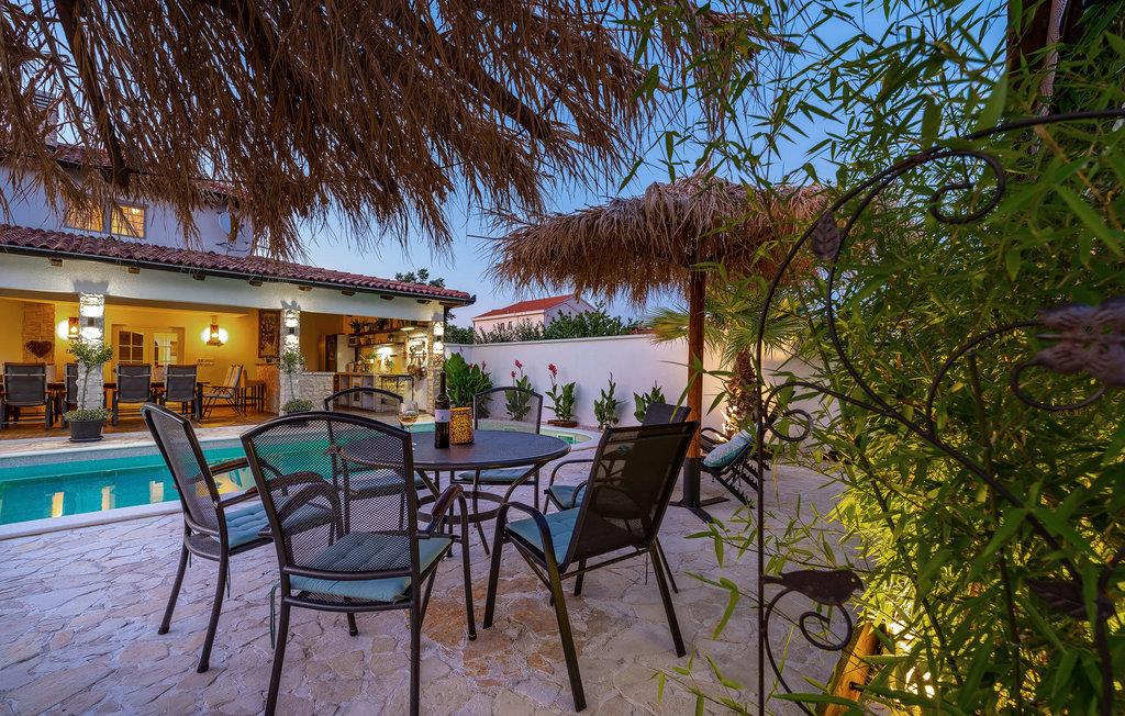 Glæd jer til jeres ferie i denne pragtfulde villa med swimmingpool og et stort udendørsområde. Denne stilfulde Villa Karmen i Zaton lægger op til en afslappende ferie ved havet. Denne moderne ferievilla kombinerer elegant design med traditionel dalmatisk stil og tilbyder alle faciliteter til et uforglemmeligt ophold. Det smagfuldt møblerede, fuldt udstyrede køkken flyder problemfrit over i den rummelige stue, der er dekoreret med sans for detaljer. Nyd jeres måltider på den overdækkede terrasse eller tag en forfriskende dukkert i poolen, mens børnene leger med trampolinen eller basketballkurven. Et poolbord og dart sikrer hyggelige timer, mens sommerkøkkenet med bar altid tilbyder snacks og kolde drikkevarer. Området omkring Zaton byder på talrige fritidsaktiviteter for hele familien. De blide sandstrande er ideelle til afslappende dage med svømning eller vandsport. Tag en tur til det nærliggende Nin, som vil imponere jer med sin historiske bymidte og den berømte Dronningestrand. Zadar med sin romerske historie, Havorglet og Solhilsenen er også let tilgængelig. For eventyrlystne anbefales klatre- og eventyrparken i Kozino. Bemærk venligst: Ejendommen accepterer ikke ungdomsgrupper under 30 år eller polterabender. Bookinger fra sådanne grupper vil blive afvist, selv ved ankomst eller under opholdet, uden refusion.