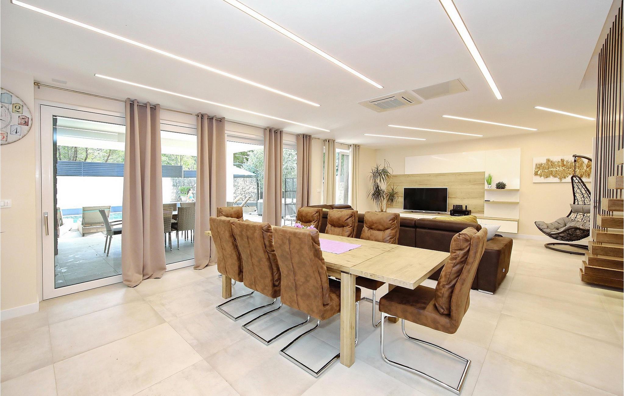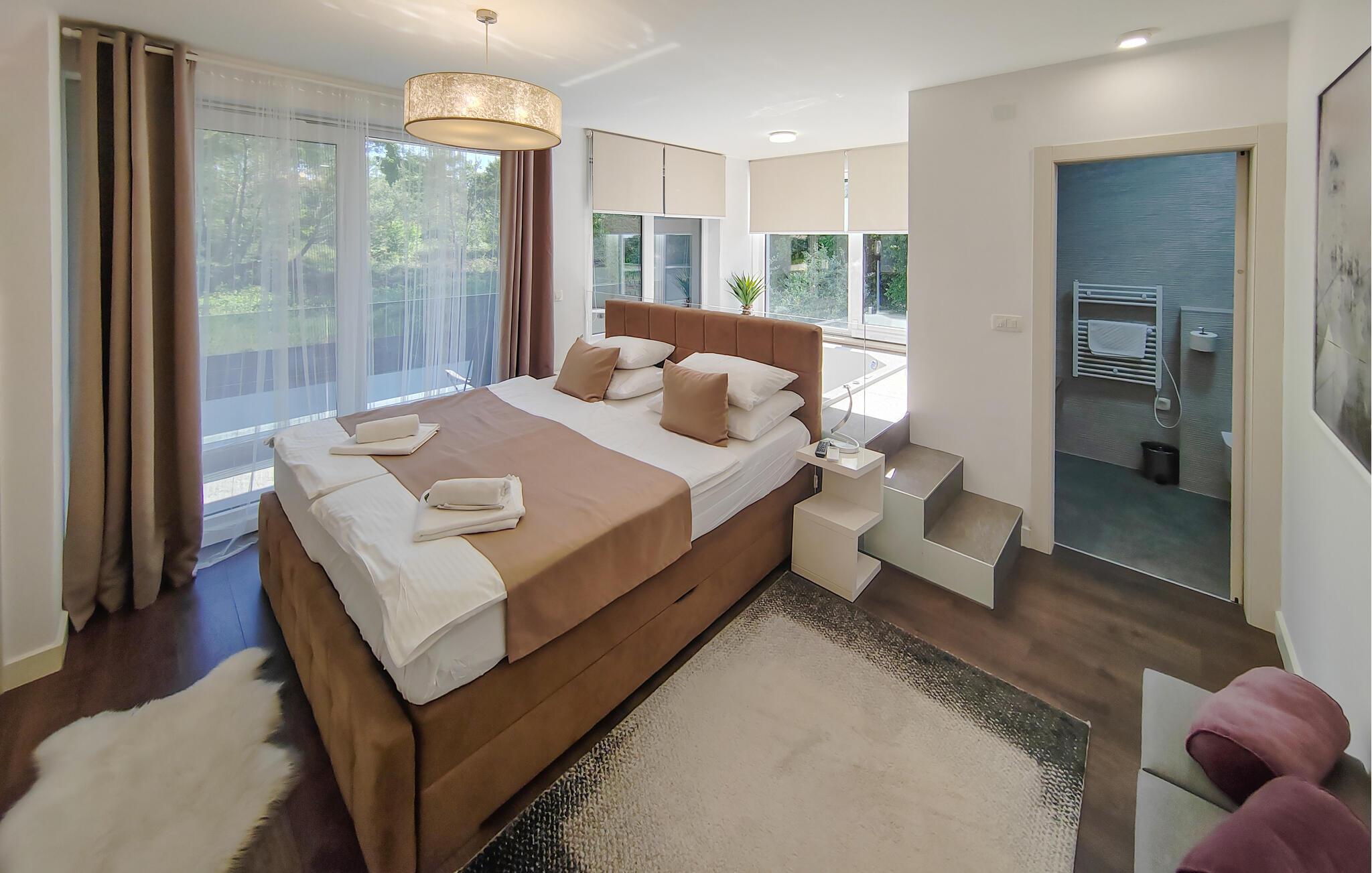 Nyd luksuriøs afslapning i denne villa – kun få meter fra havet. Oplev uforglemmelige ferieøjeblikke i den moderne Villa Mara i Zaton, der er noget særligt med luksuriøs komfort og en stilfuld atmosfære. De lyse, moderne møblerede værelser tilbyder alt, hvad I behøver for en afslappende pause. Det fuldt udstyrede køkken med tilhørende spiseplads og den hyggelige stue lægger op til at tilbringe tid sammen. I finder fred og ro i de elegante soveværelser, hvoraf det ene også forkæler jer med et massagebadekar. Den velholdte have med opvarmet pool, liggestole, spabad og sauna sikrer ren afslapning, mens børnelegepladsen byder på masser af sjov for de små. Glæd jer til talrige underholdningsmuligheder, herunder bordfodbold og dart. Som et særligt tilbud er der bådudlejning til en særlig pris. Zaton er det perfekte udgangspunkt for at opdage Dalmatiens skønhed. De berømte sandstrande er ideelle for familier, og det krystalklare vand lægger op til at svømme og snorkle. Udforsk den rige historiske arv i Kroatiens ældste by, Nin eller nyd de charmerende kystbyer Privlaka og Vrsi. Øen Vir er også et besøg værd med sine skjulte bugter og betagende solnedgange. Uanset om I leder efter afslapning eller eventyr, finder I begge dele i Zaton.
