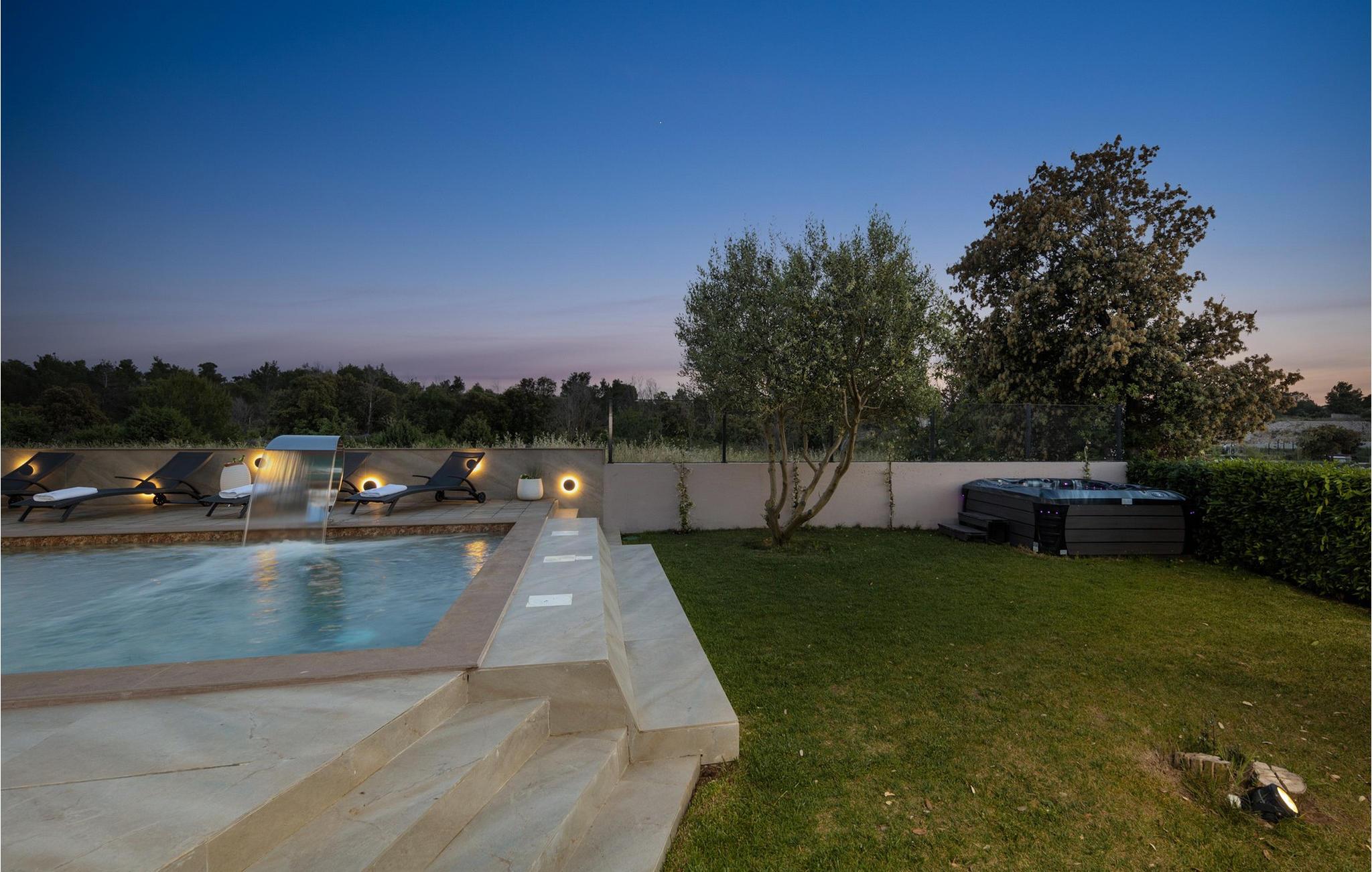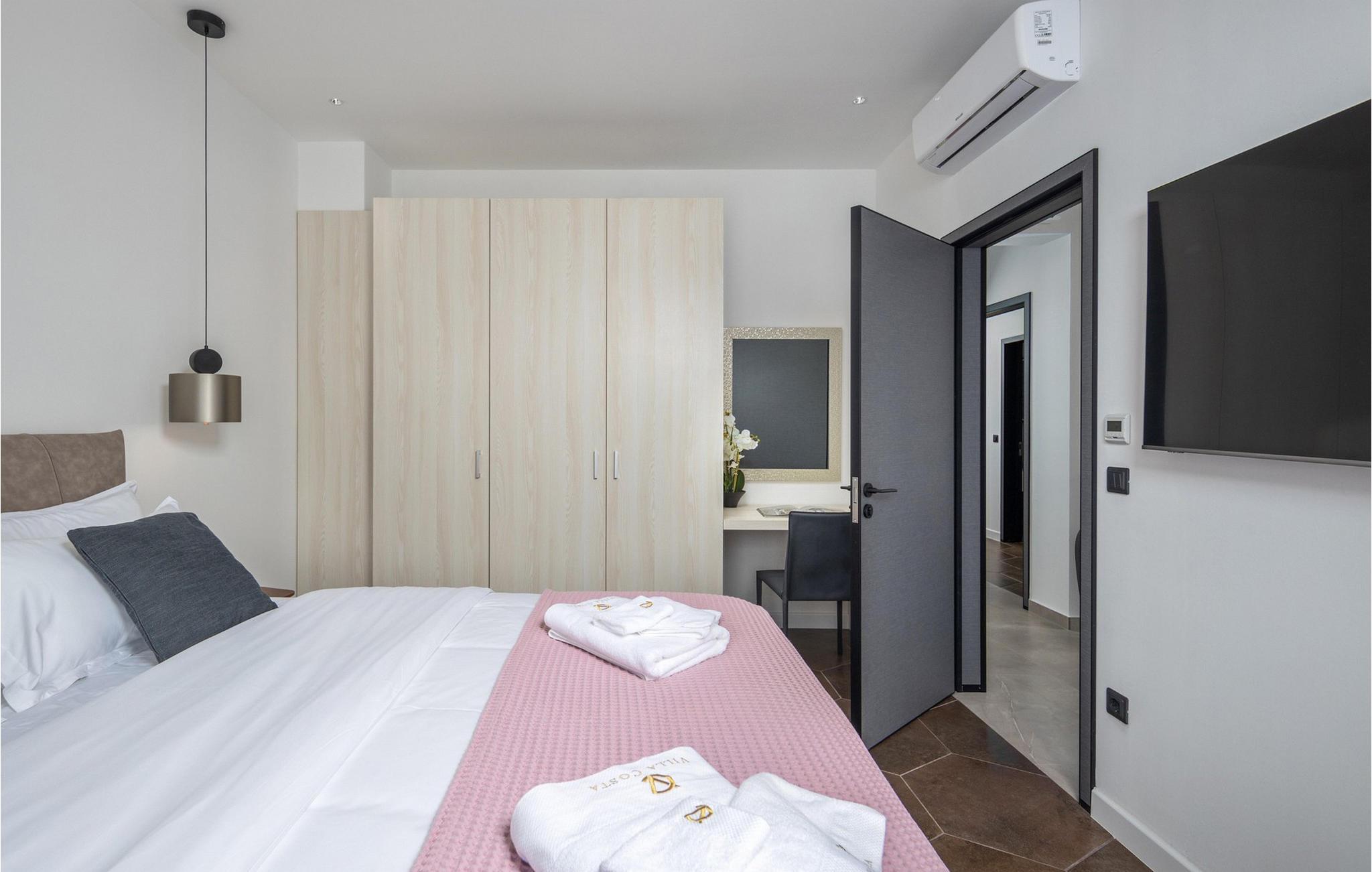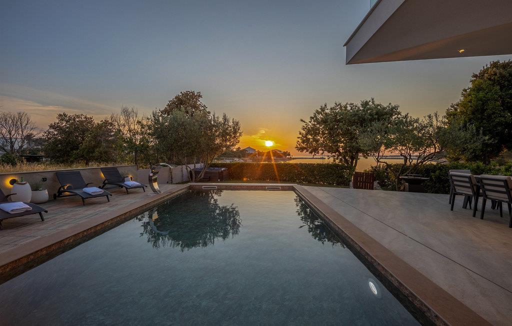 Forkæl jer selv med en drømmeferie i første række til havet og slap af med udendørs wellness i den fortryllende have. Velkommen til den luksuriøse Villa Costa, som venter jer med en elegant, men hyggelig atmosfære. Det stilfulde interiør med moderne møbler og smagfulde detaljer skaber en varm atmosfære, der straks fremkalder feriefølelse. Gør det behageligt i den rummelige stue og nyd hyggelige aftener med et glas vin, en spændende film eller en omgang PlayStation. Køkkenet af høj kvalitet, lavet af fine materialer, lægger op til at prøve nye opskrifter og tilberede måltider sammen med familie eller venner. Foran villaen åbner en smuk terrasse med udsigt over havet. Nyd morgenmaden under åben himmel eller slap af ved den opvarmede pool, som med sit elegante kobravandfald skaber en luksuriøs atmosfære. Slap af på behagelige liggestole, mens det skvulpende vand sørger for fuldstændig afslapning. Et spabad venter jer i den frodige have, hvor I fuldt ud kan nyde Middelhavets ro, mens I slapper af i det boblende vand. Om aftenen, når solen synker ned i havet, og lysene i haven tændes, forvandles udendørsområdet til romantiske omgivelser. Villa Costa ligger i Zaton, en charmerende turistby på Dalmatiens nordkyst, beliggende mellem de historiske byer Nin og Zadar. Lige uden for jeres hoveddør ligger sandstranden Pliša, ideel til små børn, som fører direkte til Ploce-stranden. Langs begge strande finder I adskillige restauranter, caféer og aktiviteter, der vil underholde jer. Hvis I er klar til en udflugt, kan I besøge byen Nin med dens smukke stenstrande og berømte helbredende mudder eller opleve det pulserende liv i Zadar, en af regionens mest populære turistdestinationer.