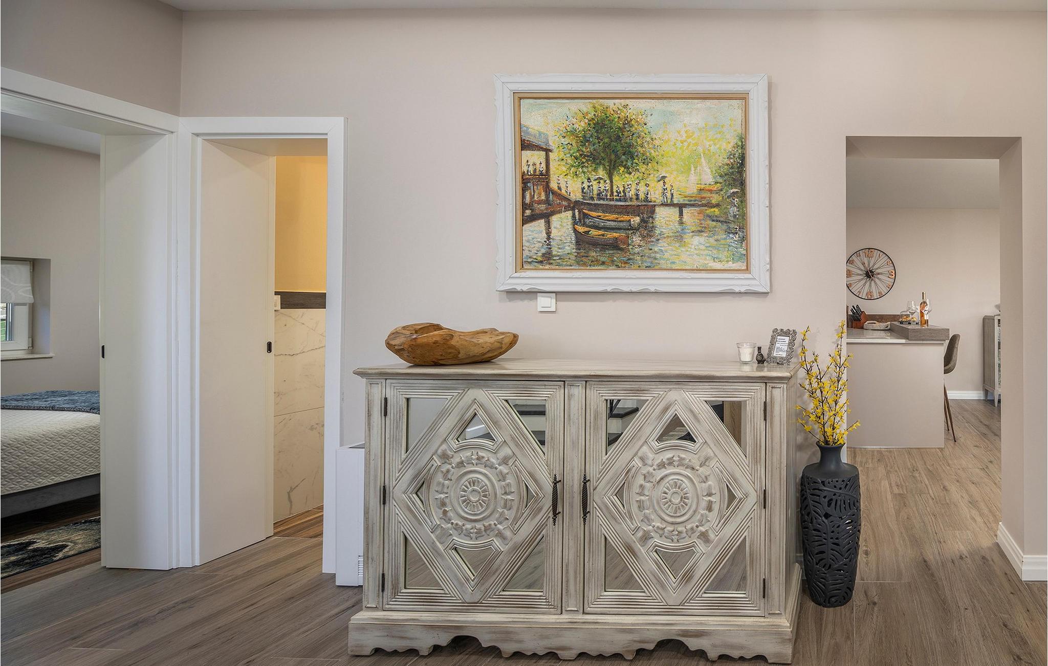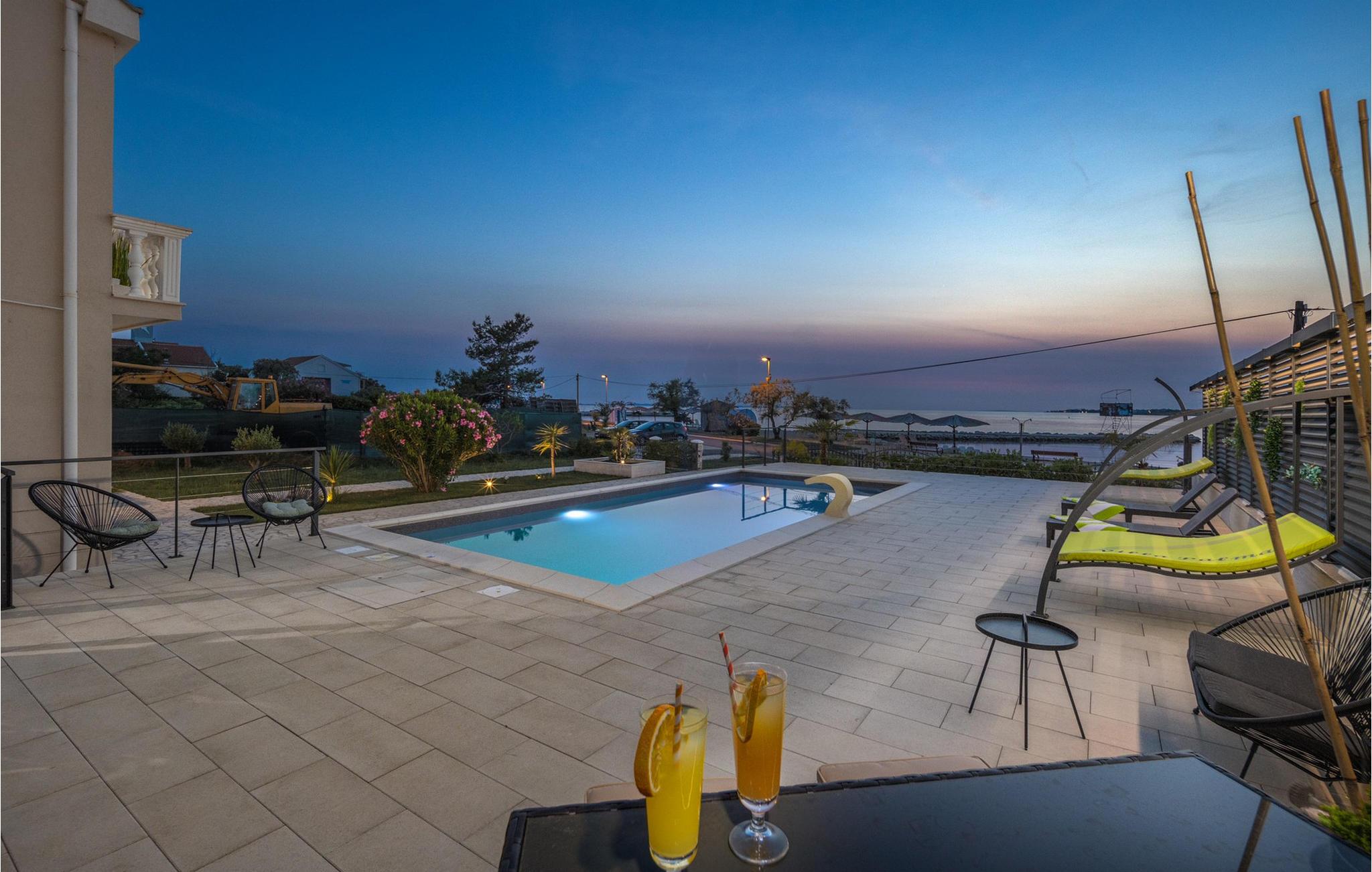 Villa Zaton byder jer velkommen til en privilegeret beliggenhed lige ved stranden og forkæler jer med et stilfuldt og eksklusivt interiør. Denne luksuriøse oase tilbyder rigelig plads til at nyde dens mange faciliteter, selv med en større familie eller en gruppe venner. Glæd jer til hyggelige måltider, hyggelige aftener med et glas vin og gode samtaler i godt selskab.