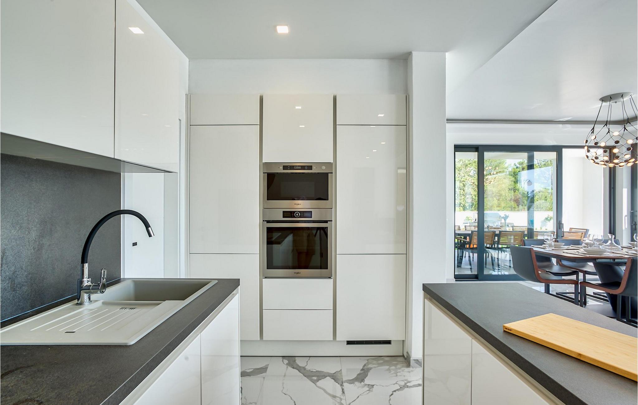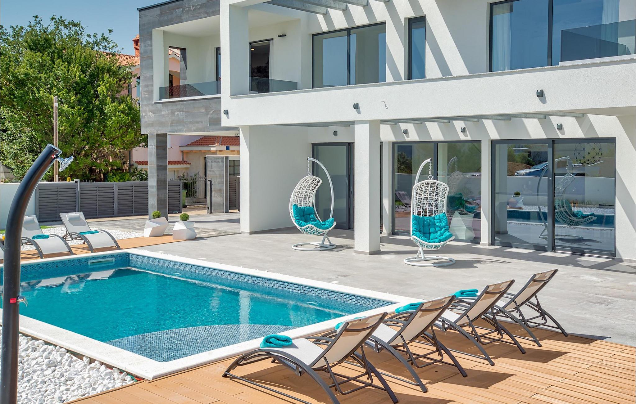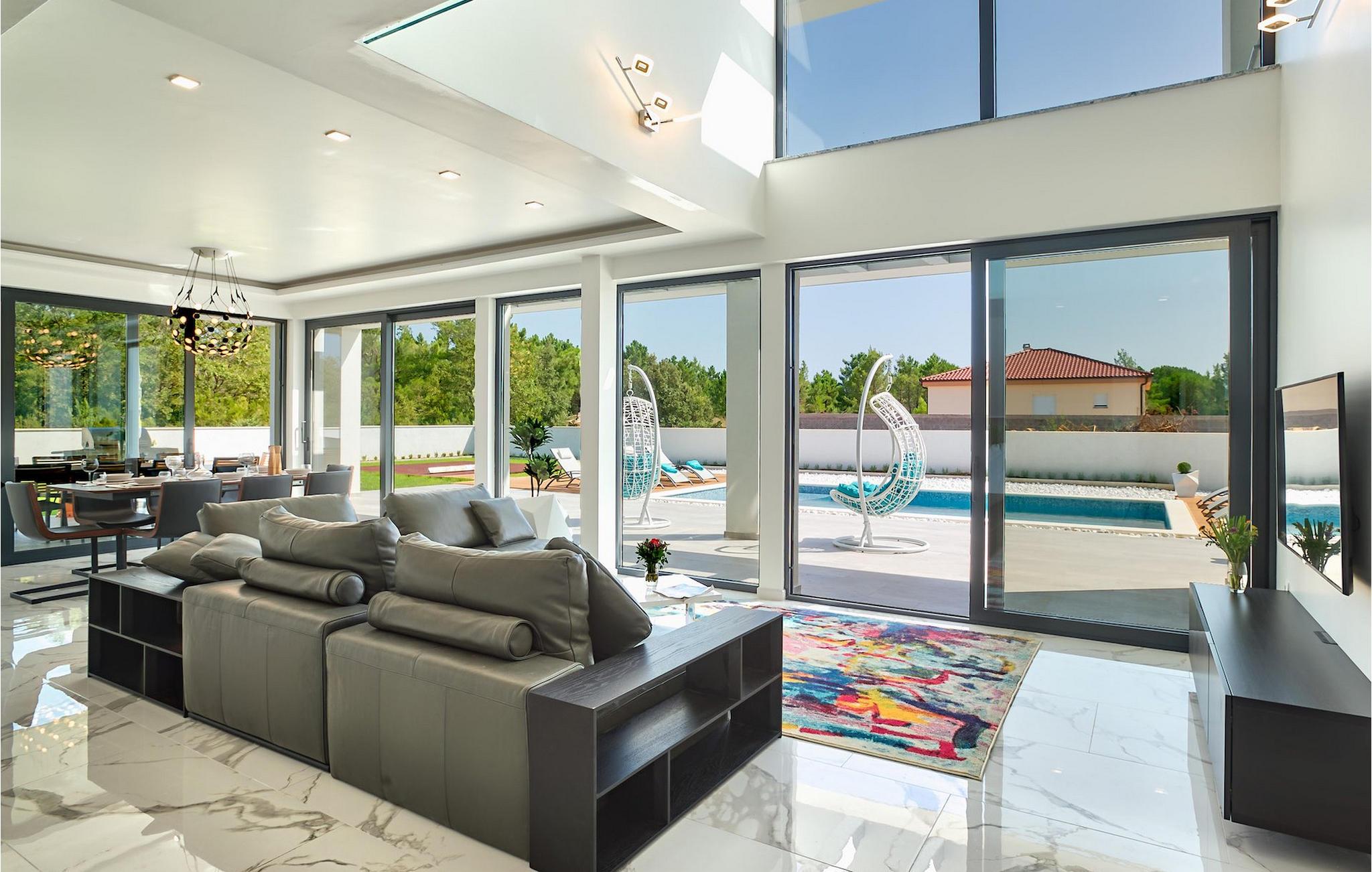 Treten Sie hinein in die wunderschöne, moderne Villa Nono in Zaton nahe Zadar. Mit dem eleganten, minimalistischen Design bietet diese Villa Unterkunft für bis zu 8 Personen an in 4 angenehmen Schlafzimmern. Hier können Sie um den privaten Pool herum genießen, grillen oder im offenen zusammen essen. Beim Betreten der Villa erwartet Sie ein heller Wohn-Essbereich im offenen Konzept verbunden mit einer komplett ausgestatteten Küche. Das Erdgeschoss hat auch ein schönes Schlafzimmer mit einem Doppelbett und einem eigenen Badezimmer. Alle Schlafzimmer verfügen über Fernseher, Klimaanlagen und ein eigenes Badezimmer. Die erste Etage bietet 3 weitere Schlafzimmer mit Balkon und Terrasse. Perfekt, um die erste Morgensonne bei einem Tee oder Kaffee einzufangen. Zahlreiche Glaselemente und breite Türen öffnen den Raum und geben der Villa ein sanfteres Licht, während sie vom Wohnzimmer aus den einladenden Pool überblicken. Der nächste Strand ist zu Fuß erreichbar also können Sie die Gegend leicht erkunden und das klare Meer genießen während Sie im Schatten den Kieferbäumen zu Ruhe kommen.Diese wunderbare Villa befindet sich in der Kleinstadt Zaton, nicht weit von den schönen Städten wie Zadar und Nin, die einen Besuch wert sind. Der erste Strand ist nur 1km entfernt von der Villa. Wir empfehlen Ihnen die naheliegenden touristische Städte Zadar und Nin mit vielen Sehenswürdigkeiten zu besuchen. Nin ist eine charmante Kleinstadt, heutzutage berühmt für seine schönen Sandstände, Salinen und natürlichen Heilschlamm. Eine interessante Tatsache - Nin wurde von European Best Destinations zu einem der romantischsten Reiseziele in Europa gewählt. Zadar ist ideal für Architekturliebhaber, mit vielen Museen aber auch Cafés, Restaurants und einen lebendigen Nachtlebens. Besichtigen Sie das Kennzeichen der Stadt, die Kirche des Heiligen Donatus aus dem 9. Jahrhundert, gebaut im romanischen Stil. Geschäfte, Restaurants und Bars befinden sich in Gehweite der Villa.