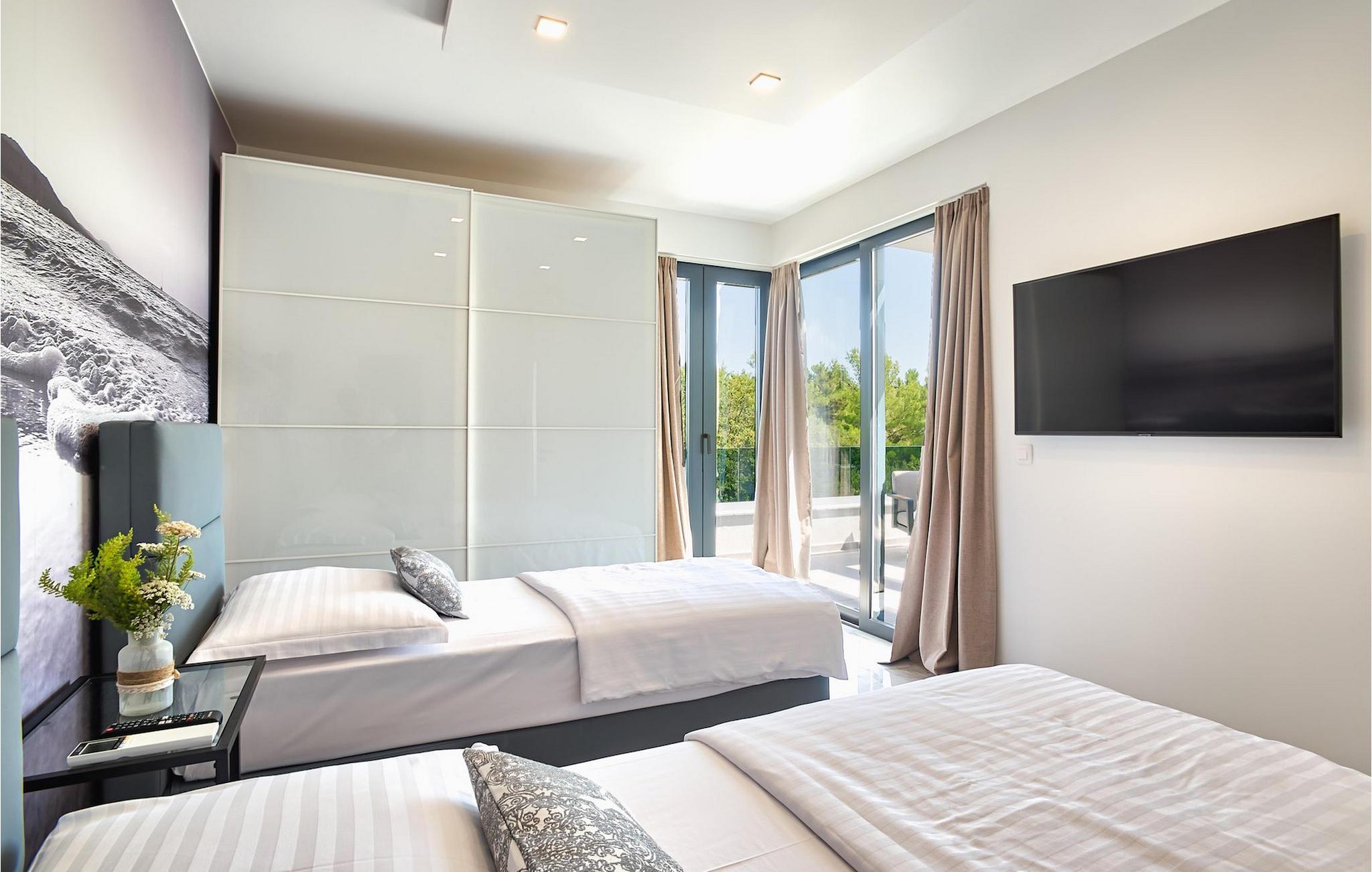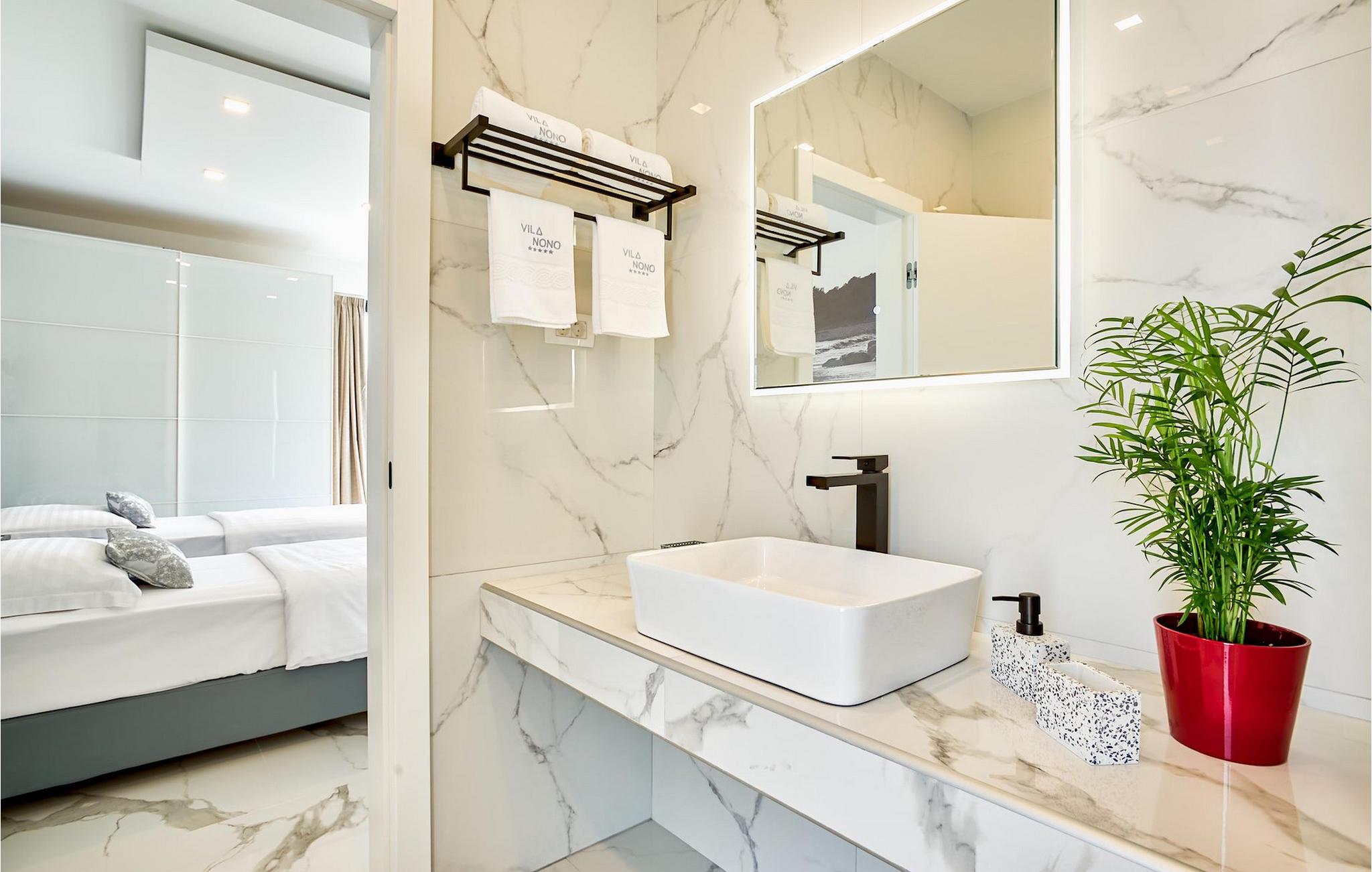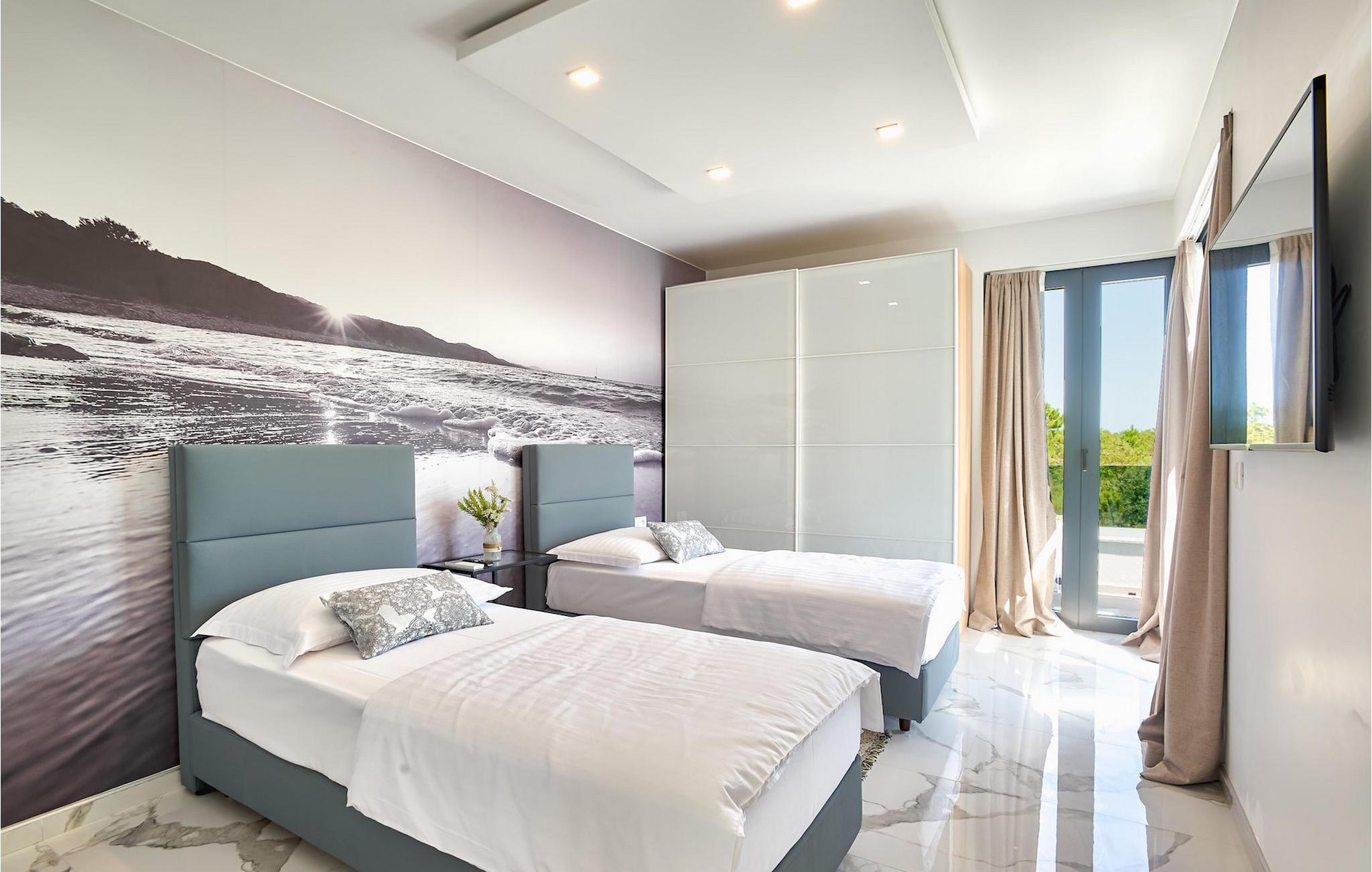 Treten Sie hinein in die wunderschöne, moderne Villa Nono in Zaton nahe Zadar. Mit dem eleganten, minimalistischen Design bietet diese Villa Unterkunft für bis zu 8 Personen an in 4 angenehmen Schlafzimmern. Hier können Sie um den privaten Pool herum genießen, grillen oder im offenen zusammen essen. Beim Betreten der Villa erwartet Sie ein heller Wohn-Essbereich im offenen Konzept verbunden mit einer komplett ausgestatteten Küche. Das Erdgeschoss hat auch ein schönes Schlafzimmer mit einem Doppelbett und einem eigenen Badezimmer. Alle Schlafzimmer verfügen über Fernseher, Klimaanlagen und ein eigenes Badezimmer. Die erste Etage bietet 3 weitere Schlafzimmer mit Balkon und Terrasse. Perfekt, um die erste Morgensonne bei einem Tee oder Kaffee einzufangen. Zahlreiche Glaselemente und breite Türen öffnen den Raum und geben der Villa ein sanfteres Licht, während sie vom Wohnzimmer aus den einladenden Pool überblicken. Der nächste Strand ist zu Fuß erreichbar also können Sie die Gegend leicht erkunden und das klare Meer genießen während Sie im Schatten den Kieferbäumen zu Ruhe kommen.Diese wunderbare Villa befindet sich in der Kleinstadt Zaton, nicht weit von den schönen Städten wie Zadar und Nin, die einen Besuch wert sind. Der erste Strand ist nur 1km entfernt von der Villa. Wir empfehlen Ihnen die naheliegenden touristische Städte Zadar und Nin mit vielen Sehenswürdigkeiten zu besuchen. Nin ist eine charmante Kleinstadt, heutzutage berühmt für seine schönen Sandstände, Salinen und natürlichen Heilschlamm. Eine interessante Tatsache - Nin wurde von European Best Destinations zu einem der romantischsten Reiseziele in Europa gewählt. Zadar ist ideal für Architekturliebhaber, mit vielen Museen aber auch Cafés, Restaurants und einen lebendigen Nachtlebens. Besichtigen Sie das Kennzeichen der Stadt, die Kirche des Heiligen Donatus aus dem 9. Jahrhundert, gebaut im romanischen Stil. Geschäfte, Restaurants und Bars befinden sich in Gehweite der Villa.