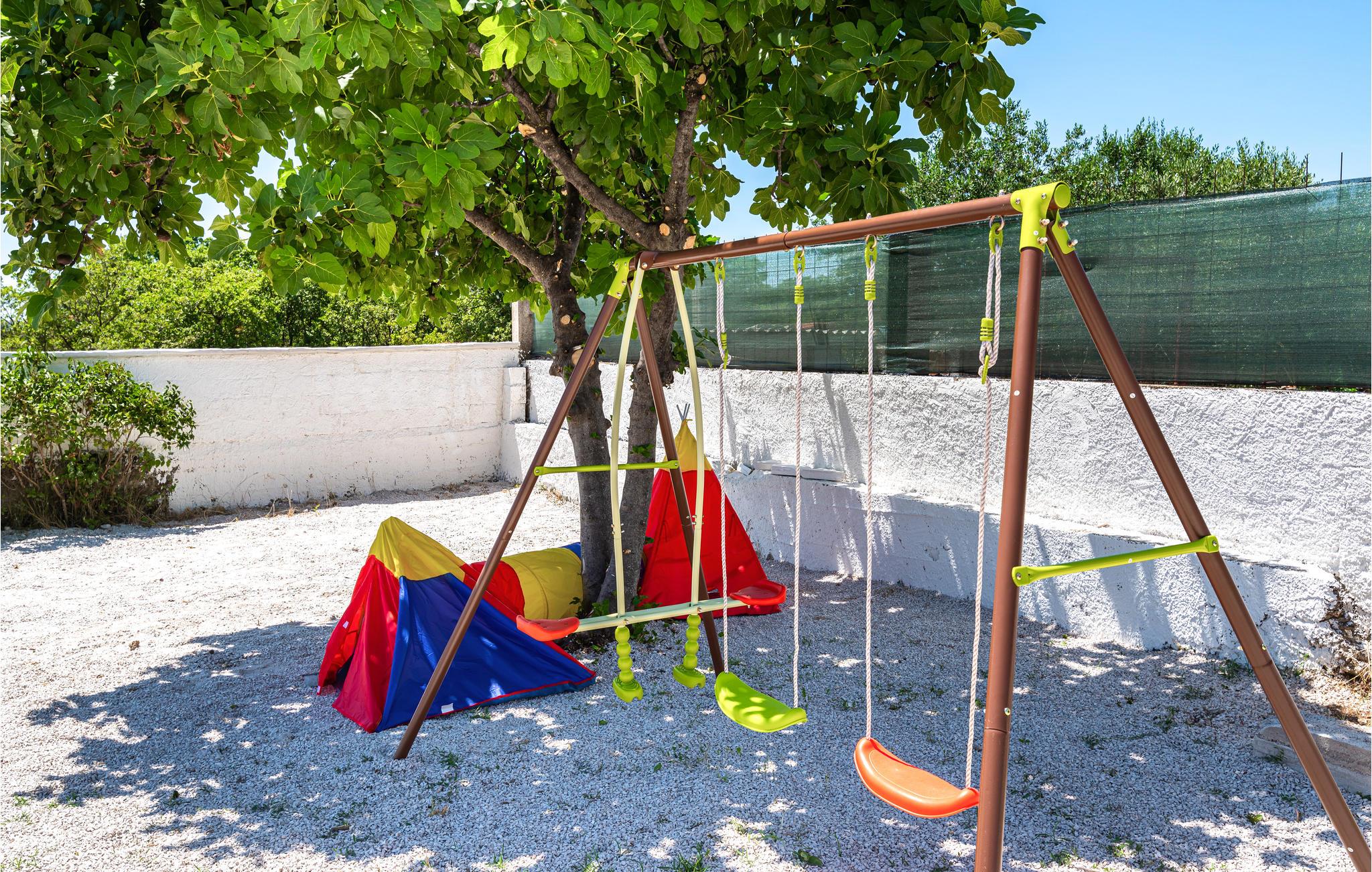 Nyd solen i husets have, hvor I kan slappe af på den overdækkede terrasse. Tilbered lækre måltider på grillen. Jeres børn finder mange legeredskaber og meget legetøj at underholde sig med.