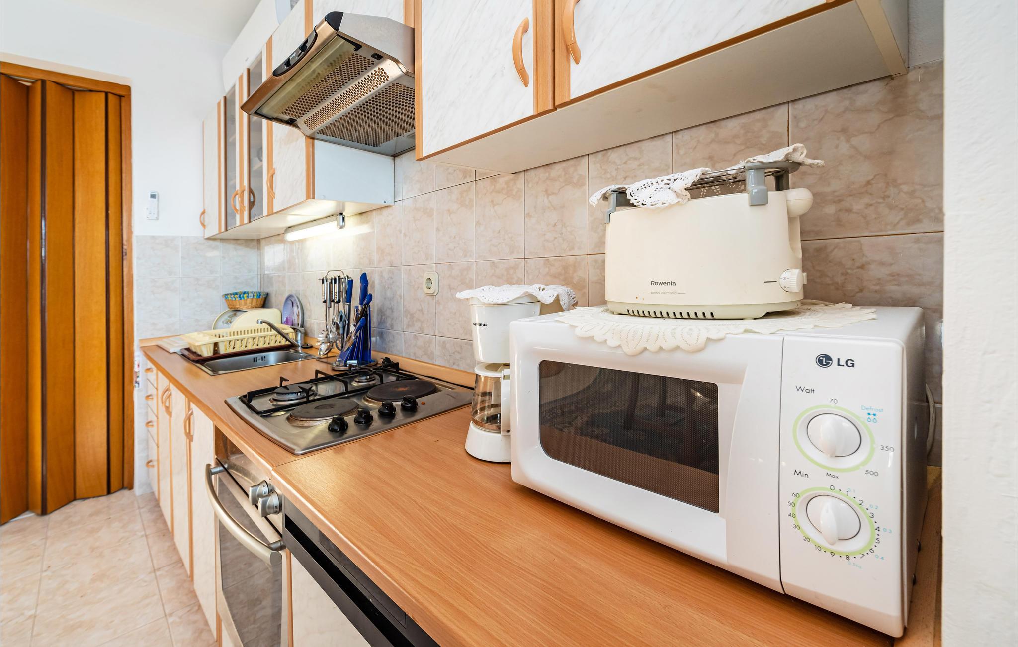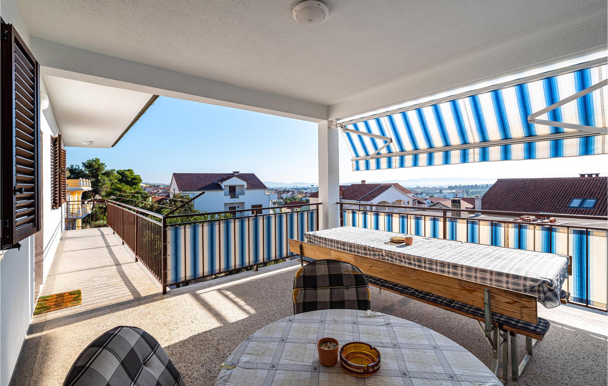 Den smukke by Zadar er det rette feriemål hvis man ønsker at kombinere smukke strande, historiske seværdigheder og et livligt bymiljø. Den dejlige lejlighed er placeret på anden sal i en privat etageejendom, og har udgang til en rummelig terrasse med udsigt. Byen er fuld af historiske seværdigheder og kan også tilbyde et stort udvalg af spisesteder. Koncerter og arrangementer er med til at gøre Zadar til et frisk pust. Byen er desuden omgivet af et smukt landskab og et kan godt betale sig at tage på udflugt i de smukke nationalparker Paklenica, Krka vandfaldene, Plitvic søerne, nordlige Velebit og Kornati øen.