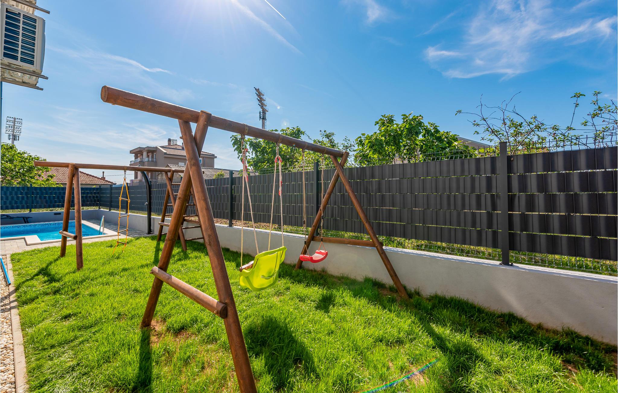 Huset er lyst og velholdt. Den fælles grund har en udendørs pool og legetøj til jeres børn samt en grill.