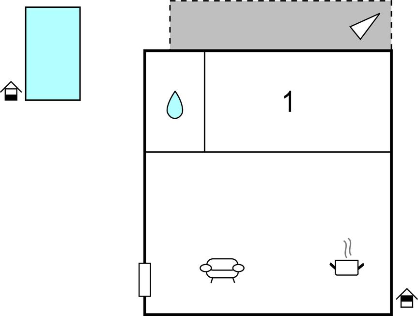 Opholdsstue/køkken 14m2 - 1 Soveplads. (Sofa, madras eller lignende).
