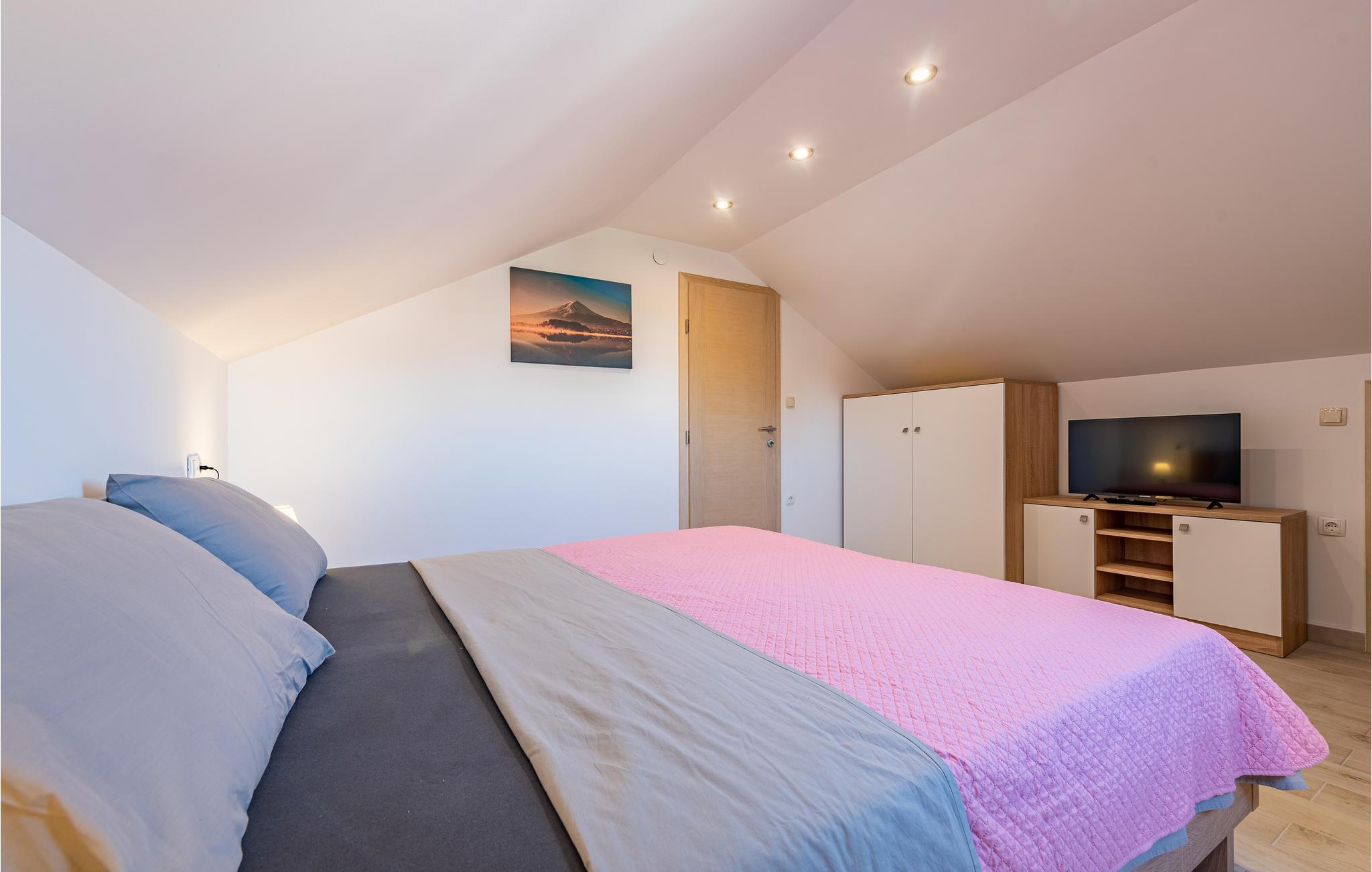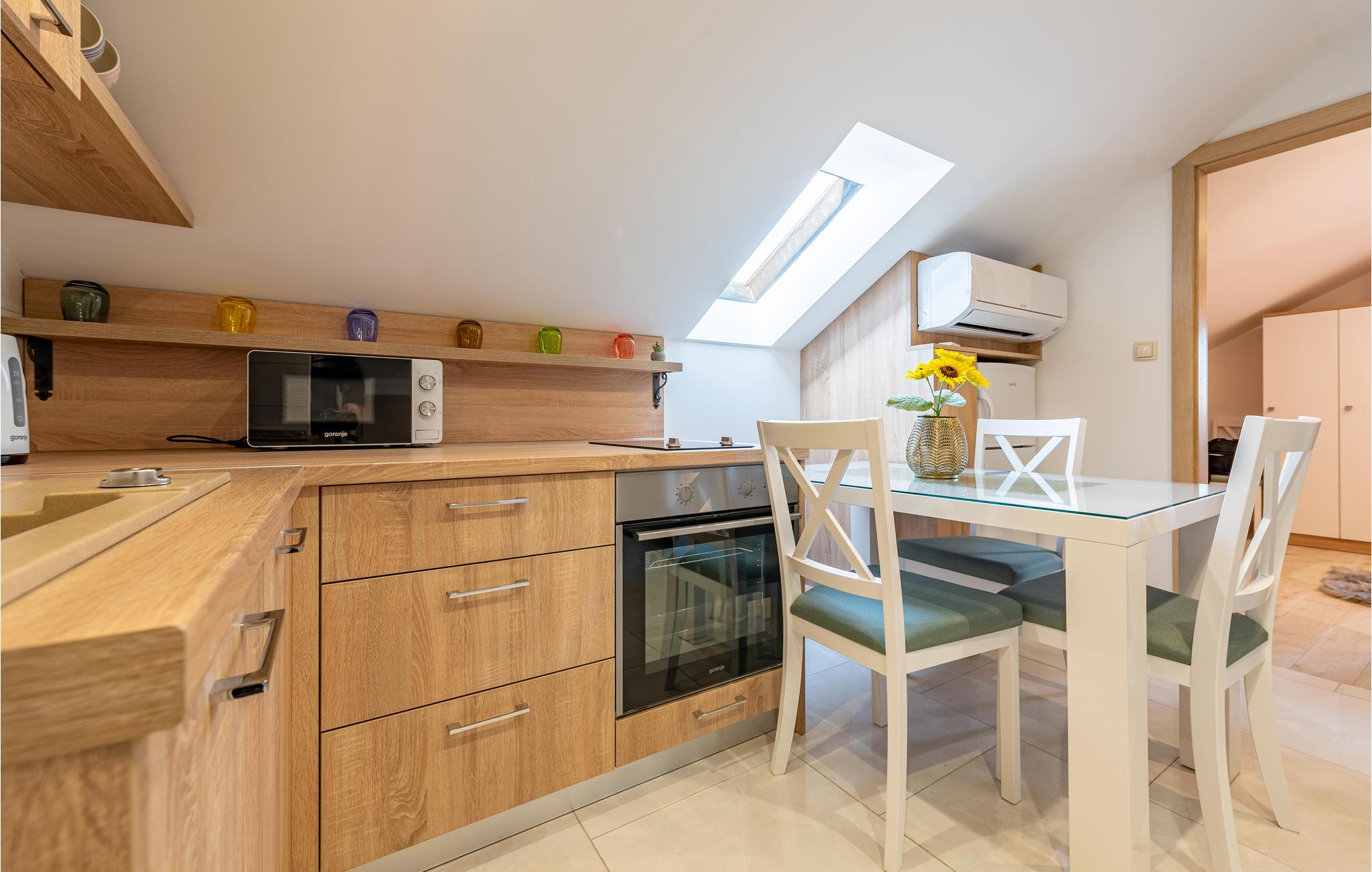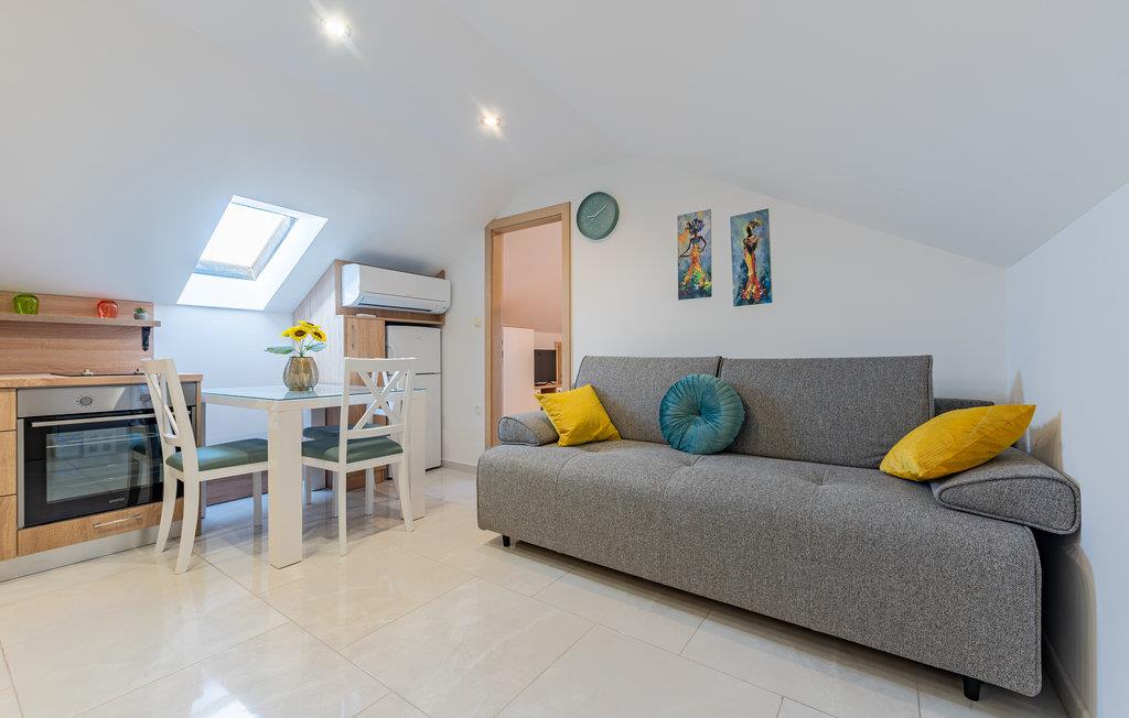 Lejligheden er hyggelig og giver jer en perfekt base til en ferie fyldt med oplevelser i Zadar. Efter en lang dag kan I sammensætte aftensmaden i tekøkkenet, før I læner jer tilbage i sofaen, lægger planer for næste dag eller ser en film sammen.