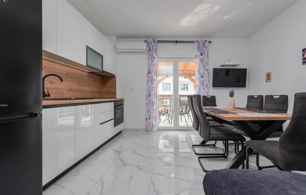 Tilbring en fantastisk ferie i den smukke bydel Borik. Feriehuset består af to lejligheder og yderligere værelser i to etager. Boligen er komfortabelt indrettet og badet i skarpt lys. Her kan I slappe af, spille brætspil og nyde dagens måltider på den overdækkede altan.