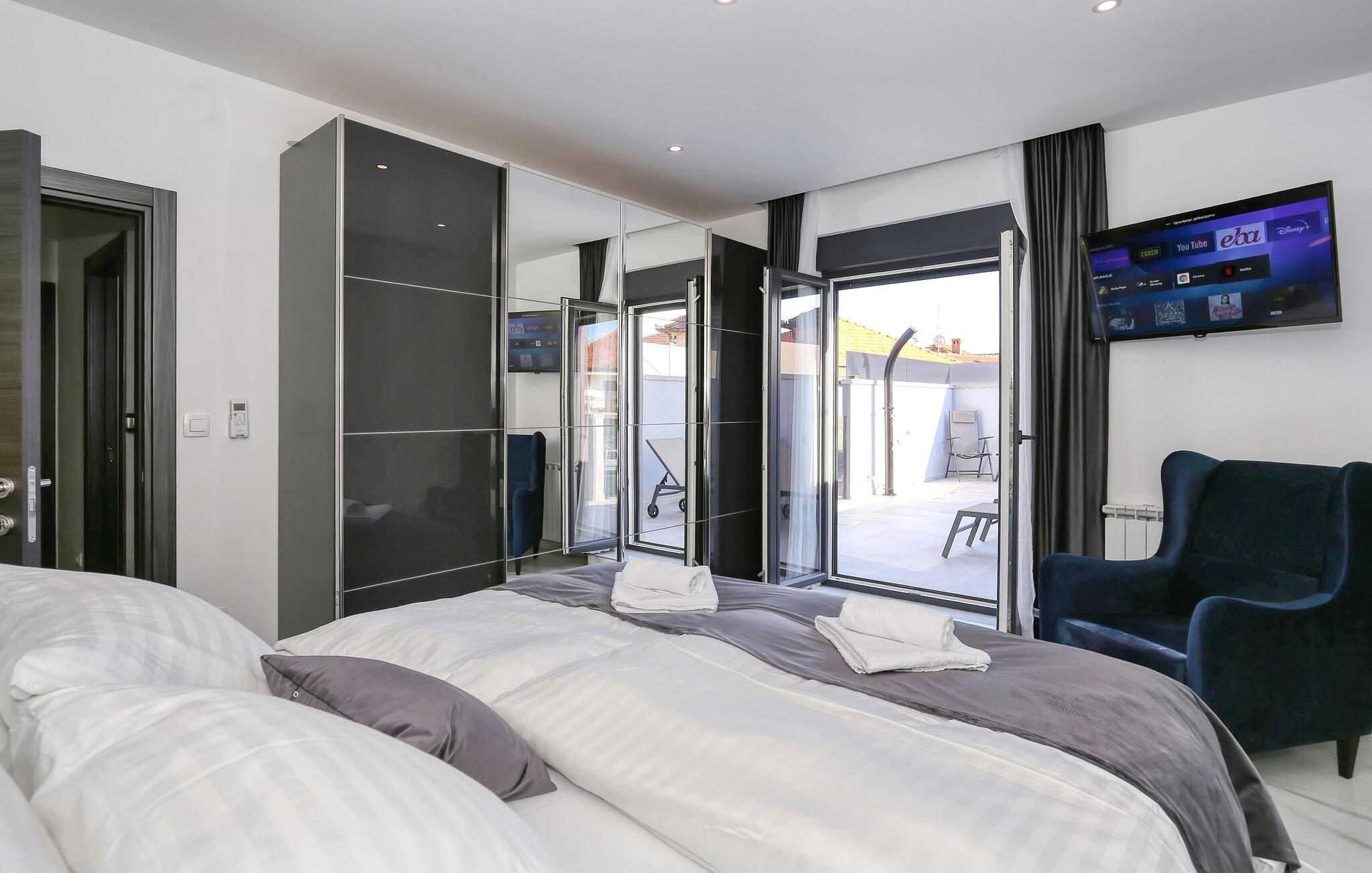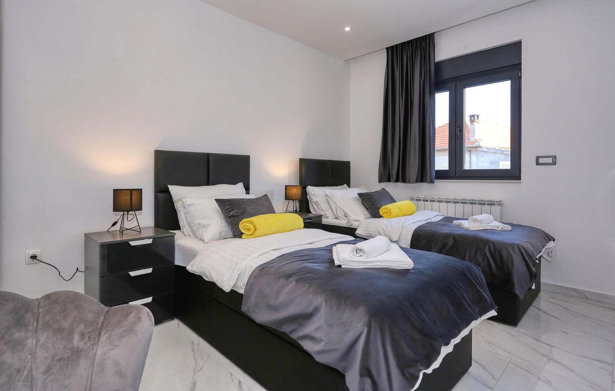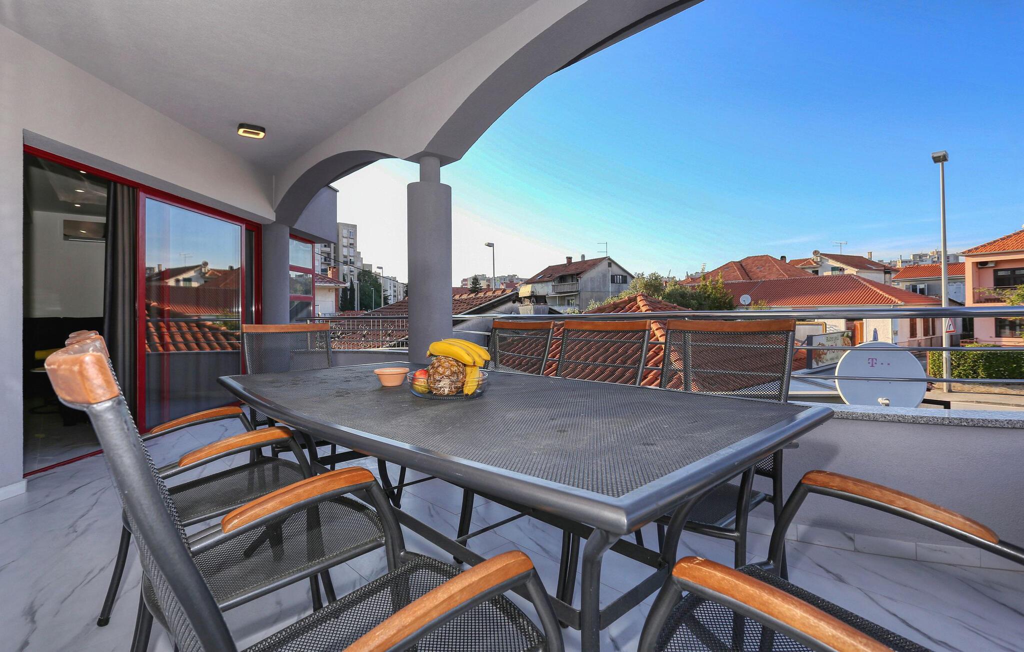 Hvis I er på udkig efter en feriebolig med en fremragende beliggenhed og et strejf af luksus, er denne lækre lejlighed i Zadar det helt rette valg for jer. Lejligheden er flot indrettet med moderne faciliteter og materialer af høj kvalitet, der giver det indre et stilsikkert udtryk og gør det nemt at slappe af med det samme, I stiller kufferterne. Glæd jer til mange hyggelige og afslappende stunder i den rummelige stue og tilbered jeres livretter i det særdeles veludstyrede køkken, mens I lægger planer for de kommende dage.
