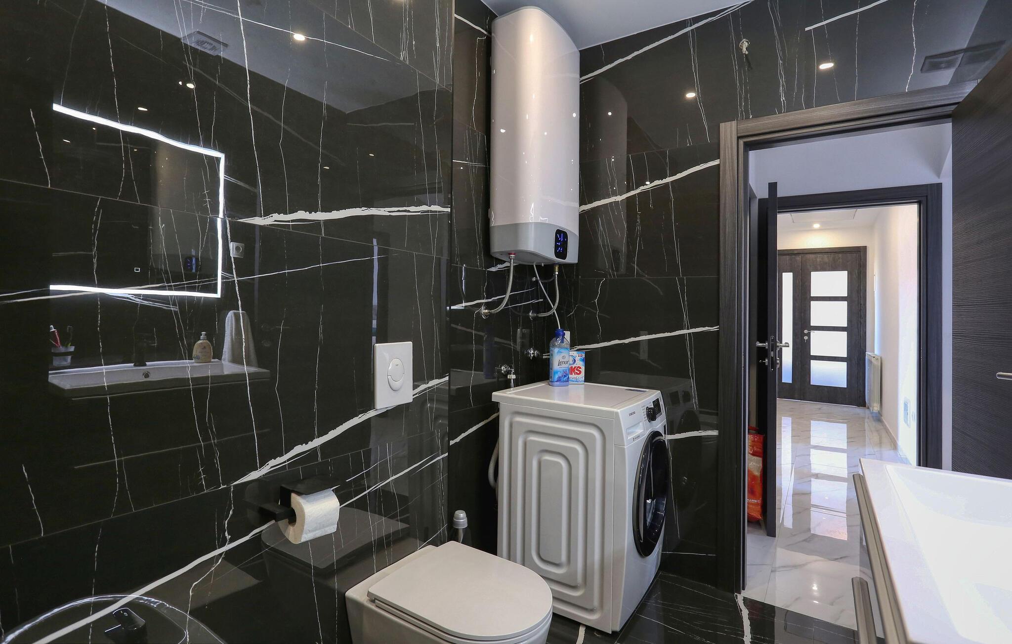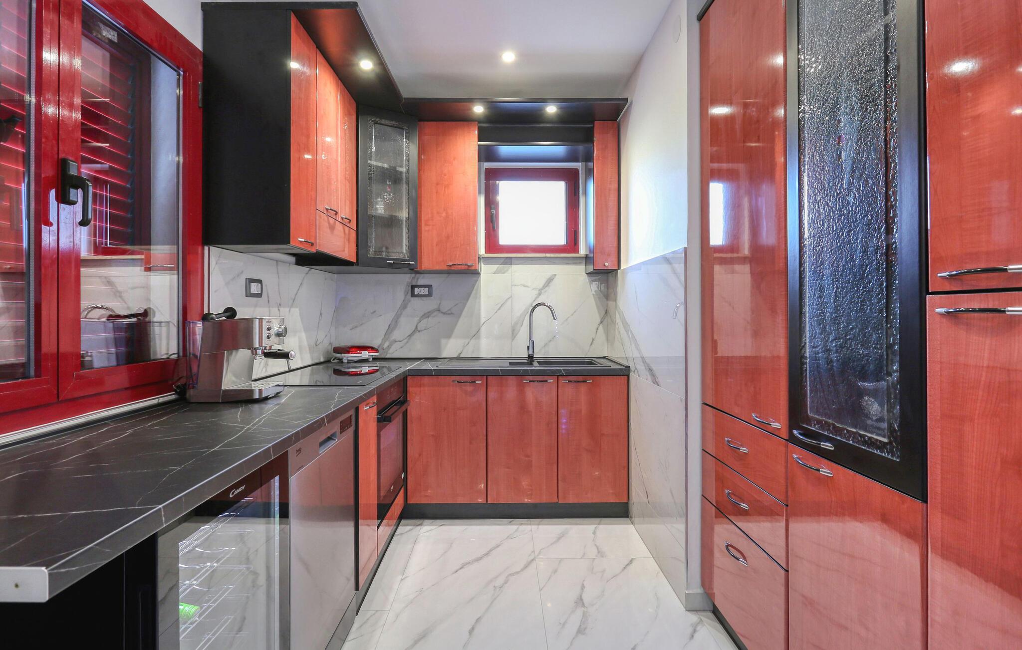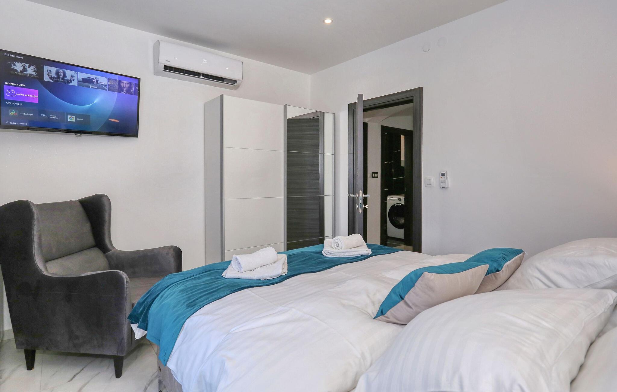 Hvis I er på udkig efter en feriebolig med en fremragende beliggenhed og et strejf af luksus, er denne lækre lejlighed i Zadar det helt rette valg for jer. Lejligheden er flot indrettet med moderne faciliteter og materialer af høj kvalitet, der giver det indre et stilsikkert udtryk og gør det nemt at slappe af med det samme, I stiller kufferterne. Glæd jer til mange hyggelige og afslappende stunder i den rummelige stue og tilbered jeres livretter i det særdeles veludstyrede køkken, mens I lægger planer for de kommende dage.