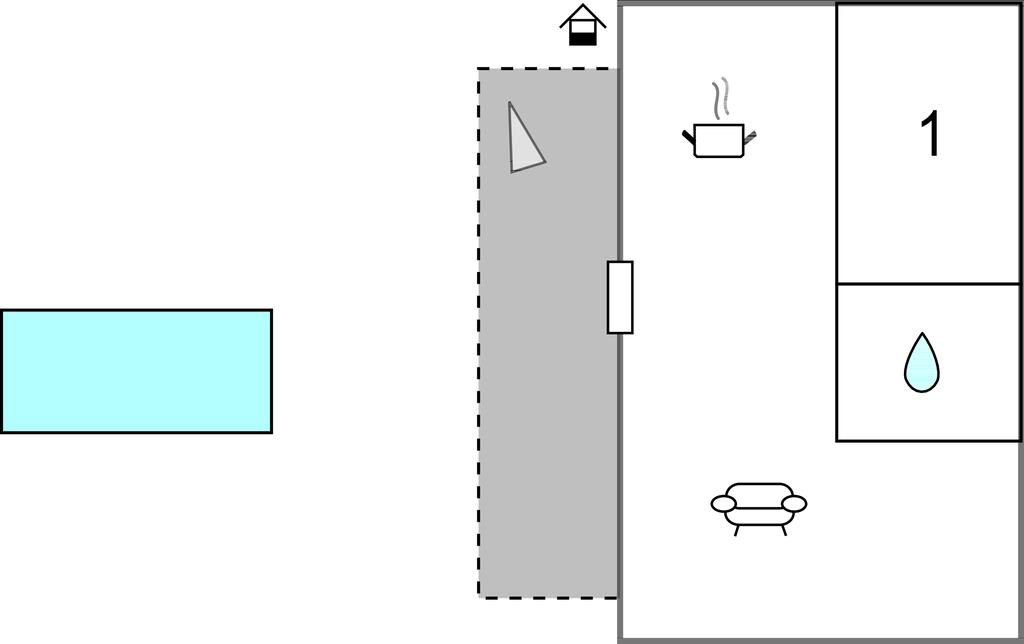 Komb. spisestue/køkken 35m2 - 2 Sovepladser. (Sofa, madras eller lignende).