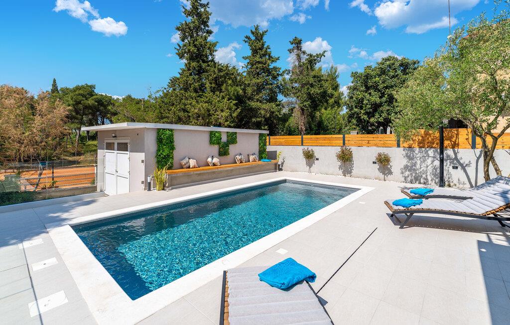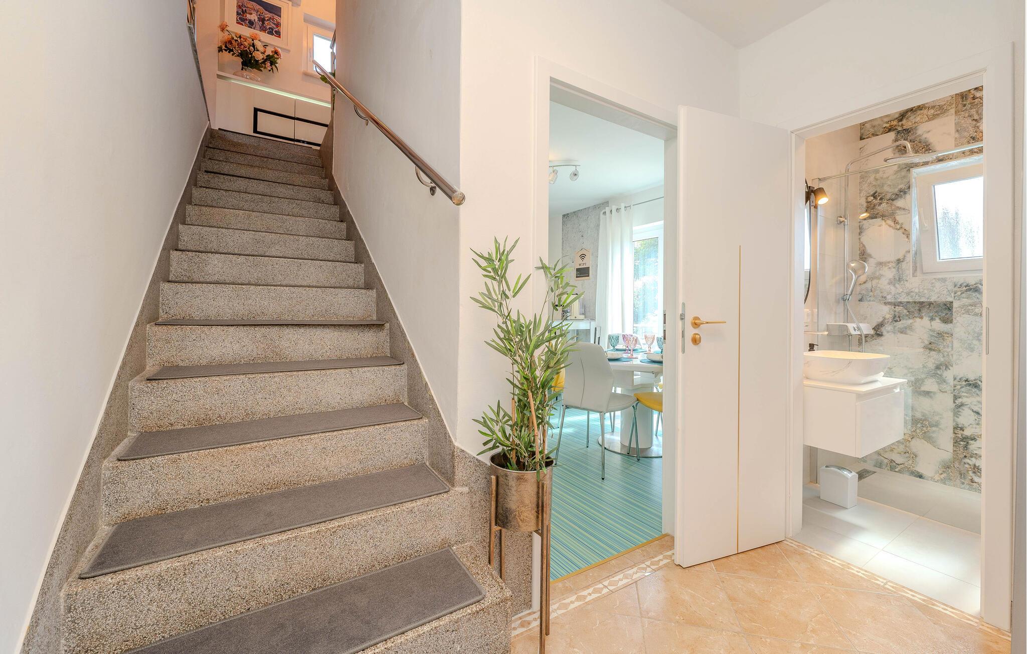 Nyd en uforglemmelig ferie i dette fantastiske dalmatiske stenhus tæt ved kysten. Feriehuset har møbler af høj kvalitet og moderne indretning, som giver komfort under jeres ophold. I det store åbne køkken kan I lave alle jeres yndlingsretter, og servere det enten ved det runde spisebord eller ude på en af terrasserne. Aktivitetsrummet har både spillekonsol, bordtennis og dart, som I kan dyste mod hinanden i.