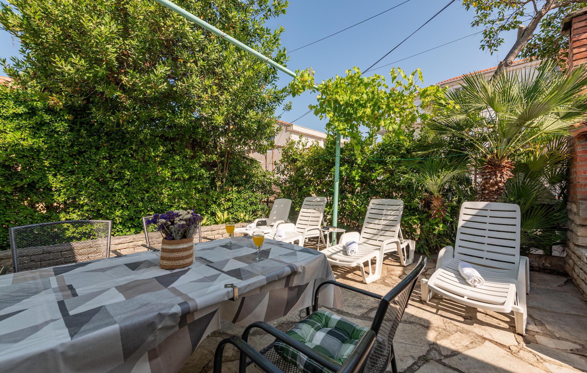 Middelhavstræer, beroligende skygge og behagelige liggestole venter jer i haven – det perfekte sted til en kølig drink og en lille pause fra hverdagen. Tilbered lækre måltider på grillen: saftige bøffer, friskfanget fisk eller farverige grøntsager. Det turkisblå Adriaterhav giver en mild brise og en ægte feriefølelse.