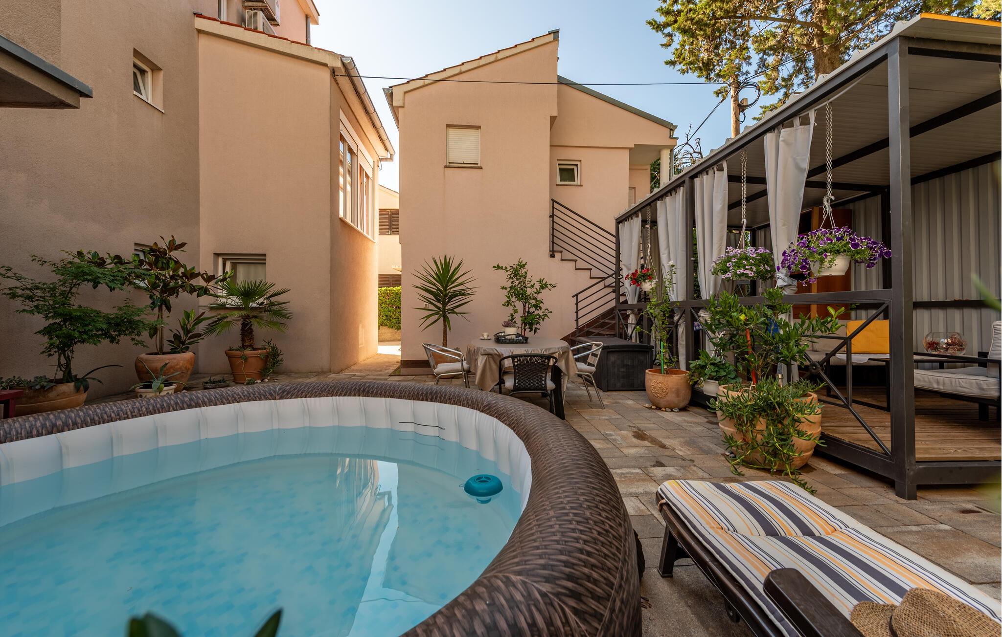 Nyd en afslappende pause i denne komfortable ferielejlighed med adgang til spabad.