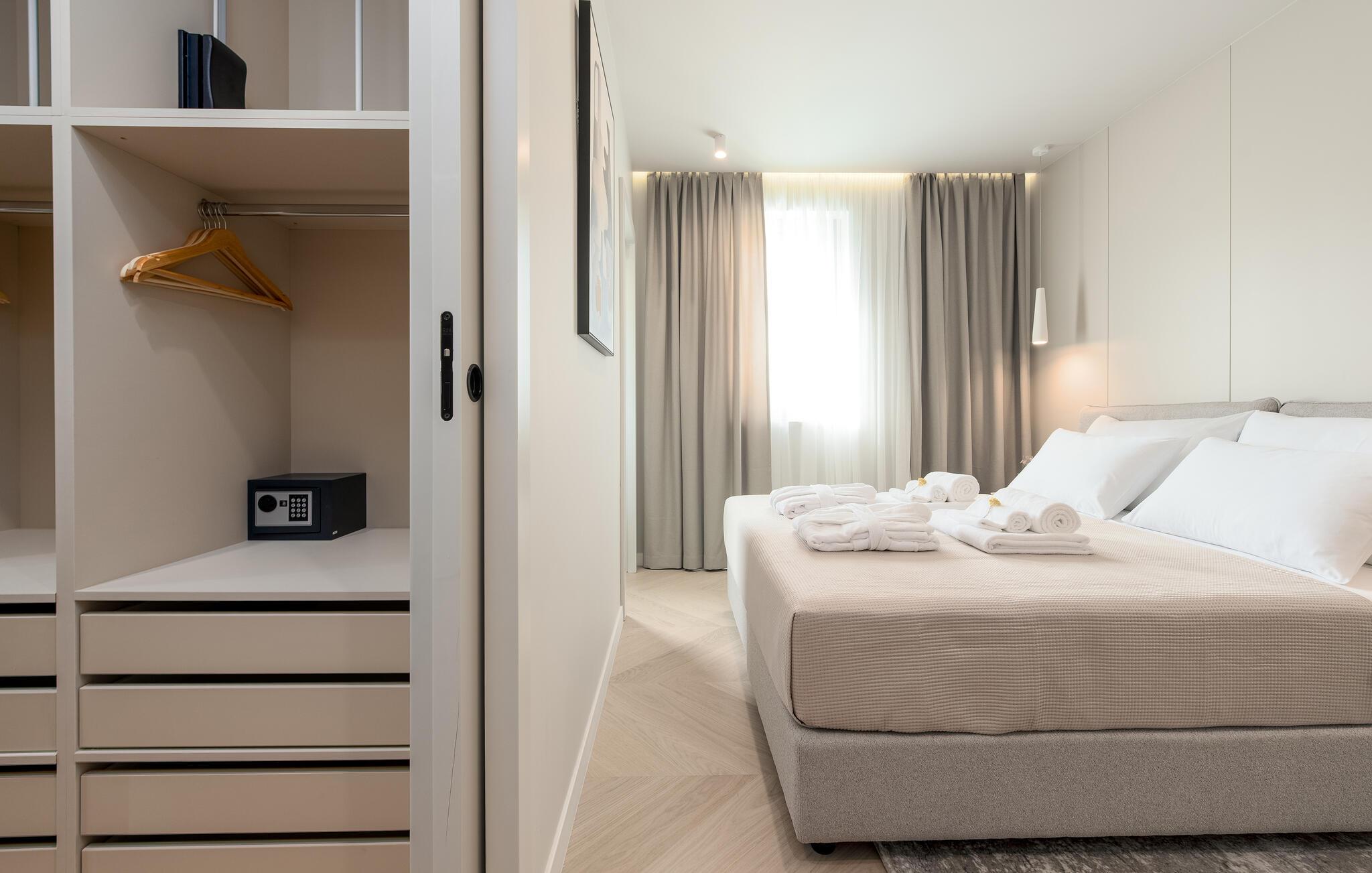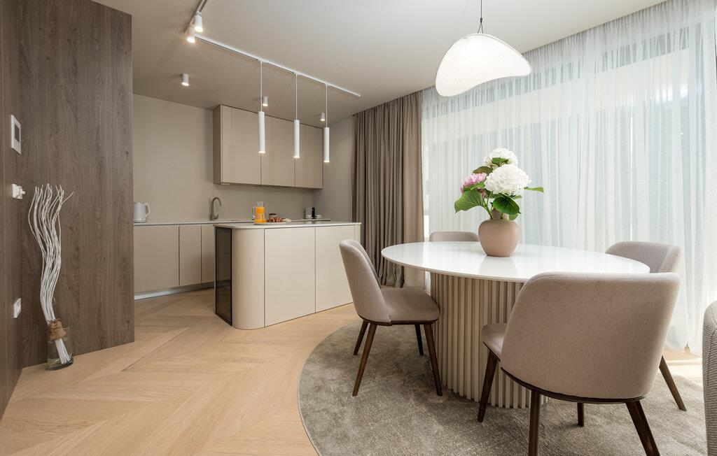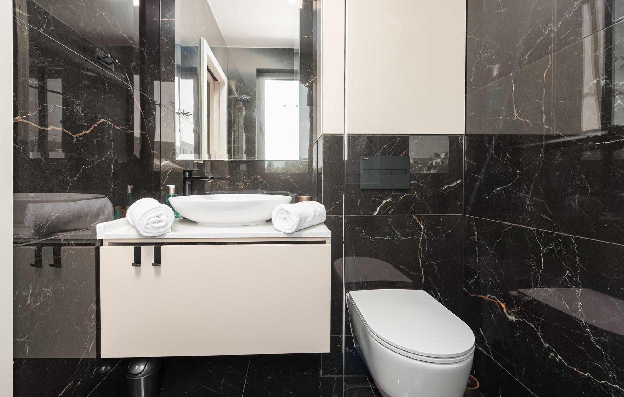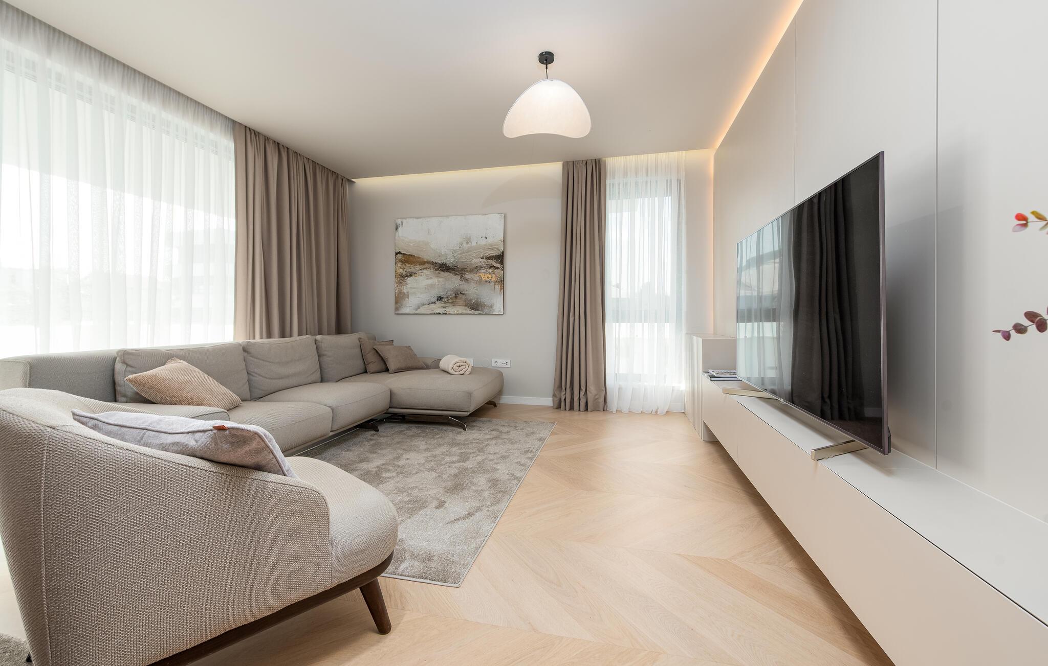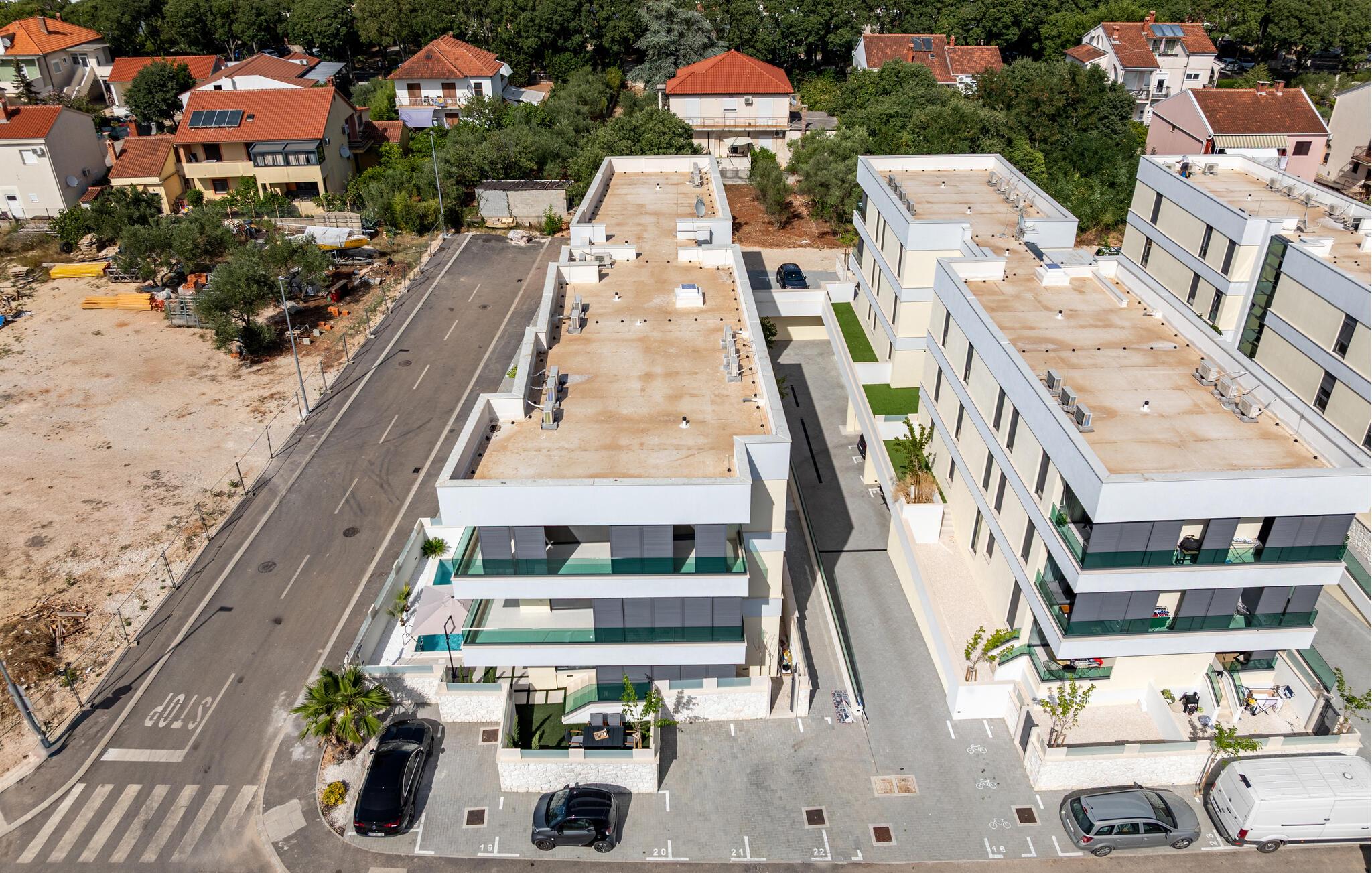 Oplev en dejlig ferie i denne komfortable ferielejlighed med pool og tæt på havet. Denne stilfuldt møblerede lejlighed garanterer en ferie af højeste kvalitet. Smagfuld indretning i afdæmpede farver, en komfortabel sofagruppe og et moderne udstyret køkken inviterer jer til at slappe af og genoplade batterierne. Hyg jer sammen med en kop kaffe, lav lækre måltider, eller tilbring en afslappende filmaften på sofaen. Forfrisk jer i poolen når som helst på dagen, og læn jer derefter tilbage på en af liggestolene med en kølig drink. Nyd blot middelhavsatmosfæren, eller planlæg jeres aktiviteter for den næste dag. Om aftenen inviterer terrassen jer til at afslutte aftenen i fred med en grillfest. Gå en afslappet tur til sandstranden, hvor I kan svømme eller bare nyde solen. Tag en tur til den nærliggende by Zadar, og oplev dens imponerende gamle bydel med romerske og venetianske spor. Om aftenen kan I nyde det unikke skue af Havorglet og "Hilsen til Solen" direkte på havnepromenaden. Udforsk Kožinos charmerende omgivelser med dens idylliske kyststier og maleriske udsigter.