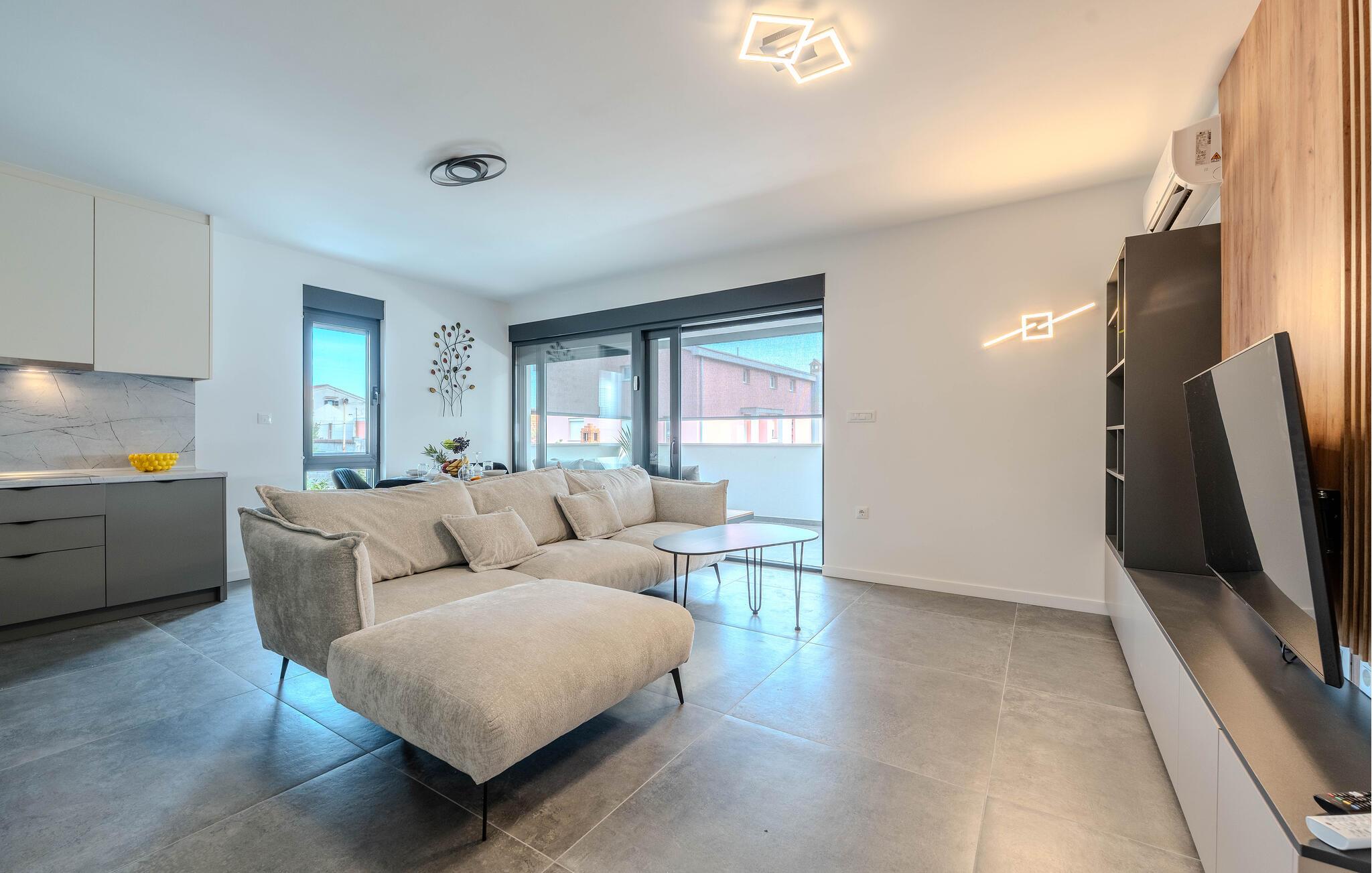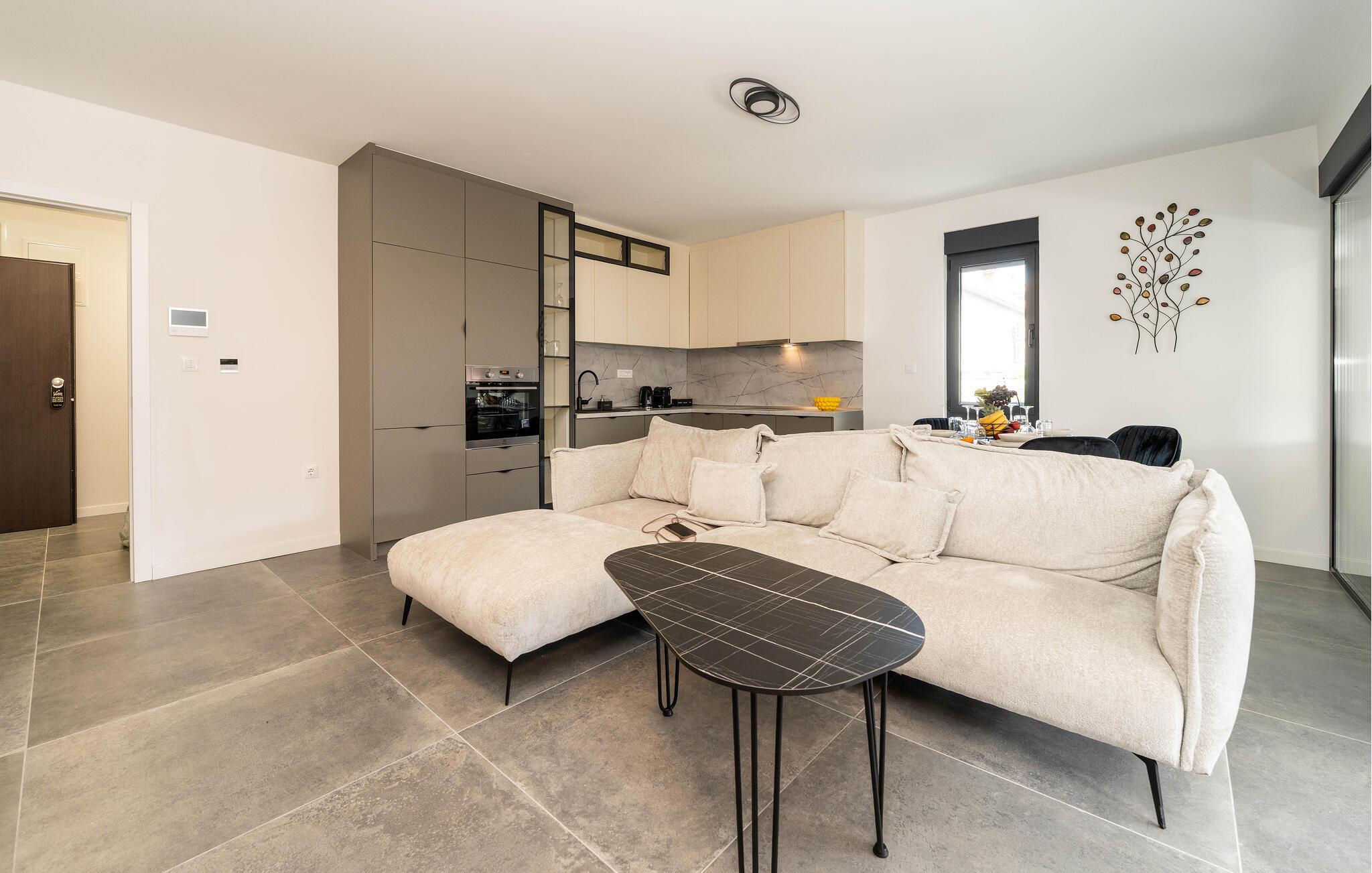 Denne lejlighed er noget særligts harmoniske blanding af modernitet og hygge. De store vinduer, varme træelementer og diskrete farver skaber en atmosfære, hvor I hurtigt vil føle jer hjemme. Uanset om I streamer en god serie, nyder en sjov spilleaften eller prøver nye opskrifter i det moderne køkken, sætter I selv tempoet for jeres dag her.