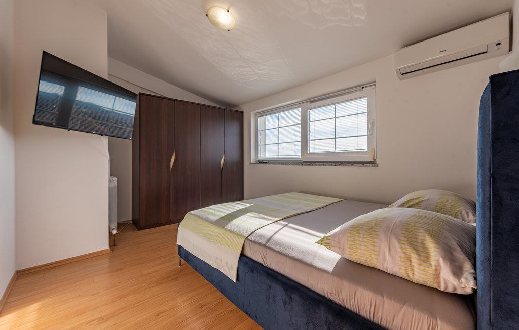 Disse enkelt og funktionelt indrettede ferielejligheder ligger på anden sal i en ejendom, med fælles trappeopgang. Byen Zadar ligger kun 4 km væk. Besøg den spændende by med talrige kulturelle arrangementer gennem hele sommeren, med mange gode restauranter hvor I kan smage lokal mad og ikke mindst den gode regionale vin. Hør musikken fra den usædvanlige havorgel og spadser over 'Hilsen til solen'.