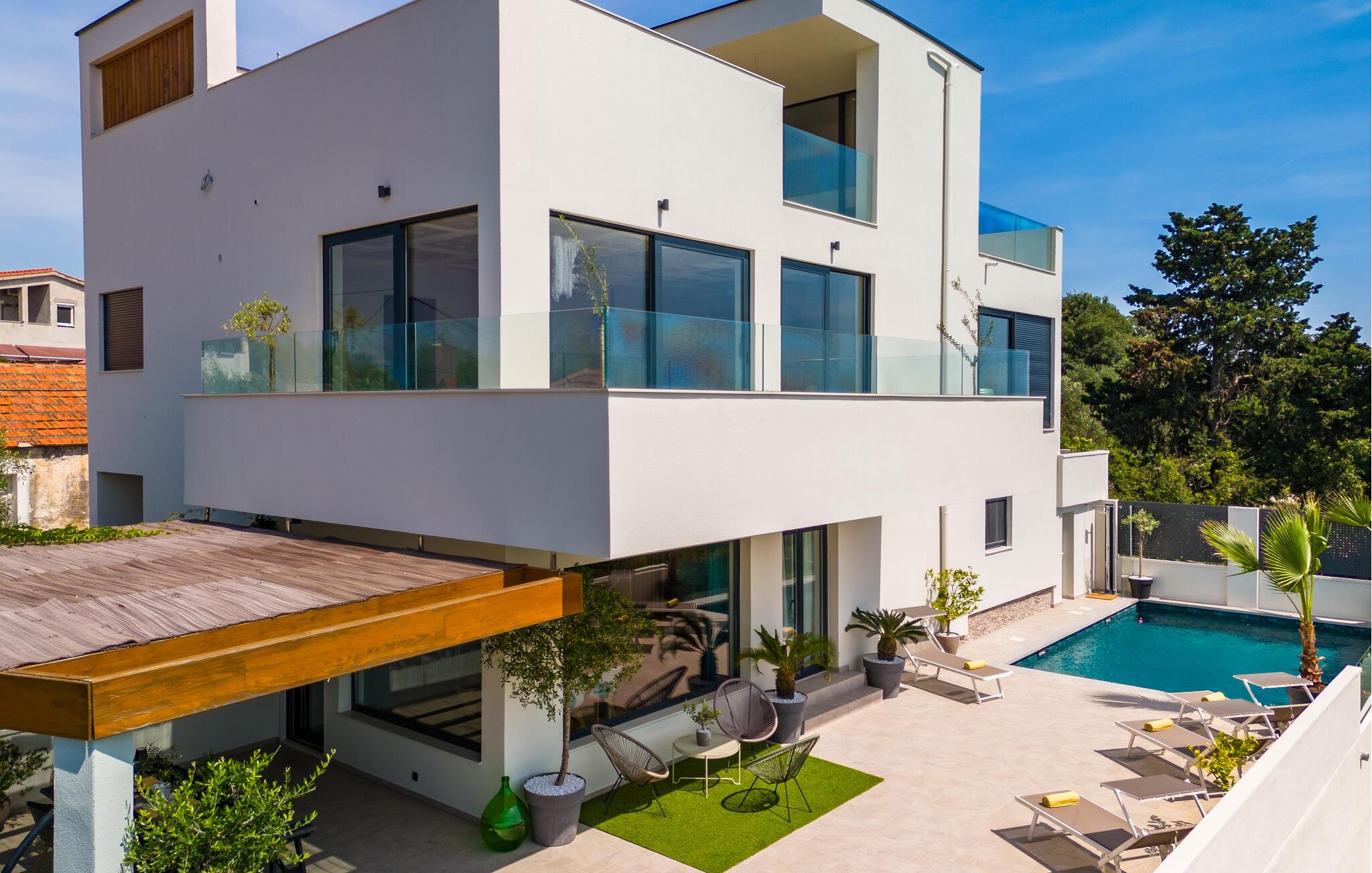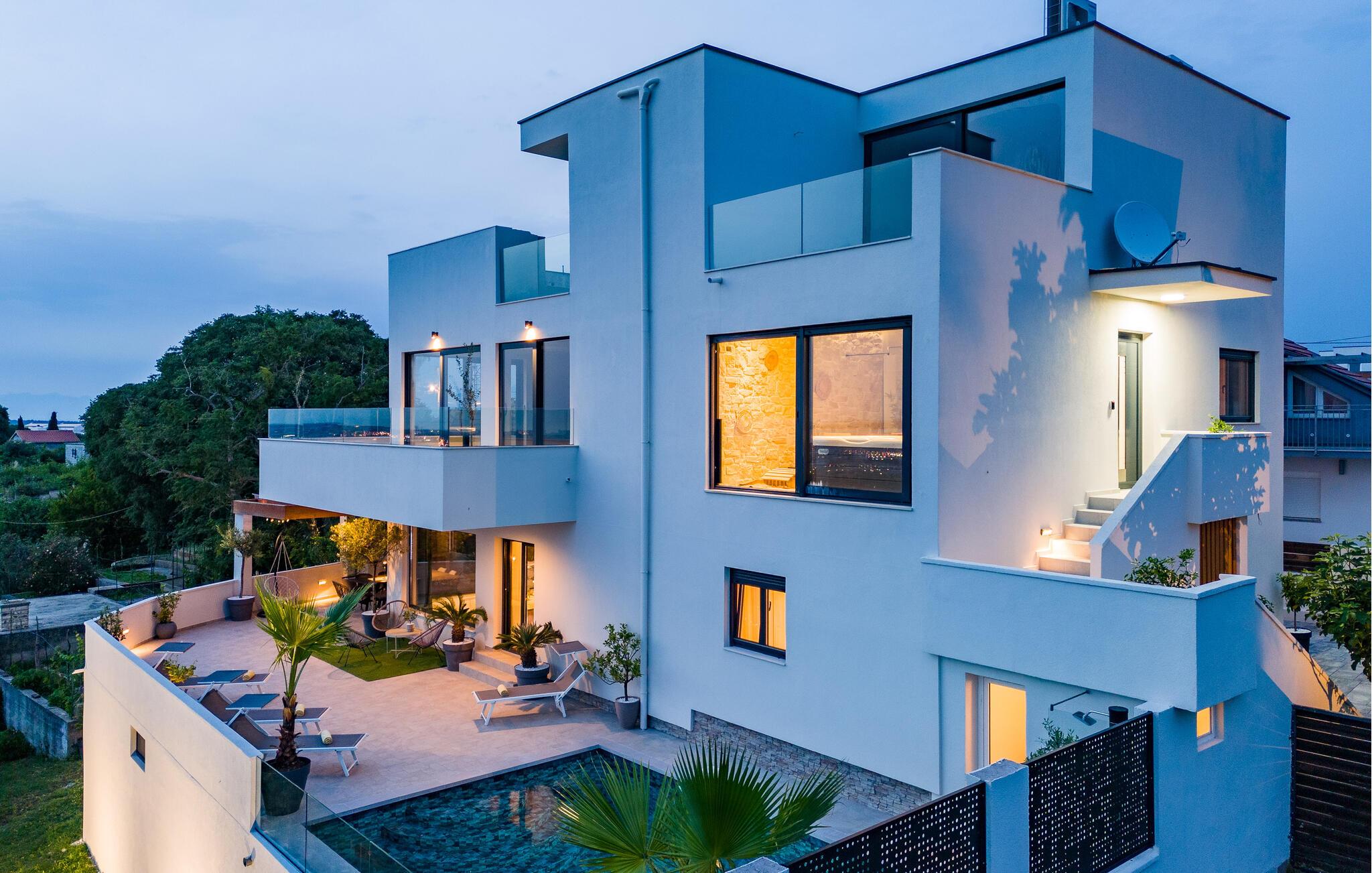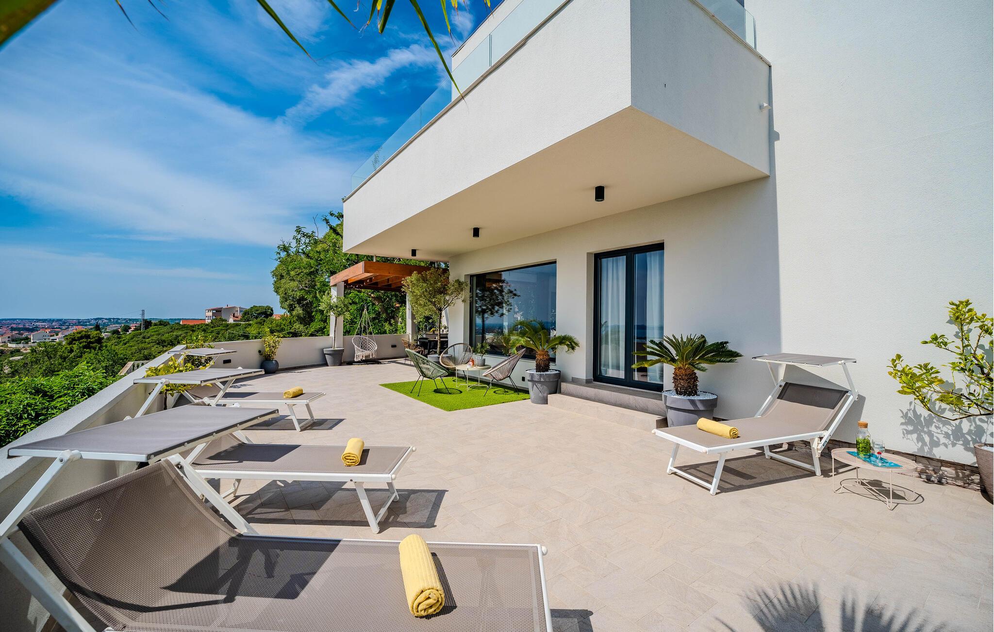 Moderne, komfortabelt og meget veludstyret feriehus med en betagende panoramaudsigt over havet og Zadar-skærgården.