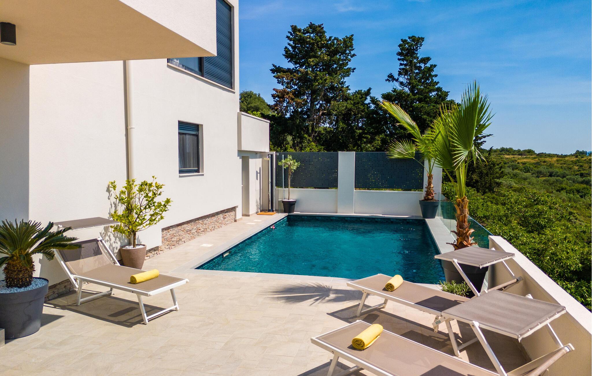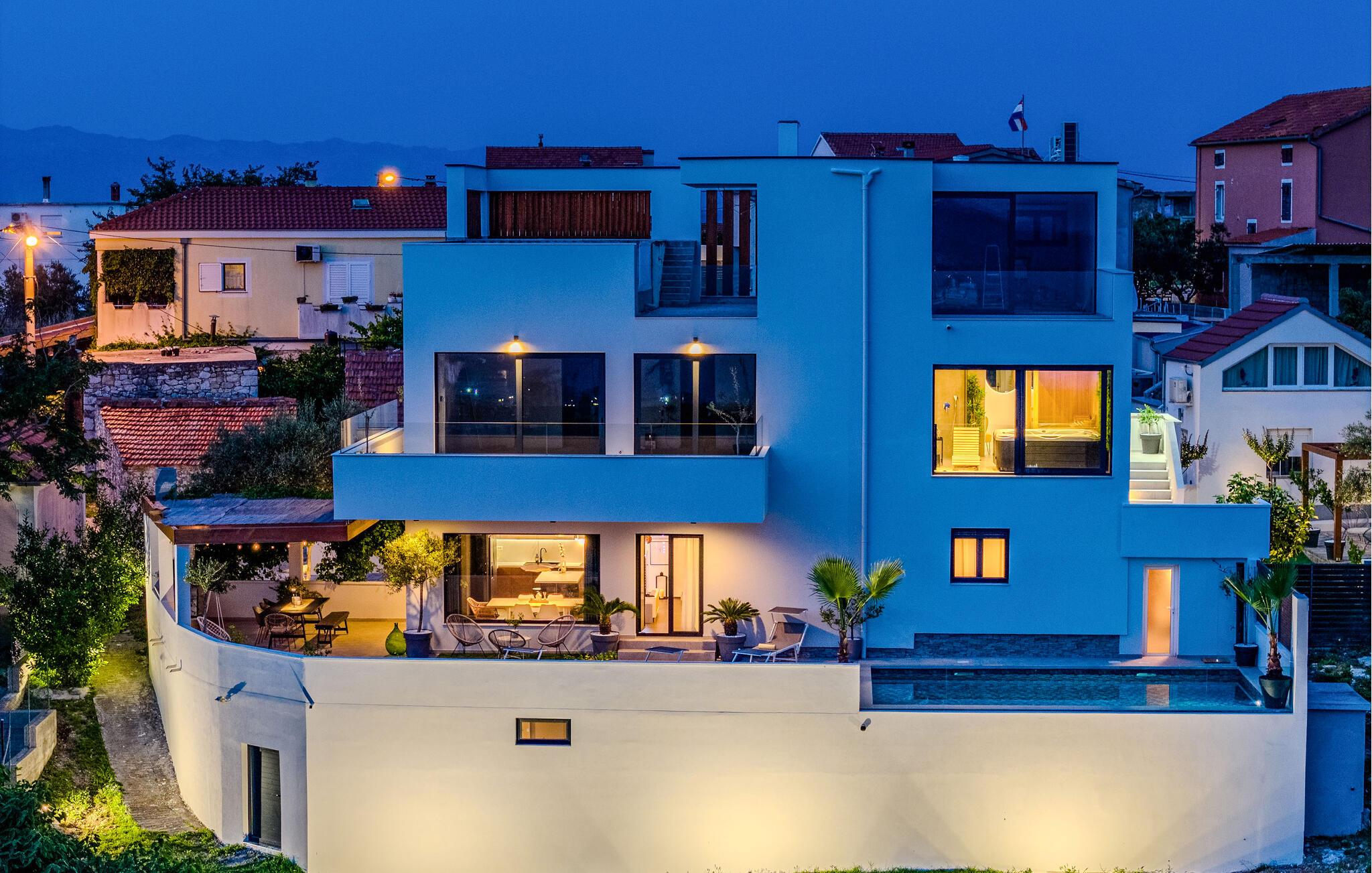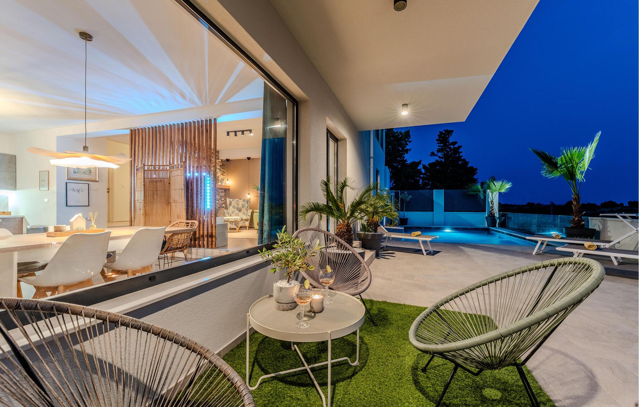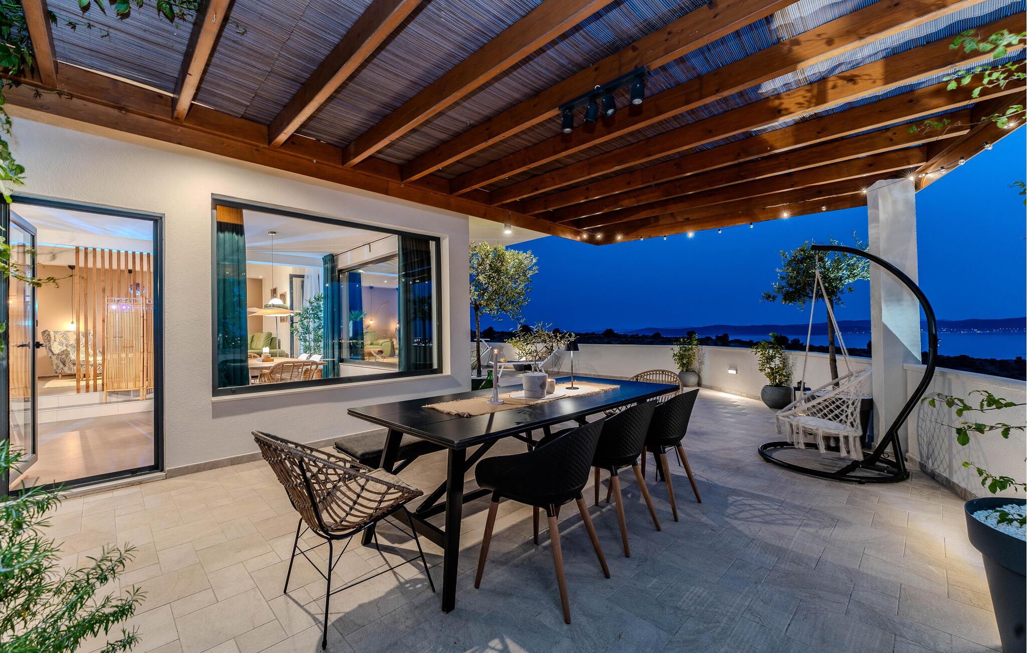 Moderne, komfortabelt og meget veludstyret feriehus med en betagende panoramaudsigt over havet og Zadar-skærgården.