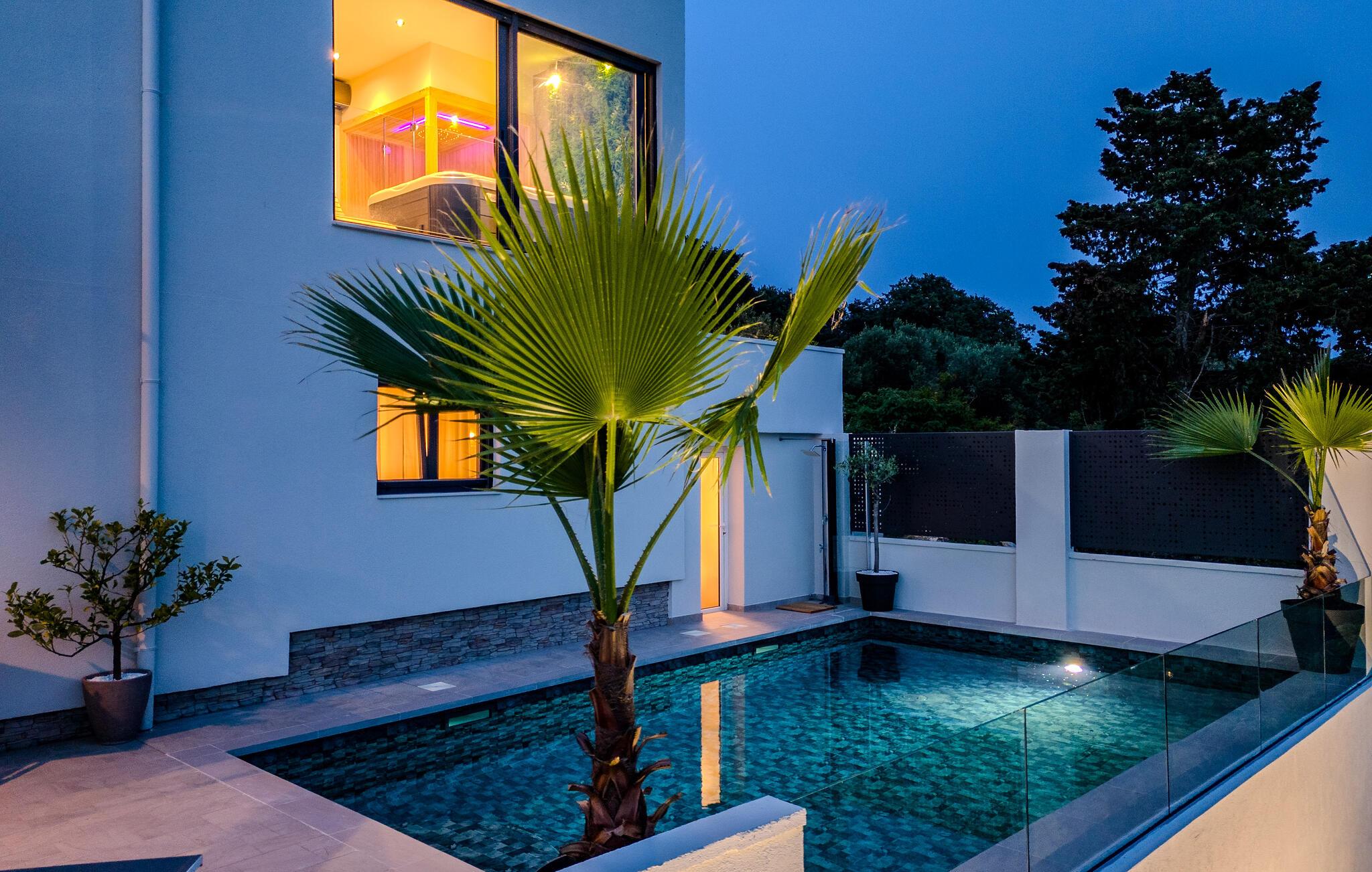 I denne atmosfære kan du slappe af ved poolen og læse en god bog langt, langt væk fra hverdagens stress og jag. Om aftenen kan du tilberede lækre grillretter til familien.