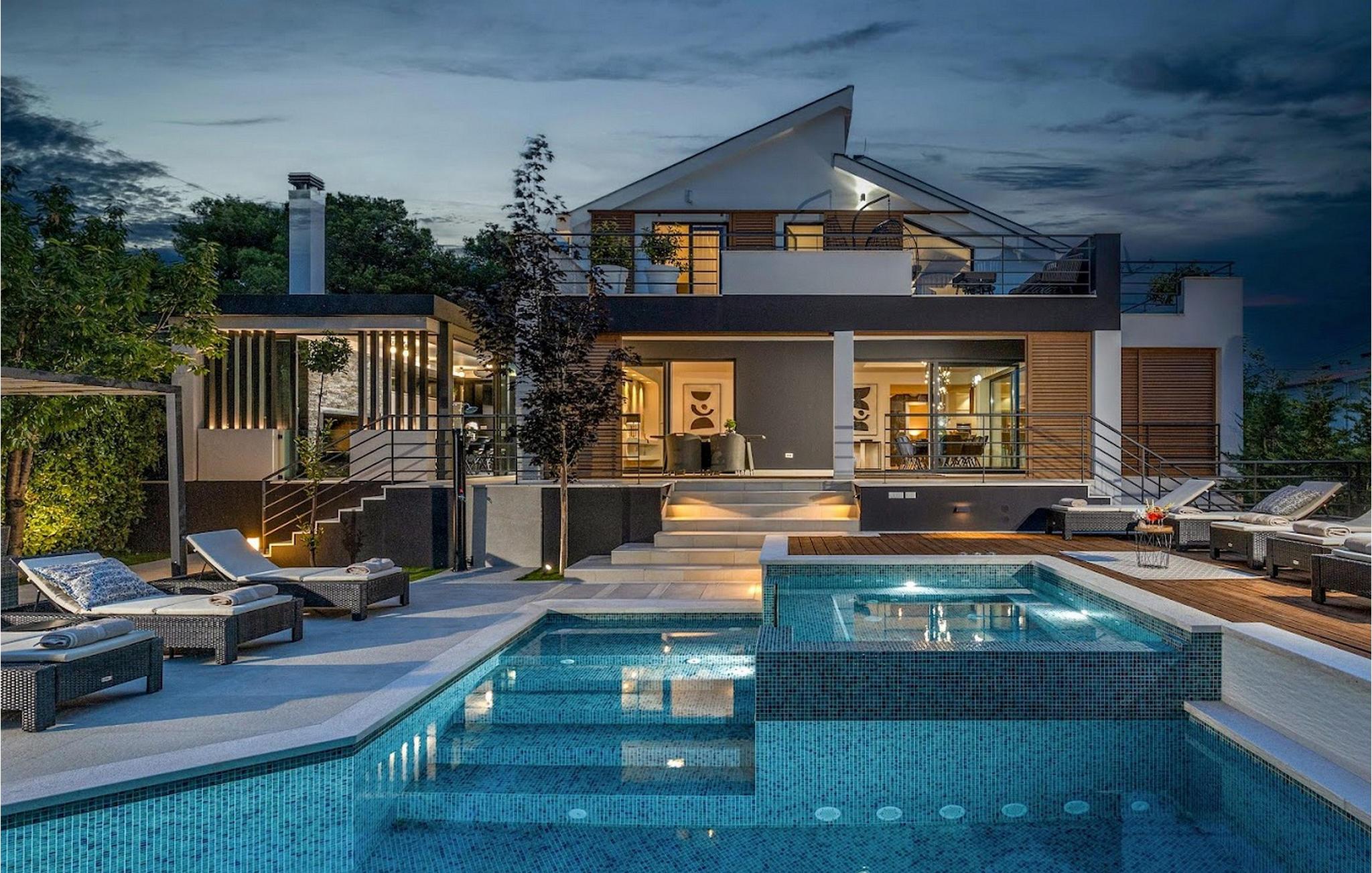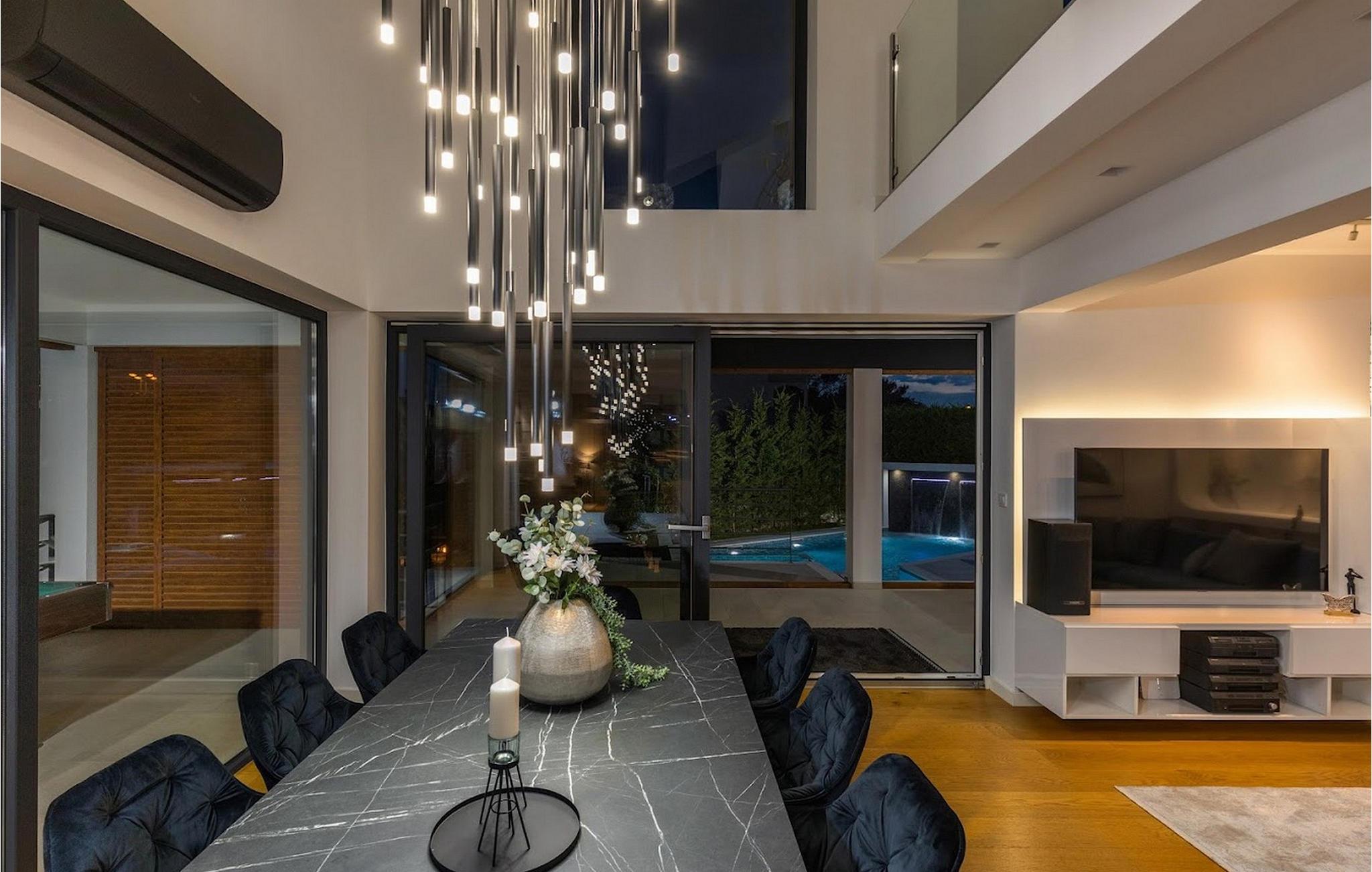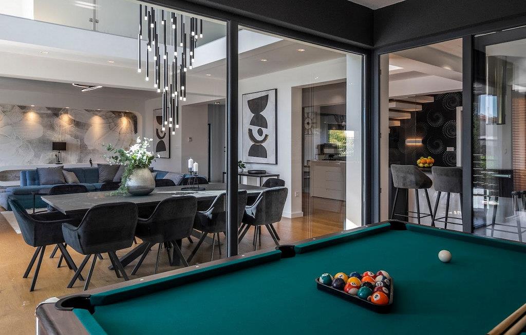 Villa Bonavia byder jer velkommen til en elegant atmosfære, hvor fine materialer, rene linjer og kunstneriske detaljer skaber et eksklusivt opholdsrum. Nyd afslappende timer i den rummelige opholdsstue, og lad blikket vandre gennem de store vinduer til de frodige omgivelser. Lav mad sammen i det stilfulde køkken, og prøv nye opskrifter. Spil et spil billard, og skål bagefter for vinderen med et glas vin.