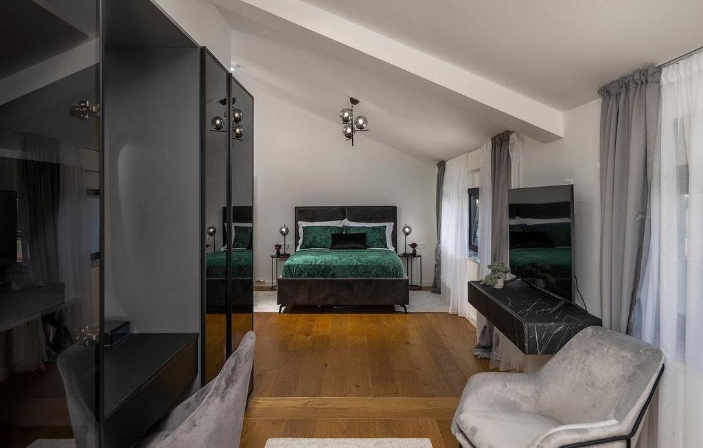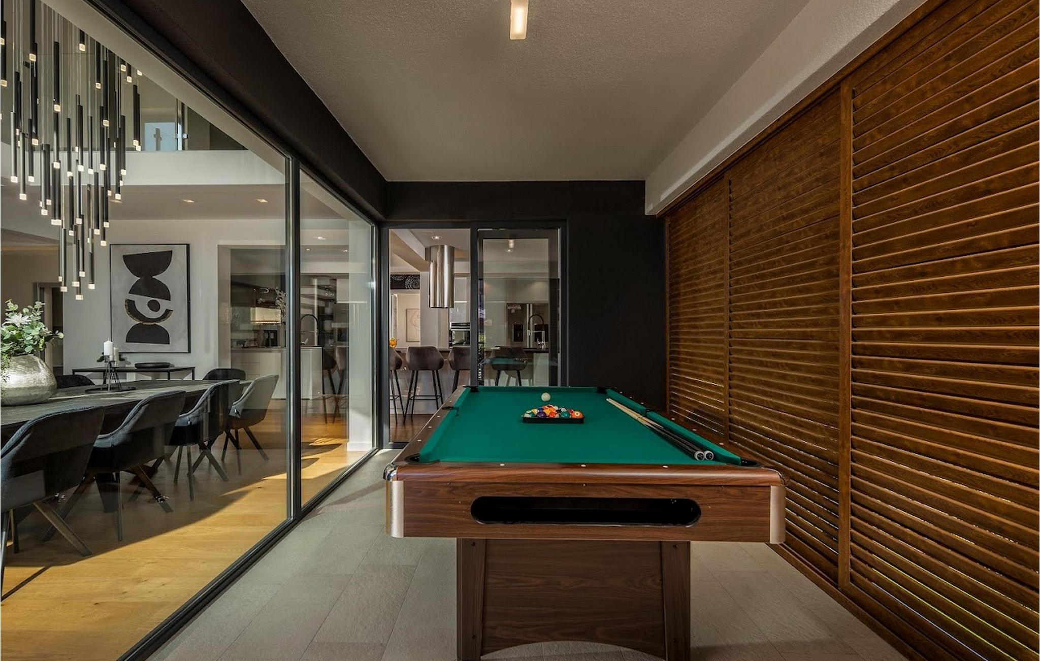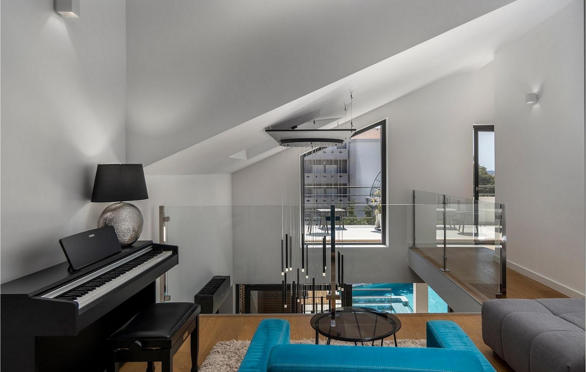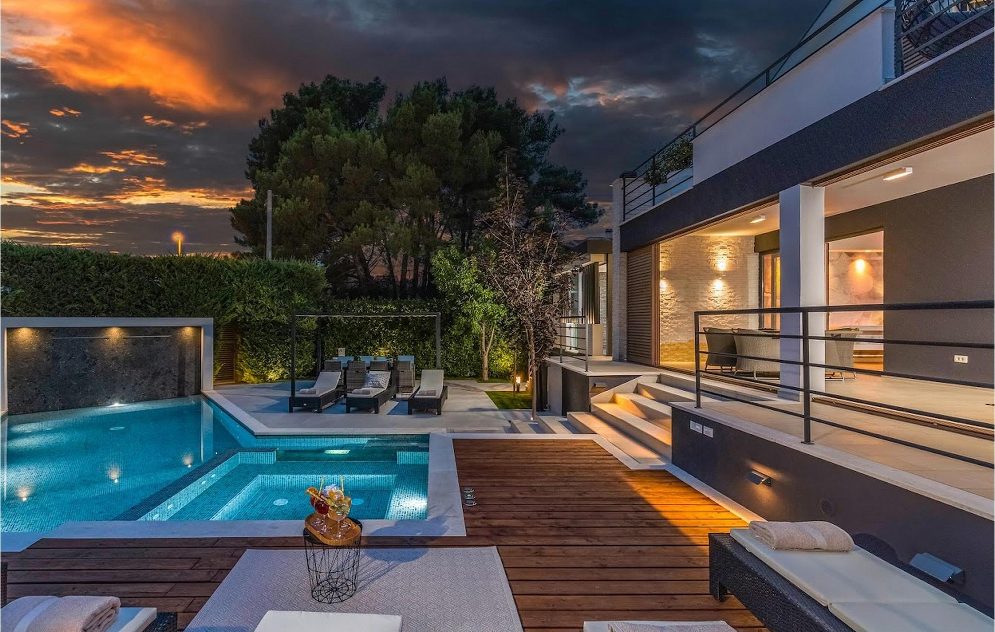 Villa Bonavia byder jer velkommen til en elegant atmosfære, hvor fine materialer, rene linjer og kunstneriske detaljer skaber et eksklusivt opholdsrum. Nyd afslappende timer i den rummelige opholdsstue, og lad blikket vandre gennem de store vinduer til de frodige omgivelser. Lav mad sammen i det stilfulde køkken, og prøv nye opskrifter. Spil et spil billard, og skål bagefter for vinderen med et glas vin.