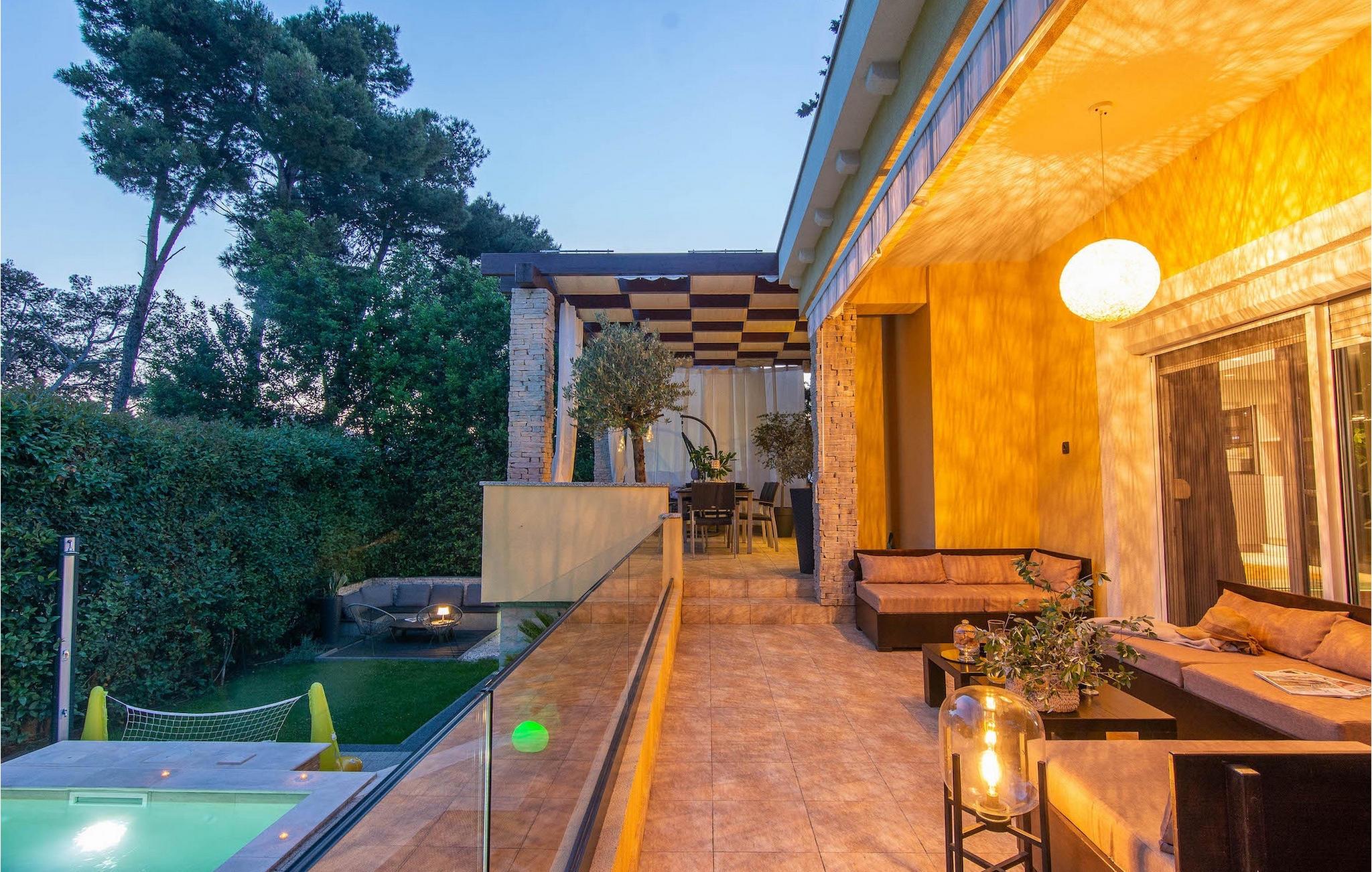 Smukke Villa Luna ligger i den storslåede by Zadar. Det tilbyder en ideel ferie for venner eller familier, der ønsker at tilbringe den på den dalmatiske kyst tæt på stranden og nyde det smukke blå Adriaterhav. Villa Luna har plads til 6 gæster. I dets stilfuldt indrettede moderne interiør er 3 soveværelser, 2 badeværelser, stue og fuldt udstyret køkken med spiseplads til din rådighed. Udendørsområdet omfatter en fuldstændig lukket grøn have med en swimmingpool, hvor du kan slappe af og nyde solen i fuldstændig fred. På terrassen er en udendørs spiseplads med en kulgrill og en lounge til din rådighed. Villaen har aircondition, Wi-Fi, privat parkering til 3 biler og giver alt til en fornøjelig ferie. Smukke Villa Luna ligger i den storslåede by Zadar. Zadar er en gammel by med historisk og kulturel arv, der er værd at se. Den berømte Alfred Hitchcock sagde, at Zadar har den smukkeste solnedgang i verden - gå ikke glip af det! Den gamle bydel byder på monumenter fra oldtiden, middelalderen og renæssancen: Romerpladsen (1. århundrede), kirken St. Donat (9. århundrede), kirken St. Marija (11. århundrede, genopbygget i det 16. århundrede), katedralen i St. Stošija (12.-13. århundrede), dele af forsvarsmuren. I dag er det berømt for symfoni af Havorgelet og lysinstallationen "Pozdrav Suncu" (Hilsen solen). Alt er tæt på - strand, historisk arkitektur, restauranter med middelhavskøkken, nationalparker og naturparker (Krka-vandfaldene, Kornati-øerne, Plitvice-søerne, Telašcica, Paklenica...). Hvis du leder efter mere sjov fra solnedgang til solopgang er der strandklubber, kaffebarer og efter midnat kan du nyde den behagelige atmosfære i natbarer og klubber. Under dit ophold i Zadar glem ikke at smage den søde Maraschino kirsebærlikør!