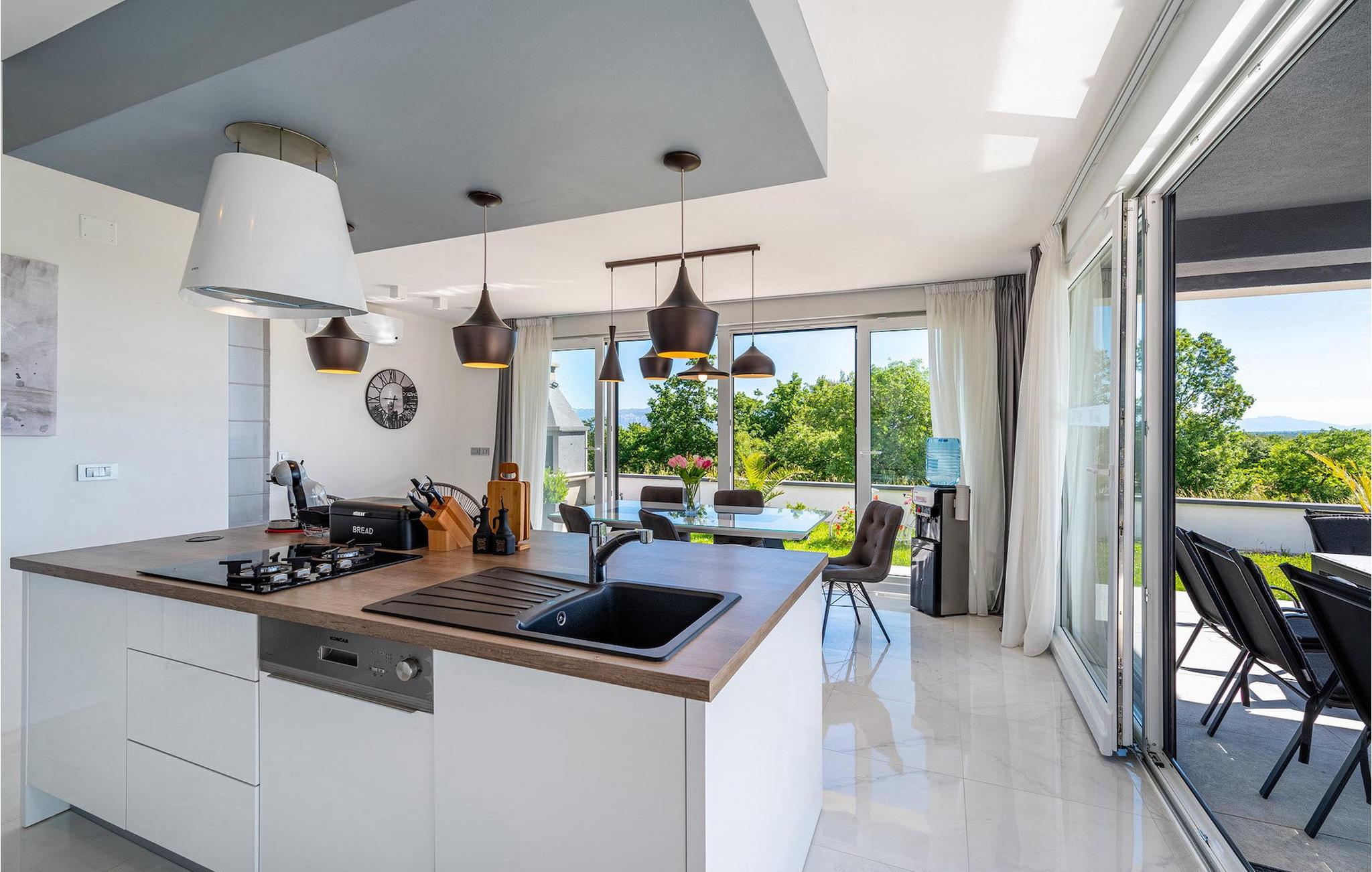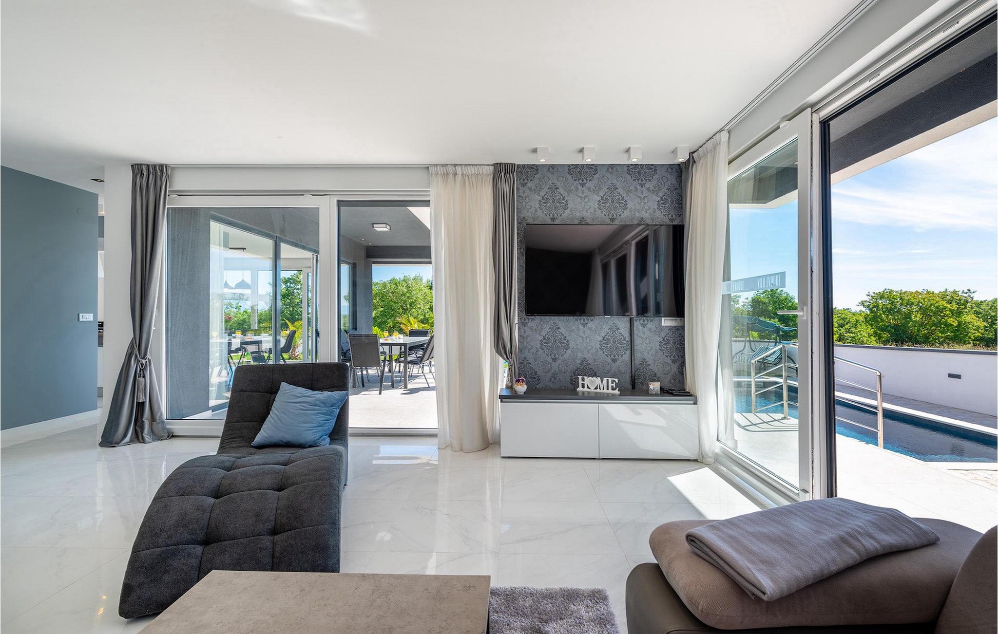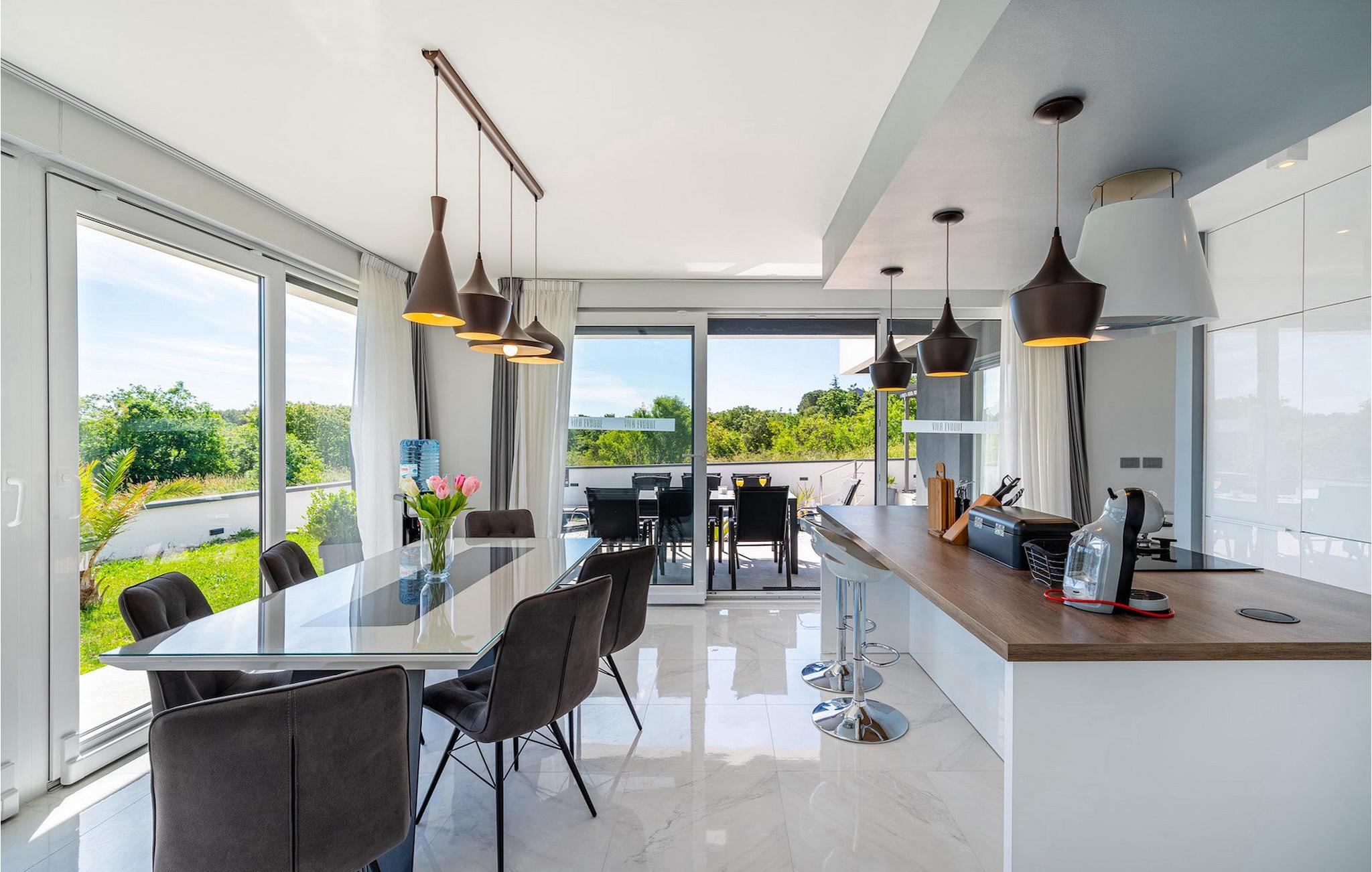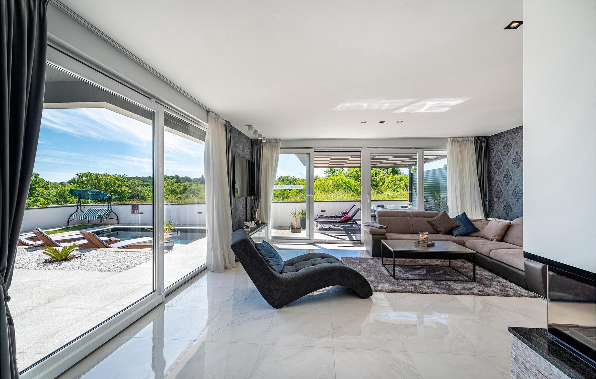 Luksusvillaen Evoque er beliggende nær byen Zadar, i en lille landsby Crno. Denne villa vil give dig et rigtigt stykke paradis og en afslappende og behagelig ferie. Villaens bekvemme beliggenhed tilbyder alle de luksuriøse og moderne bekvemmeligheder, du kan få brug for på din ferie. Denne moderne villa kan rumme i alt 6 personer i 3 komfortable soveværelser. I stueetagen af villaen er der en rummelig åben planløsning med udstyret køkken og spiseplads, og på første sal er der tre komfortable og rummelige soveværelser og to badeværelser, hvoraf det ene er en suite. Alle tre soveværelser har aircondition og har udgang til en terrasse, hvor du kan få din morgenkaffe med en smuk solopgang. Fra stuen kan du gå ud på den udendørs terrasse med pool og liggestole. Slap af i poolen og nyd solen på liggestolene, og om aftenen kan I samle familien til udendørs middage sammen. Denne villa betyder ægte afslapning i luksuriøs komfort, kom og prøv det selv.Den smukke villa Evoque er beliggende nær byen Zadar i landsbyen Crno. Kun få kilometer fra Zadars smukke strande tilbyder Villa Evoque en fantastisk beliggenhed til sine gæster. Stop ved den storslåede by Zadar og besøg restauranter og caféer. Lokale butikker ligger i bydelen 500 m fra villaen. Zadar er en gammel by med en værdifuld historisk og kulturel arv og storslåede solnedgange. Den gamle bydel er fuld af monumenter fra oldtiden, middelalderen og renæssancen, såsom den berømte romerske plads og kirken St. Donata. I dag er den bedst kendt for Havorgelsymfonien og installationen Hilsen til Solen. Nyd bølgesymfonien og smag på det dalmatiske køkken.