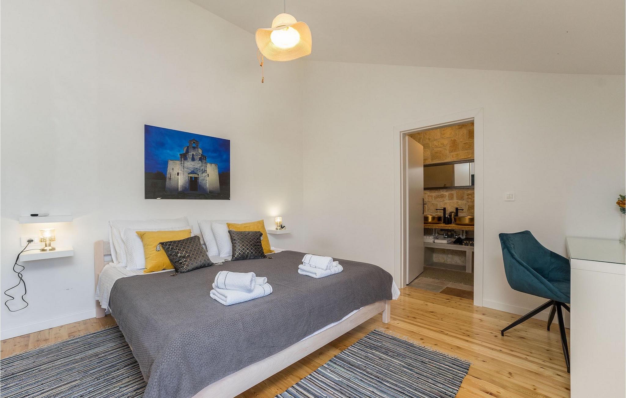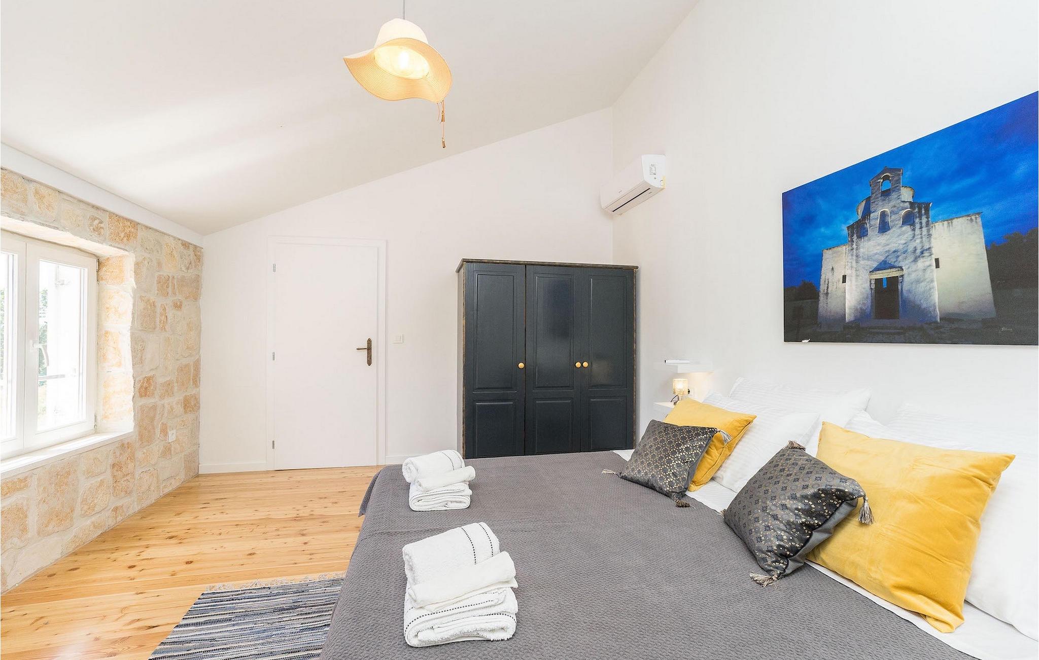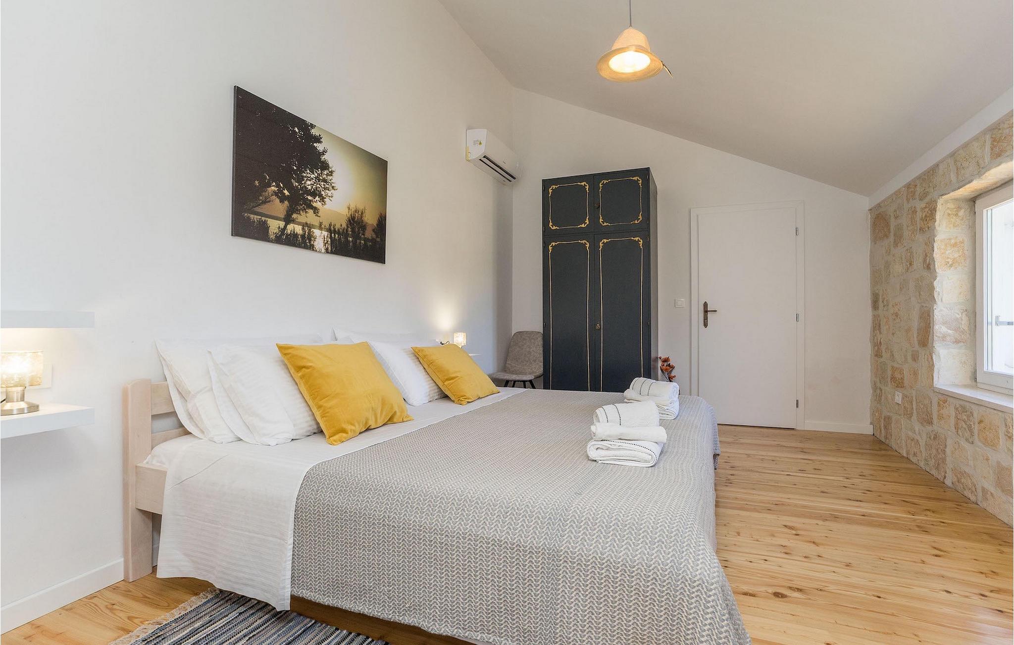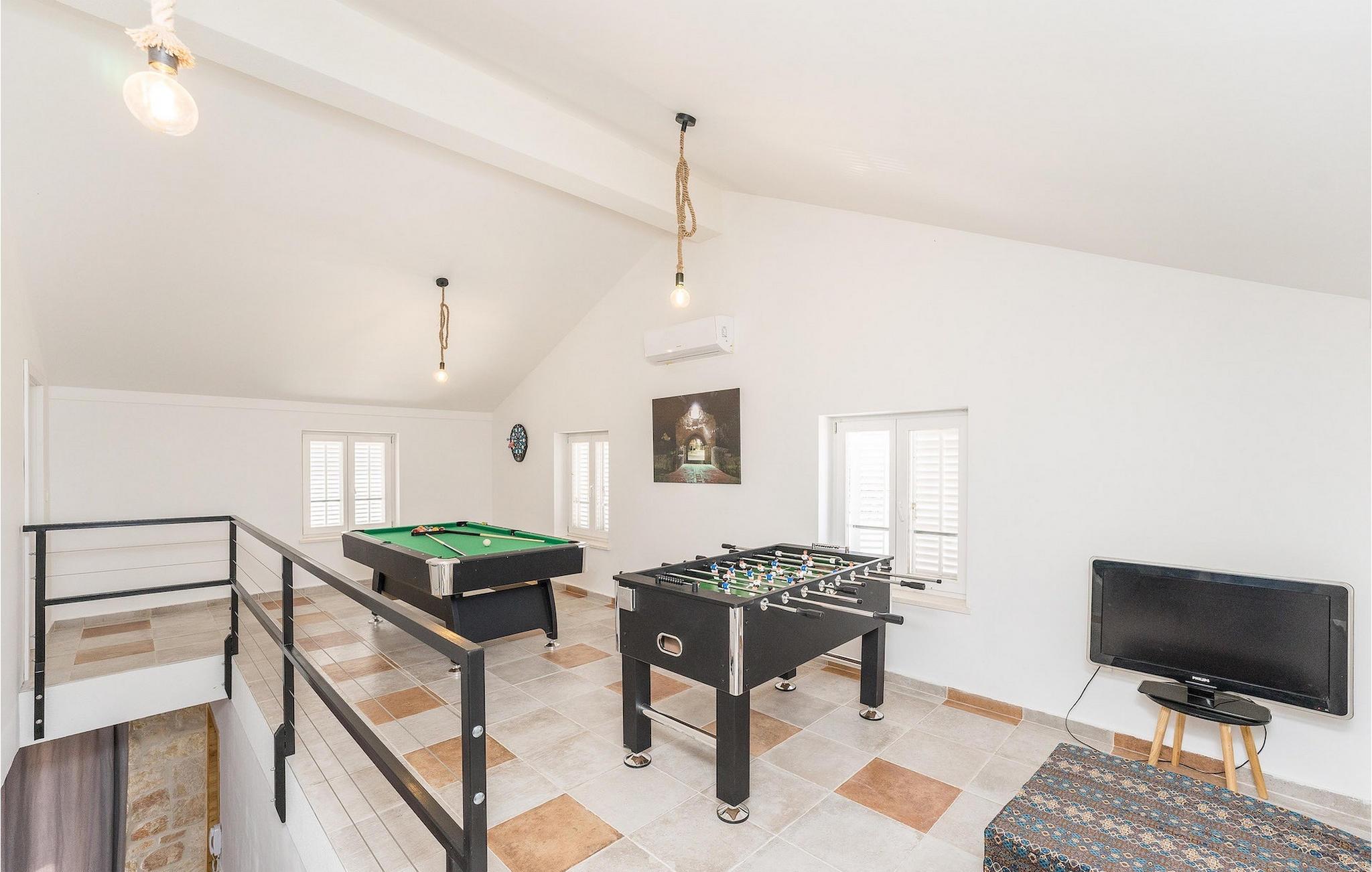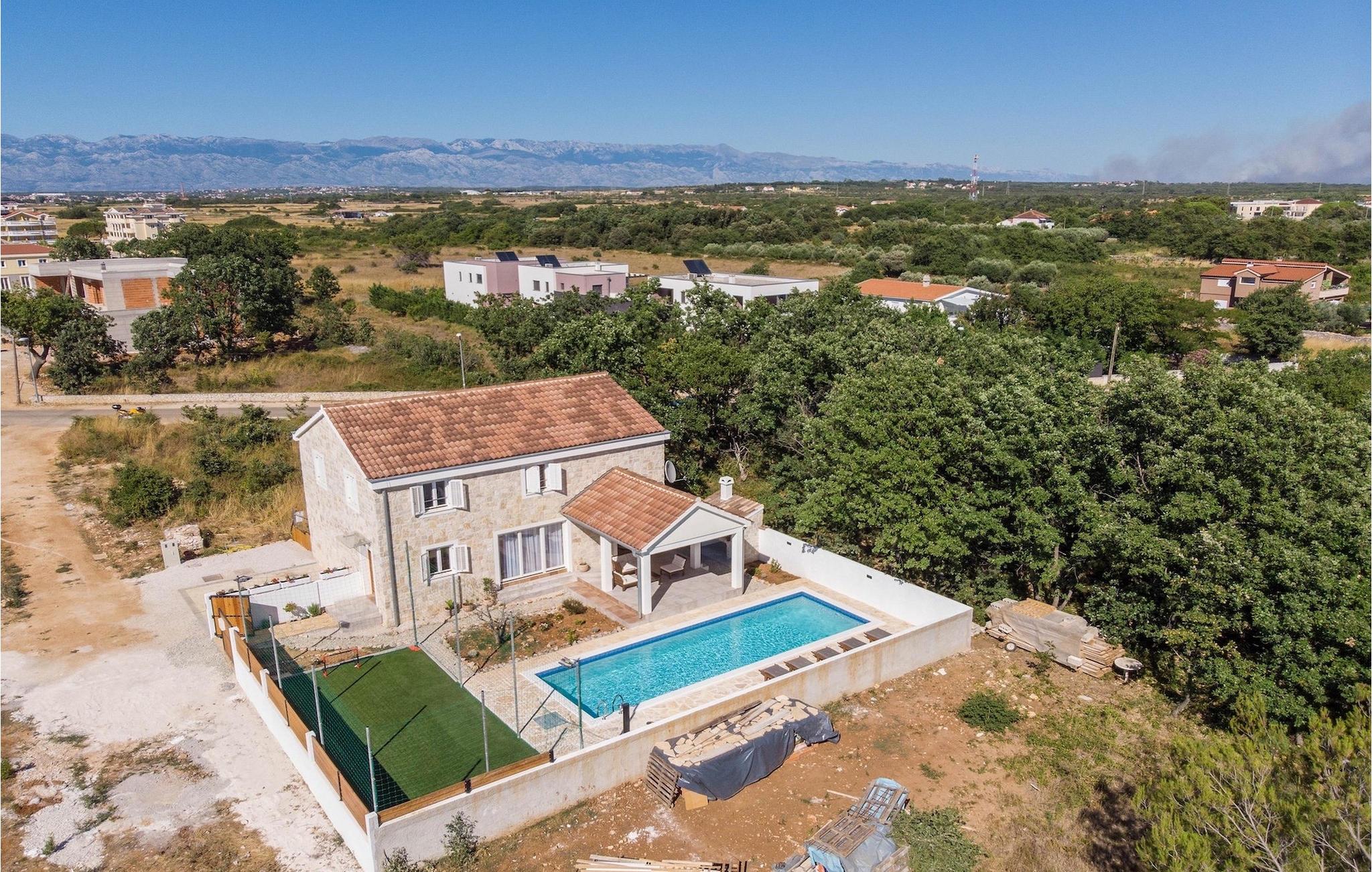 Hvad er det første, du tænker på, når du hører ferie? Er det stranden, eller er det afslapning, eller måske en aktiv ferie? Nå, Villa Aenona har alt, hvad du drømte om. Den charmerende Villa Aenona ligger i Dalmatien, nær byen Zadar. Villaen i to etager er perfekt til familier eller vennegrupper på udkig efter en afslappende, men også aktiv ferie. Stueetagen af villaen består af et fuldt udstyret køkken, en hyggelig stue med spiseplads, et vaskerum og et komfortabelt soveværelse med en dobbeltseng og et badeværelse. Ovenpå er der et legerum med et poolbord, bordfodbold, dart og en PlayStation 4, yderligere to soveværelser og to badeværelser. To badeværelser er udstyret med bruseniche, mens det ene badeværelse har badekar. Udenfor finder du et overdækket siddeområde, hvor du kan slappe af, mens din bedre halvdel tilbereder et lækkert måltid på kulgrillen til dig og din familie. Kun et skridt væk ligger den store private pool, som indbyder til en forfriskende dukkert på varme sommerdage. Villaens højdepunkt er den oplyste fodboldbane, hvor du kan hygge dig med dine børn, der spiller fodbold, badminton eller volleyball. Da villaen kun ligger få minutters gang fra sandstranden, er den også ideel for familier med små børn. Hvis du kan lide alt, hvad du har læst om denne villa indtil videre, er det tid til at booke den og opleve din næste ferie på Villa Aenona. Villa Aenona ligger i Zaton, ikke langt fra byen Nin, i gåafstand fra smukke sandstrande , og ideel til familier med små børn. Nin er kendt for sine smukke strande, men også for sin lange tradition for saltproduktion. Besøg Nin Salt Works and Museum, hvor du kan lære, hvordan salt udvindes naturligt, hvordan det opbevares og selvfølgelig smage de mange delikatesser lavet med salt såsom olivenolie, kiks og chokolade. Bortset fra sin naturlige skønhed er Nin en af de ældste byer på den østlige Adriaterhavskyst med en 3.000-årig historie. Den historiske gamle bydel i Nin ligger på en lille ø forbundet med fastlandet med to stenbroer. Gå en tur gennem byens smalle gader og opdag de skjulte hemmeligheder. Villa Aenona er også et ideelt udgangspunkt for adskillige udflugter. Gå ikke glip af at besøge byen Zadar, som vil glæde dig med sin kystpromenade, unikke havorgel og en af de smukkeste solnedgange i verden. Sørg for at du ikke går glip af et besøg på øen Pag, kendt for sin usædvanlige lettelse, lækre retter og talrige strande. Interessant nok er der 3 nationalparker i dette lille område, nemlig Paklenica National Park, Kornati National Park og Krka National Park. Alle disse parker har noget til fælles, nemlig uberørt natur, der ikke vil lade nogen uimponeret.