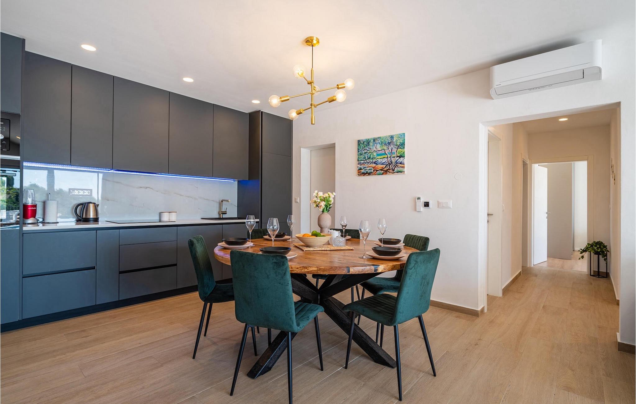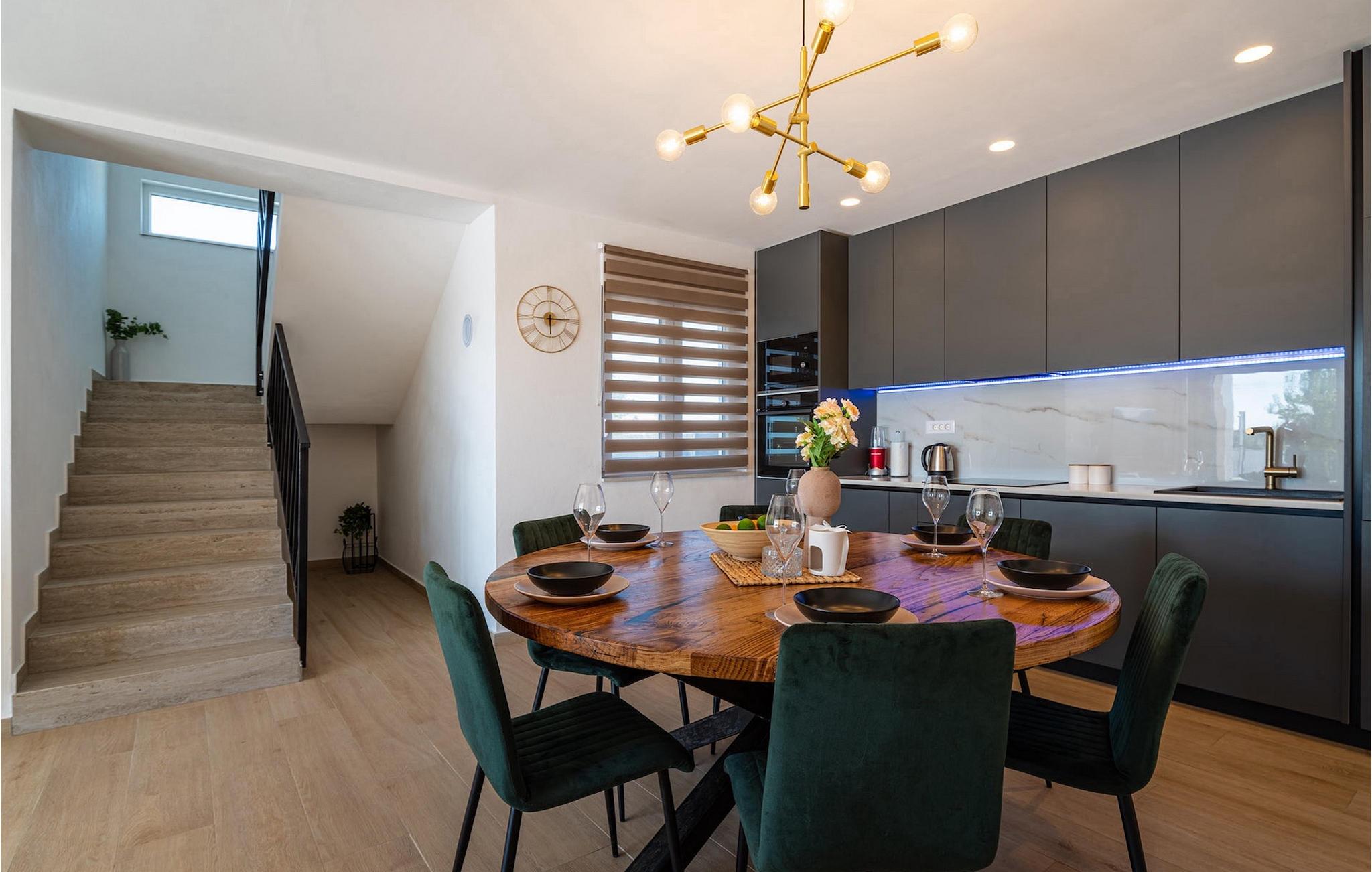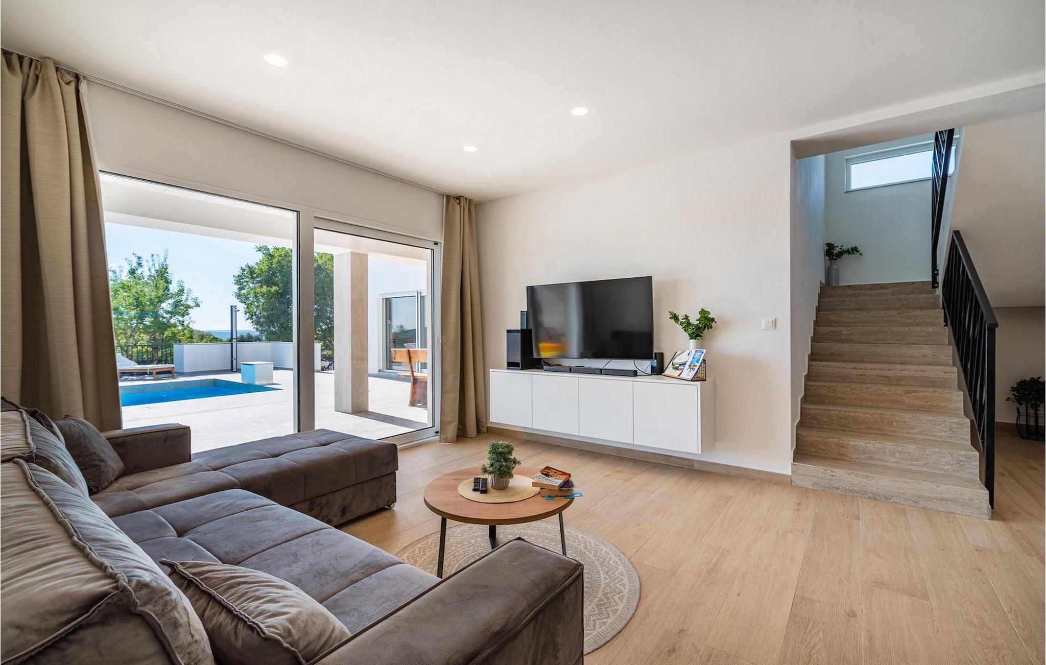 Ønsker du en afslappende ferie, ro og komfort langt væk fra hverdagen? Så er Villa Tea Polaca for op til 10 gæster nær Zadar det rigtige sted for dig! Dette elegante og moderne feriehus med 5 værelser tilbyder dig alt hvad du behøver til en uforglemmelig ferie i Dalmatien med familie og venner. Hjertet i Villa Tea Polaca er den 40m2 forfriskende swimmingpool, hvor du helt sikkert vil tilbringe det meste af din tid. Føl dig godt tilpas med en kølig drink på en af liggestolene, mens familiemåltidet tilberedes på kulgrillen i det åbne sommerkøkken. Du kan også holde øje med børnene, når de render rundt i haven, spiller bordtennis eller holder en turnering ved fodboldbordet. Tilbring varme sommeraftener med hele familien ved det store spisebord på den overdækkede terrasse. I naboejendommen sørger Orbitrek for din fitness, og saunaen giver afslapning. Et ekstra badeværelse med bruser er tilgængeligt her. Ind i det fuldt klimatiserede interiør af Villa Tea Polaca fra udendørsområdet kommer du ind i den lyse stue med TV. I tilknytning hertil ligger det fuldt udstyrede køkken og spiseplads, samt et gæstetoilet. På samme niveau er der også 2 komfortable dobbeltværelser, hver med sit eget ensuite badeværelse. Trappen fører dig til yderligere 3 smukke soveværelser, hver med en dobbeltseng. Disse soveværelser har også hver deres badeværelse med bruser. Hvert soveværelse har tv og aircondition. Her kommer du også ud til altanen, som byder på lidt privatliv, og hvorfra du kan nyde en vidunderlig udsigt over det omkringliggende område eller den klare stjernehimmel om aftenen. Forkæl dig selv og dine kære med kun det bedste, book nu og tilbring din drømmeferie i Dalmatien i den fantastiske Villa Tea Polaca! Den fantastiske Villa Tea Polaca ligger i den lille rolige landsby Polaca, kun 11 km fra Biograd na Moru og ikke så langt fra den berømte historiske by Zadar. Ud over havet, som kun ligger 11 km væk, byder området omkring Villa Tea Polaca på en bred vifte af naturlig skønhed og kulturelle attraktioner. Byerne Zadar og Sibenik, fulde af kultur og historie, er bestemt et besøg værd. Det berømte turiststed Biograd na Moru byder på tonsvis af aktiviteter, restauranter og strande, samt Fun Park Mirnovec, hvis du er i humør til lidt adrenalin. Der er flere nationalparker at vælge imellem i denne region: Kornati, Krka, Paklenica, North Velebit Nature Park og Vransko Lake. Naturelskere vil finde det svært at beslutte sig. Vælg lidt af hvert og nyd din ferie fuldt ud. Temperaturen i den opvarmede swimmingpool er afhængig af eksterne faktorer, herunder vejrforhold, og som sådan kan temperaturen på vandet ikke garanteres.