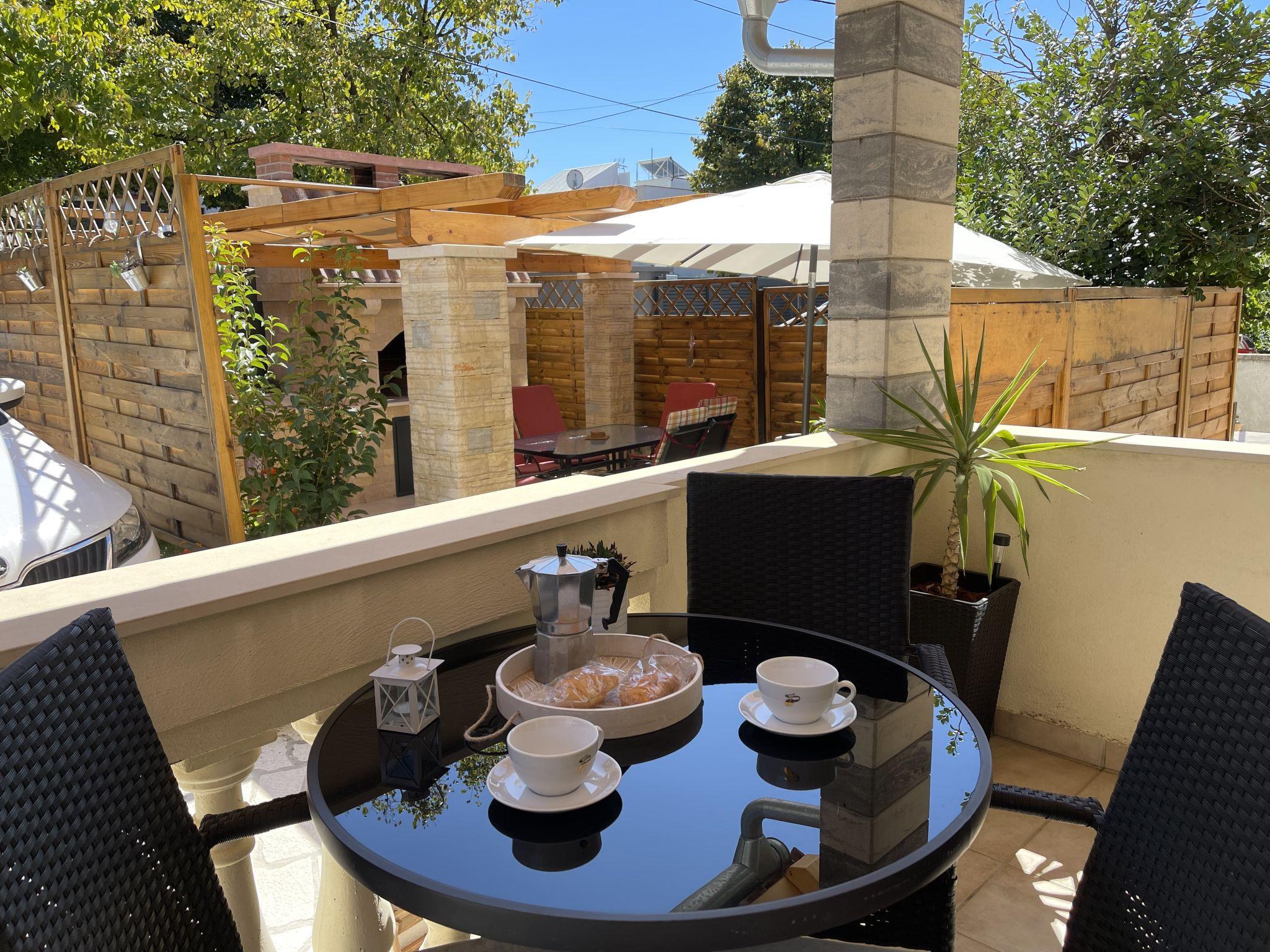 Apartment house. In the district of Sfinga, 3 km from the centre, in a quiet, sunny position, 200 m from the sea, 400 m from the beach. In the house: internet access. Parking at the house on the premises. Shop 500 m, restaurant 300 m, bus stop 3.8 km, pebble beach 400 m. Tennis 50 m, walking paths from the house, cycle lane 600 m.