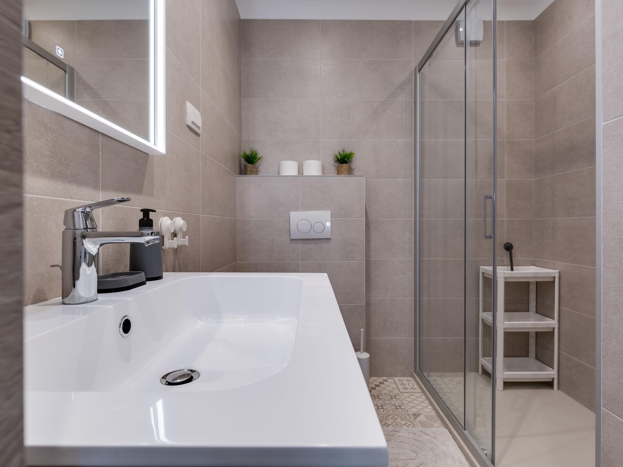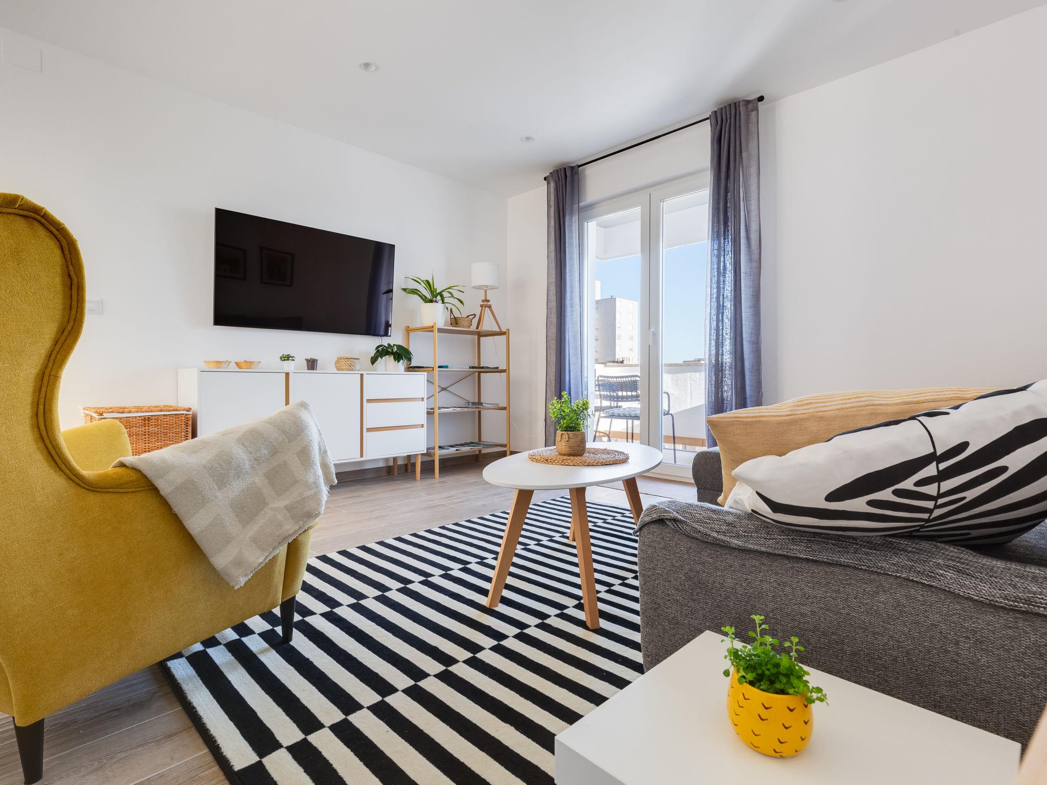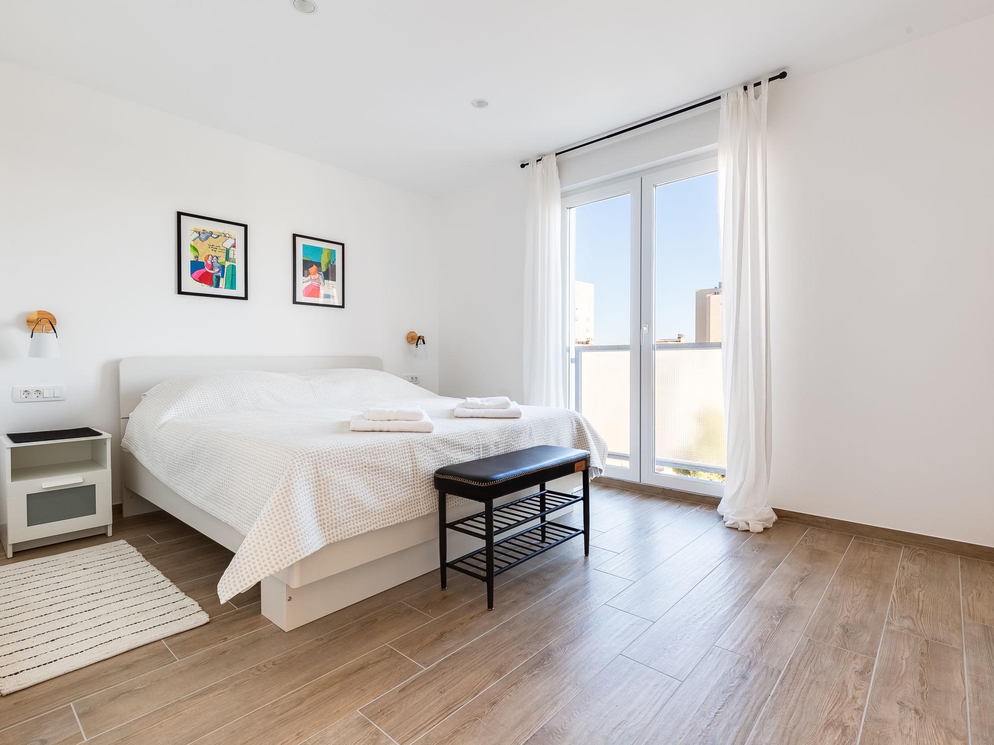 "Sea & You", 3-room apartment 70 m2 on 6th floor. Living/dining room with air conditioning. Exit to the balcony. 1 room with 1 french bed (160 cm, length 200 cm), air conditioning. 1 room with 1 french bed (180 cm, length 200 cm), air conditioning. Open kitchen (oven, dishwasher, 4 induction hot plates, kettle, microwave, electric coffee machine). Shower/WC. Balcony 4 m2. Balcony furniture. Facilities: washing machine, dryer. Internet (WiFi, free). Please note: non-smokers only.