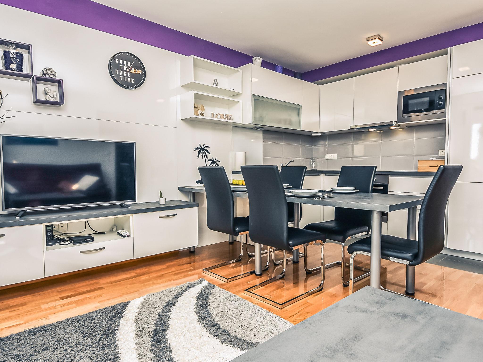 Small apartment block, built in 2021. In the district of Belafuža, 3.5 km from the centre, in a sunny, elevated position, 3 km from the sea, 3 km from the beach. In the house: internet access. Parking at the house. Shop, restaurant 500 m, bus stop 3.7 km, pebble beach 3 km. Tennis 3.5 km. Please note: airfield 20 km from the property.
