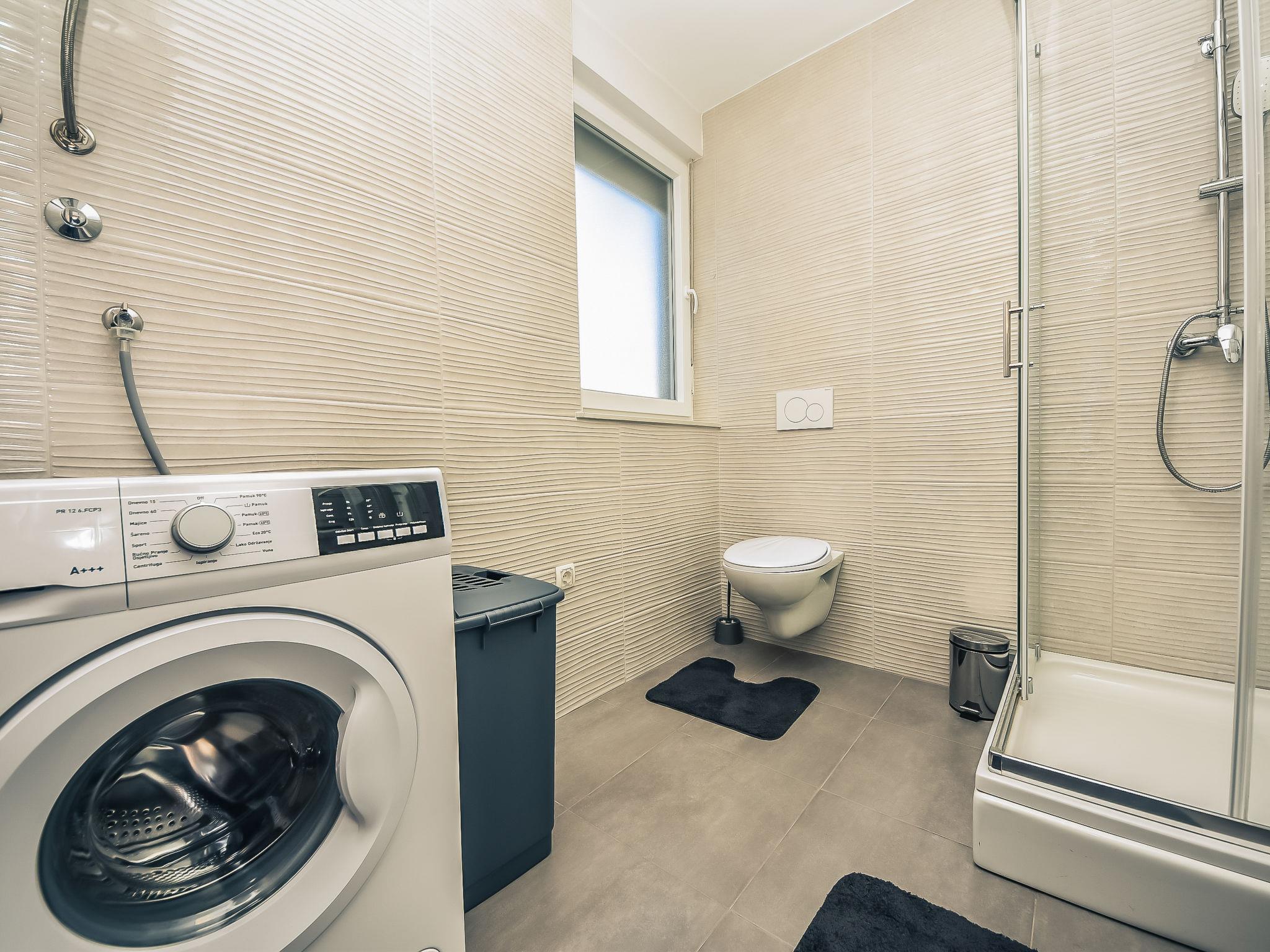 "Mare", 3-room apartment 55 m2, on the ground floor, south-west facing position. Living/dining room 19 m2 with TV, digital TV and international TV channels (flat screen), air conditioning. Exit to the terrace. 1 room with 1 french bed (160 cm, length 200 cm). 1 room with 1 x 2 bunk beds (90 cm, length 200 cm). Open kitchen (oven, dishwasher, 4 ceramic glass hob hotplates, microwave, freezer, electric coffee machine). Shower/WC. No heating option. Terrace 12 m2, roofed. Terrace furniture. Facilities: washing machine, hair dryer. Internet (WiFi, free).
