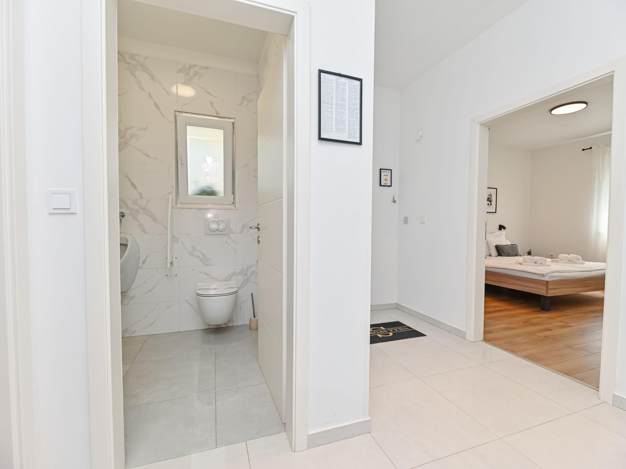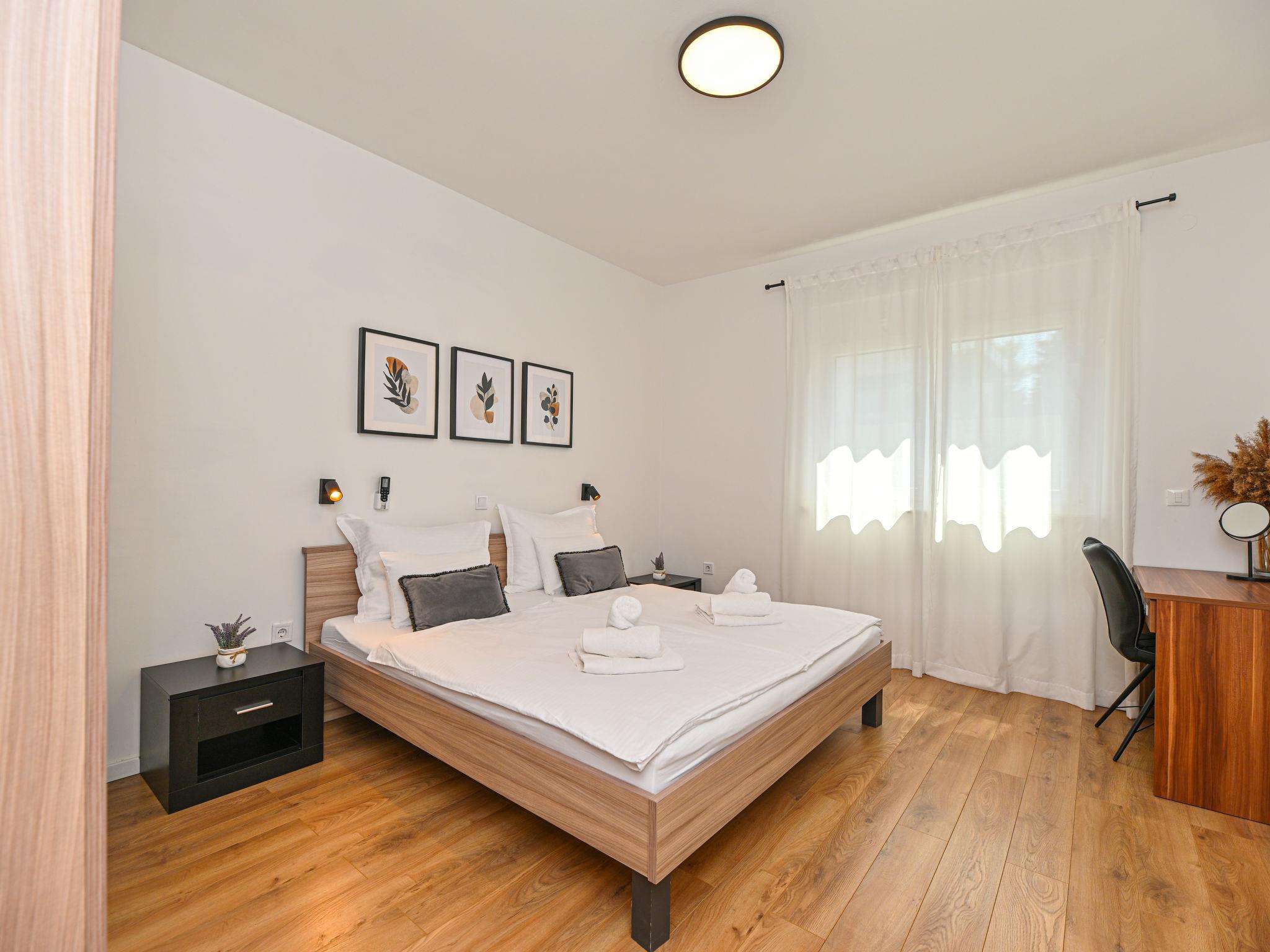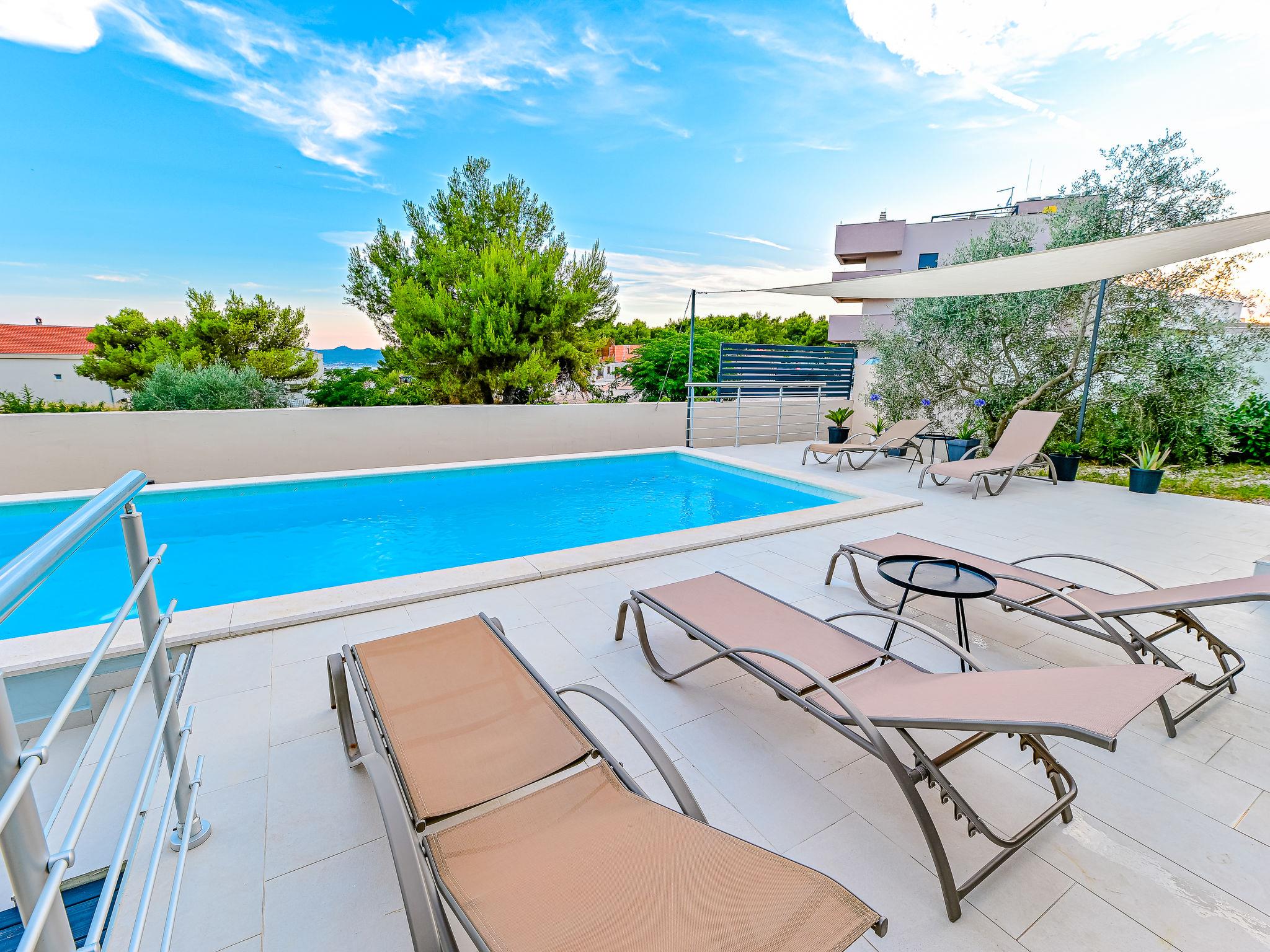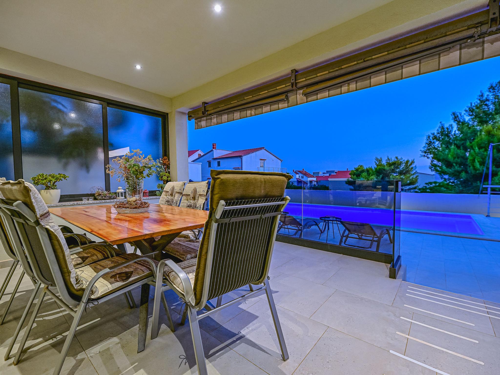 Single-family house "Sportiva". In the district of Bokanjac, 4.8 km from the centre, in a quiet, sunny, elevated position, 2.2 km from the sea, 2.2 km from the beach. Private: property 400 m2 (fenced), swimming pool angular (8 x 4 m, depth 150 cm, seasonal availability: 01.May. - 01.Oct.). Outdoor shower, garden furniture, barbecue. In the house: internet access, fitness room, trampoline, washing machine. Parking (for 2 cars) at the house on the premises. Shop 600 m, restaurant 1 km, bus stop 300 m, pebble beach 2.2 km. Tennis 4.5 km.