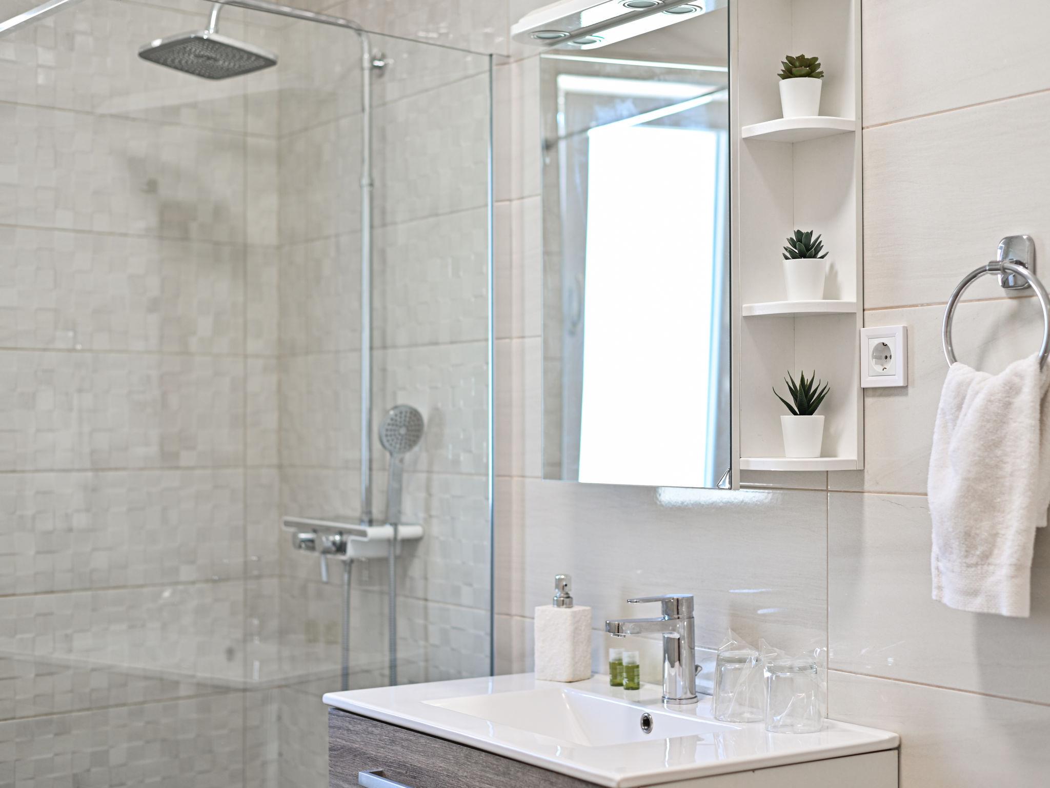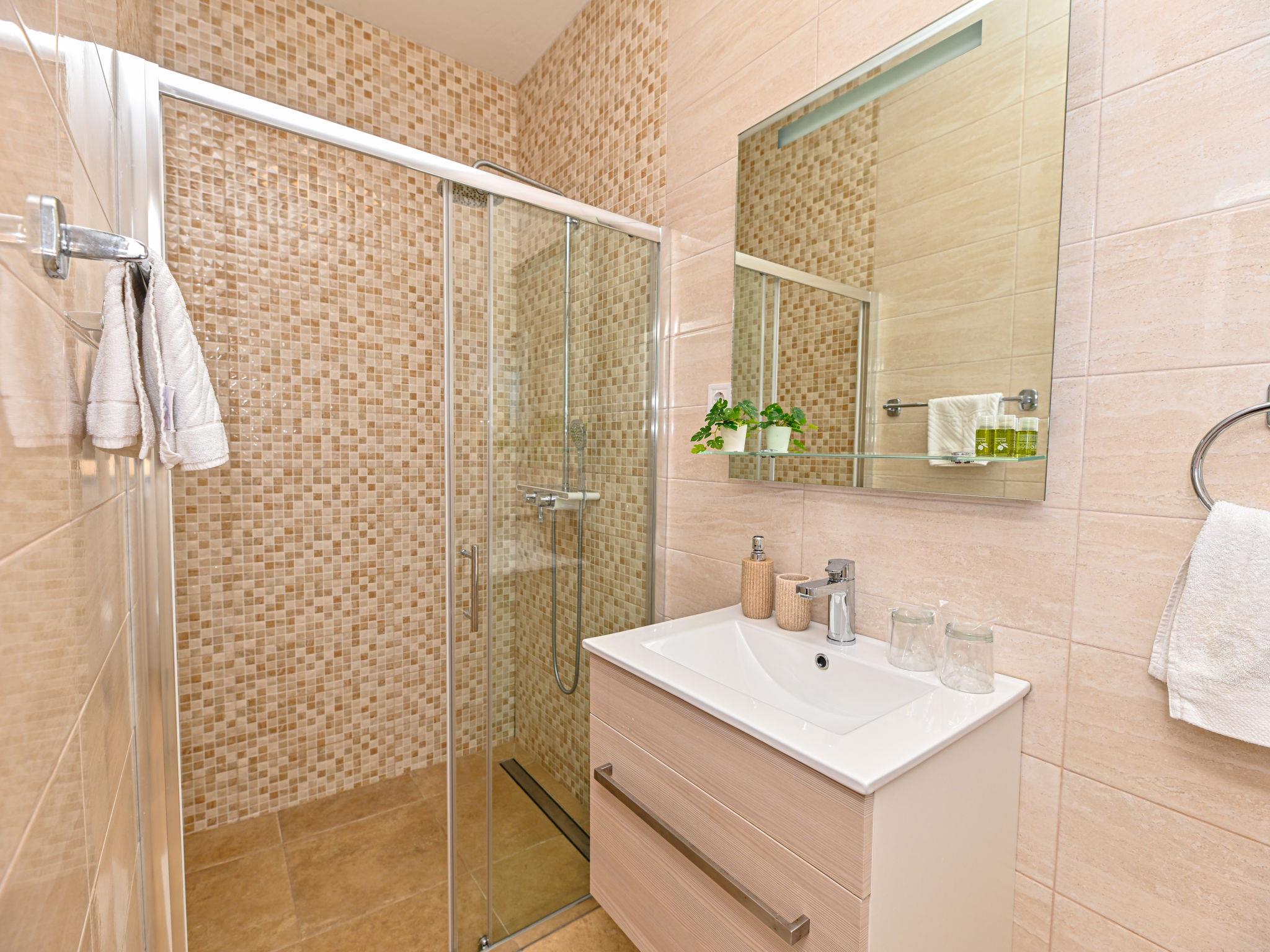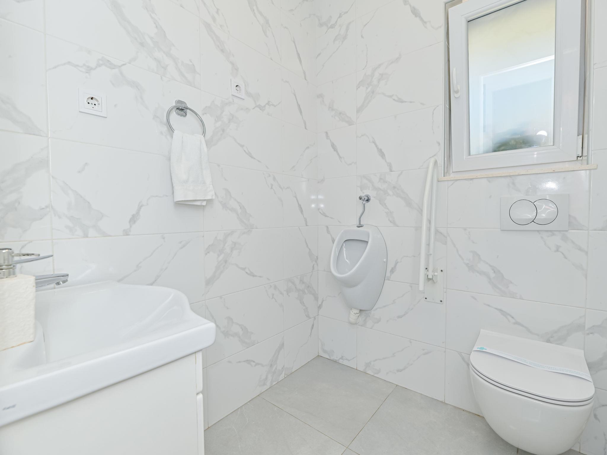 5-room house 120 m2, south facing position. Living/dining room 30 m2 with satellite TV (flat screen), air conditioning. Exit to the terrace. 2 rooms, each room with 1 french bed (180 cm, length 200 cm), shower/WC and air conditioning. 1 room with 2 beds (90 cm, length 200 cm), shower/WC and air conditioning. Open kitchen (oven, dishwasher, 4 ceramic glass hob hotplates, microwave, freezer, electric coffee machine). Sep. WC. Terrace 28 m2, roofed. Distant view of the sea. Facilities: hair dryer. Internet (WiFi, free).