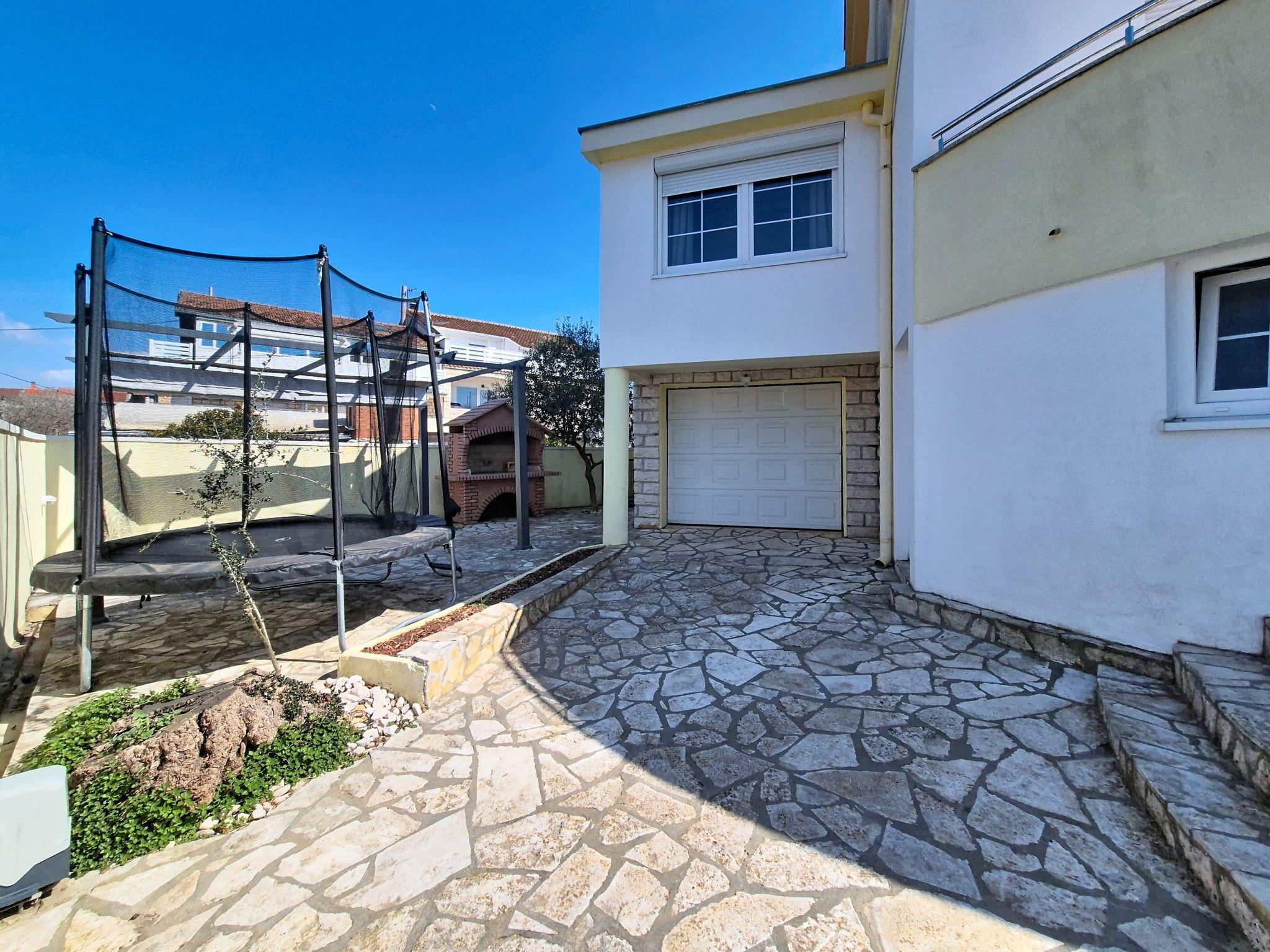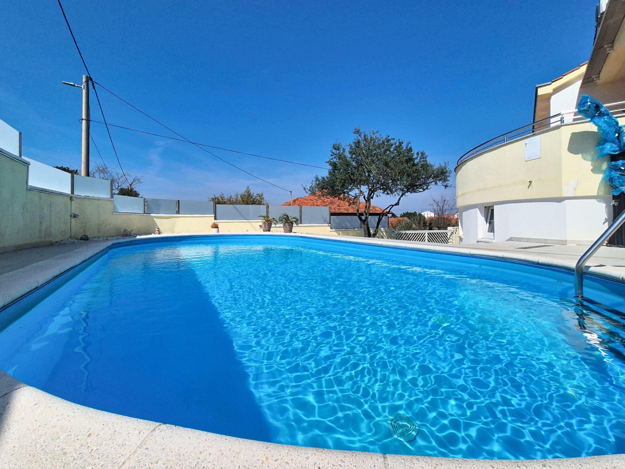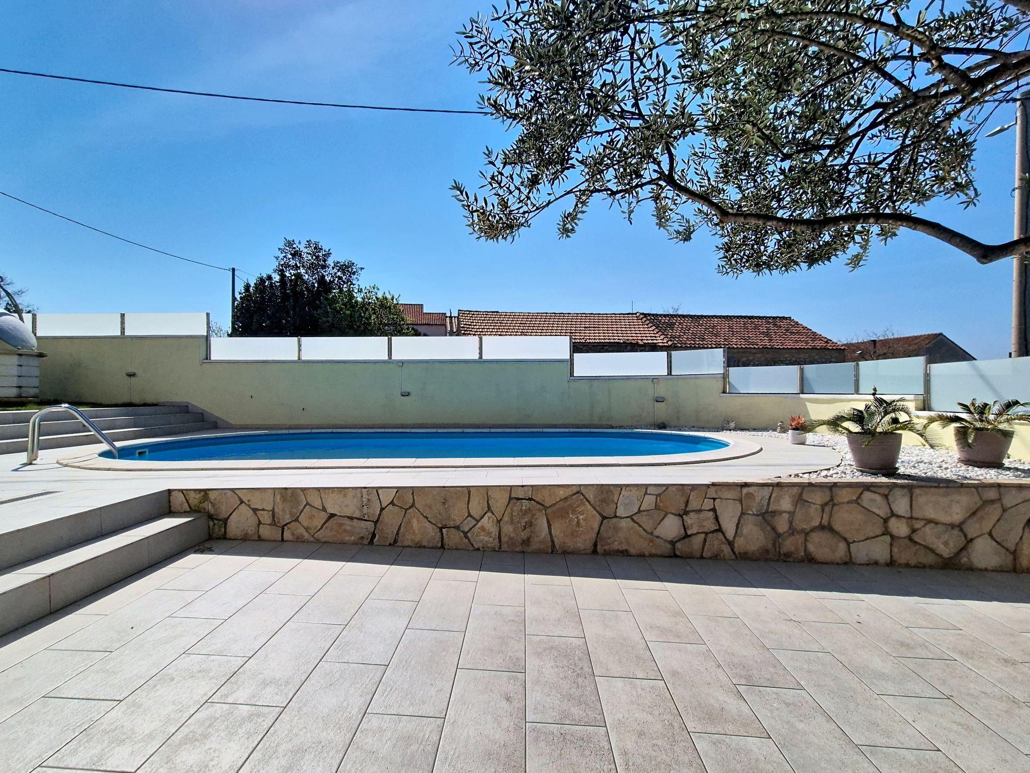 Single-family house "Ivanka", 2 storeys. In the district of Bokanjac, 5 km from the centre, in a sunny, elevated position, 4 km from the sea. Private: property 600 m2 (fenced), swimming pool (33 m2, depth 150 cm, seasonal availability: 27.Apr. - 28.Sep.). Garden furniture, barbecue. In the house: internet access, washing machine, tumble dryer. Parking (for 2 cars) at the house on the premises. Shop 300 m, restaurant 3.5 km, pebble beach 4 km. Tennis 4.5 km. Groups of teenagers on request only.