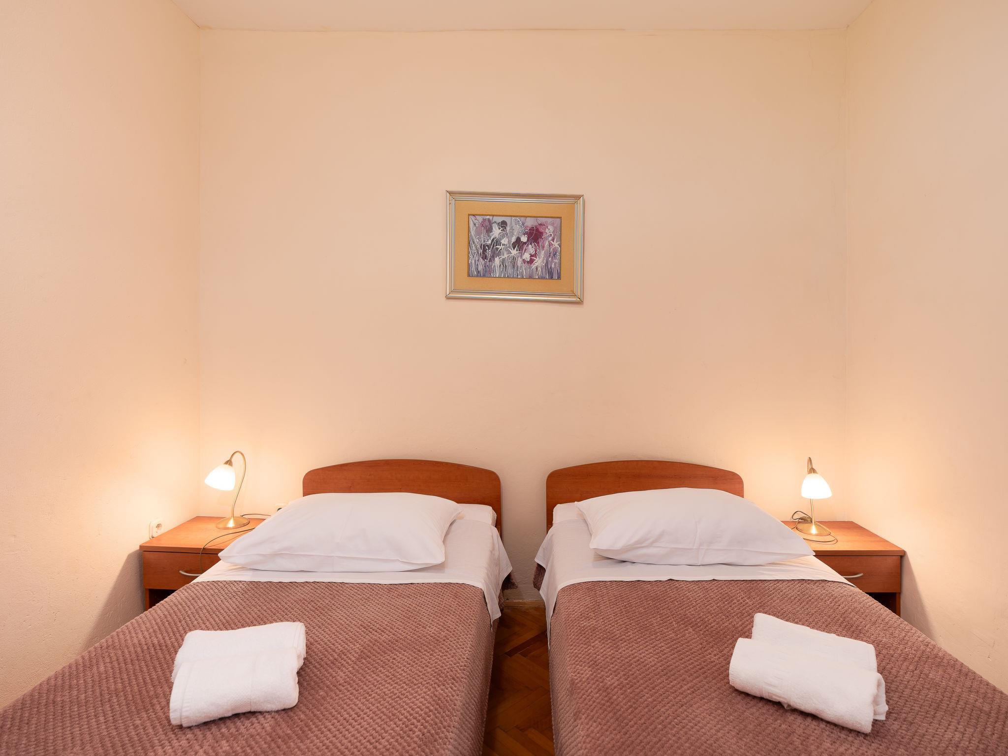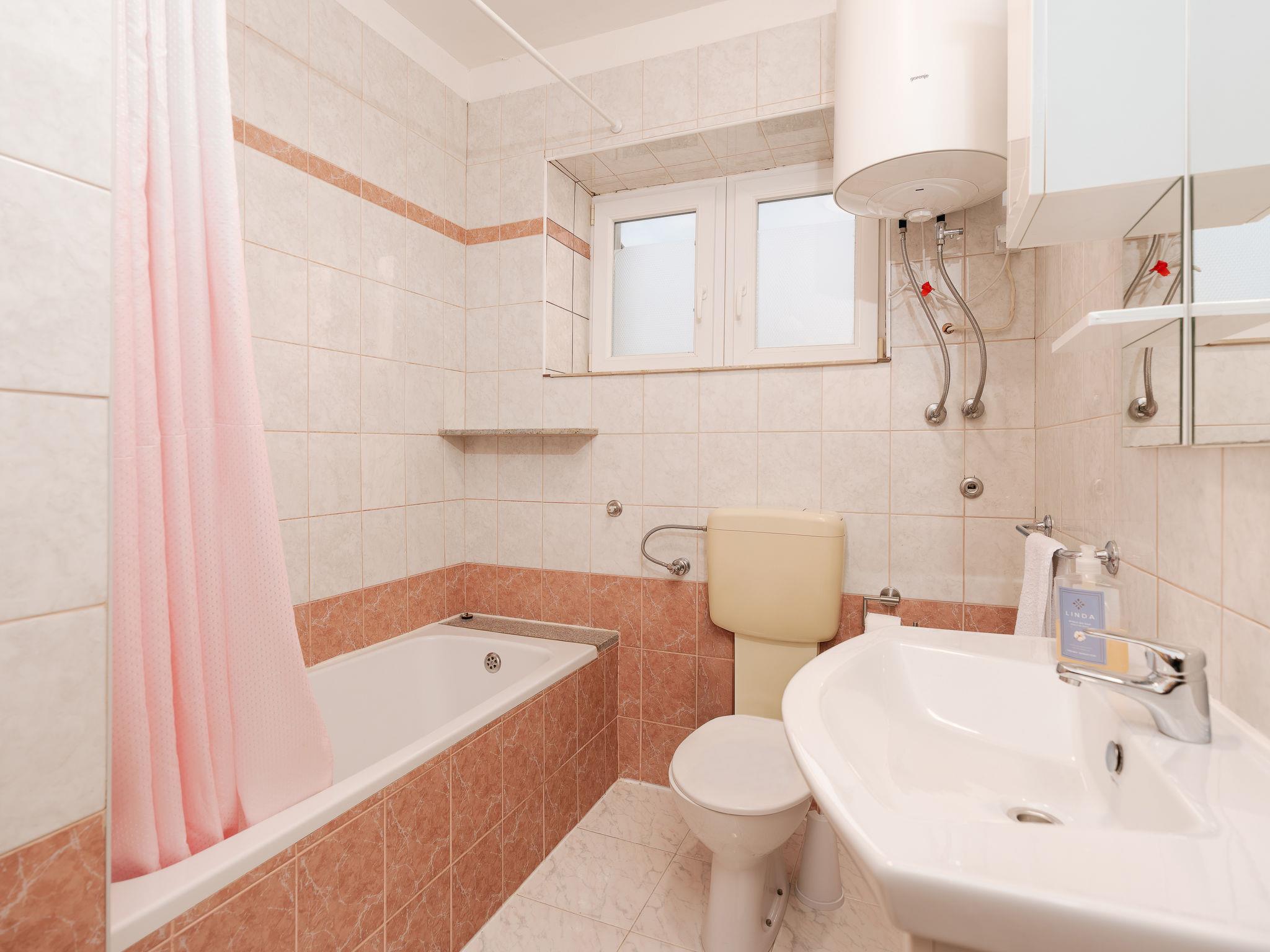 Terraced house "Marijana", 2 storeys. 200 m from the centre of Sukošan, 10 km from the centre of Zadar, 18 km from the centre of Biograd na Moru, 300 m from the sea, 300 m from the beach. Private: property 300 m2, garden with wildlife garden. Outdoor shower, terrace, garden furniture, barbecue. In the house: internet access, washing machine. Roofed, parking (for 2 cars) on the premises. Shop 200 m, bus stop 290 m, pebble beach, rocky beach 300 m. Please note: airfield 12 km from the property.