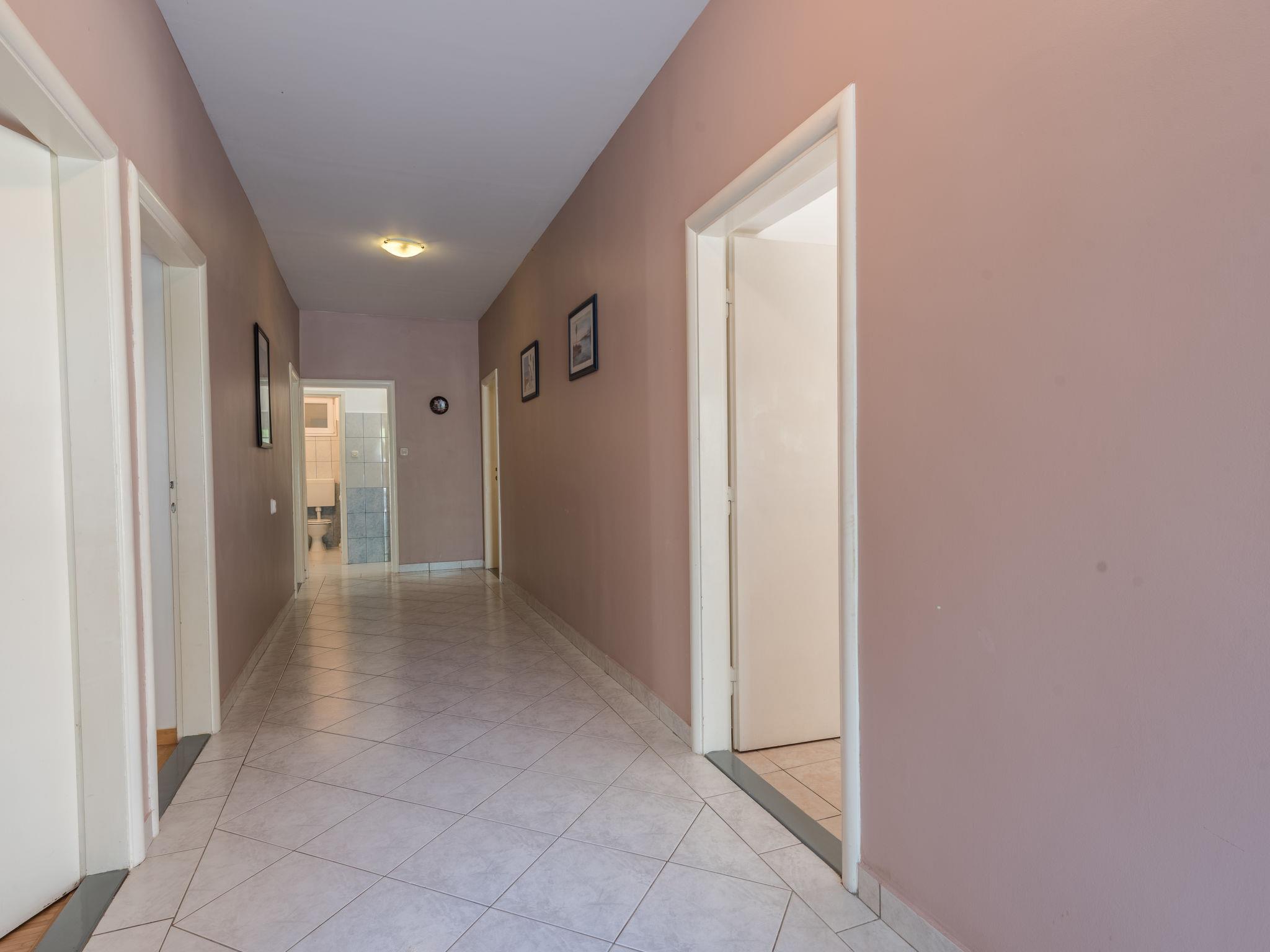 5-room apartment 120 m2, on the ground floor. Living/dining room with satellite TV (flat screen), air conditioning. Exit to the terrace. 1 room with 1 french bed (180 cm, length 200 cm). 1 room with 2 beds. 2 rooms, each room with 1 bed and 1 french bed. Open kitchen (oven, dishwasher, 4 ceramic glass hob hotplates, toaster, kettle, microwave, freezer, electric coffee machine). Bath/WC, shower/WC, sep. WC. Air-conditioning, forced-air heating. Balcony, terrace 20 m2. Terrace furniture, balcony furniture. Facilities: washing machine, iron, children's high chair, baby cot, hair dryer. Internet (WiFi, free). Maximum 2 pets/ dogs allowed.