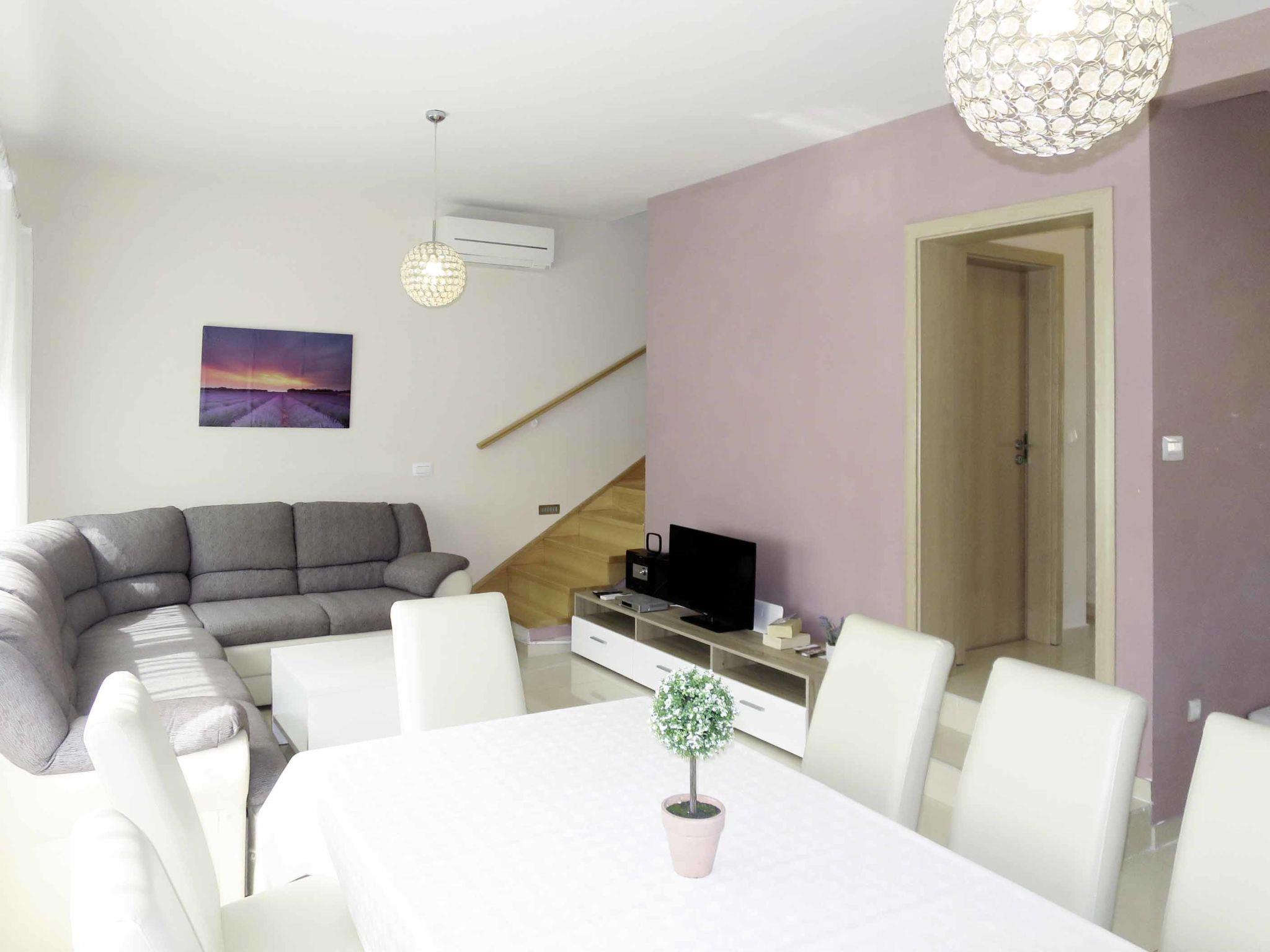 Terraced house "Silvija", 3 storeys. In the district of Višnjik 2.5 km from the centre of Zadar, 20 km from the centre of Nin, 30 km from the centre of Biograd na Moru, 2.5 km from the sea, 3.5 km from the beach. Private: terrace (30 m2), garden furniture. In the house: internet access, washing machine. Parking (for 2 cars) at the house. Shop 80 m, bus stop 2.7 km, pebble beach 3.5 km, indoor swimming pool 300 m.